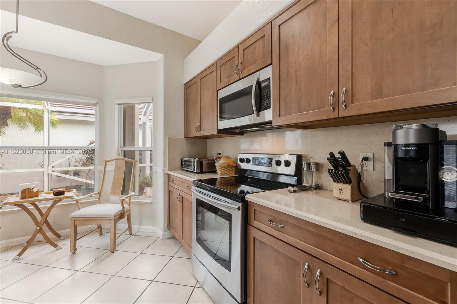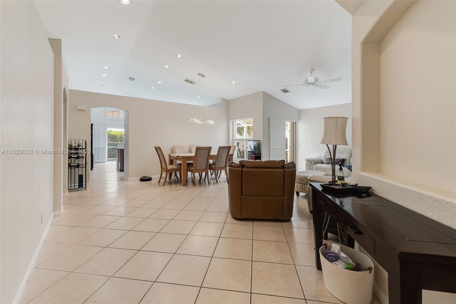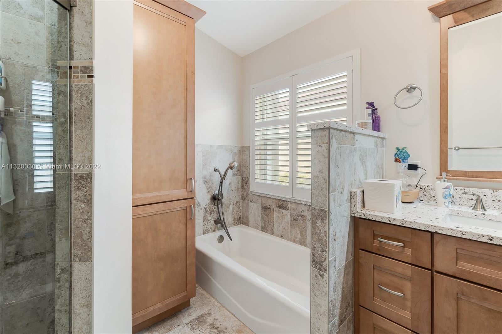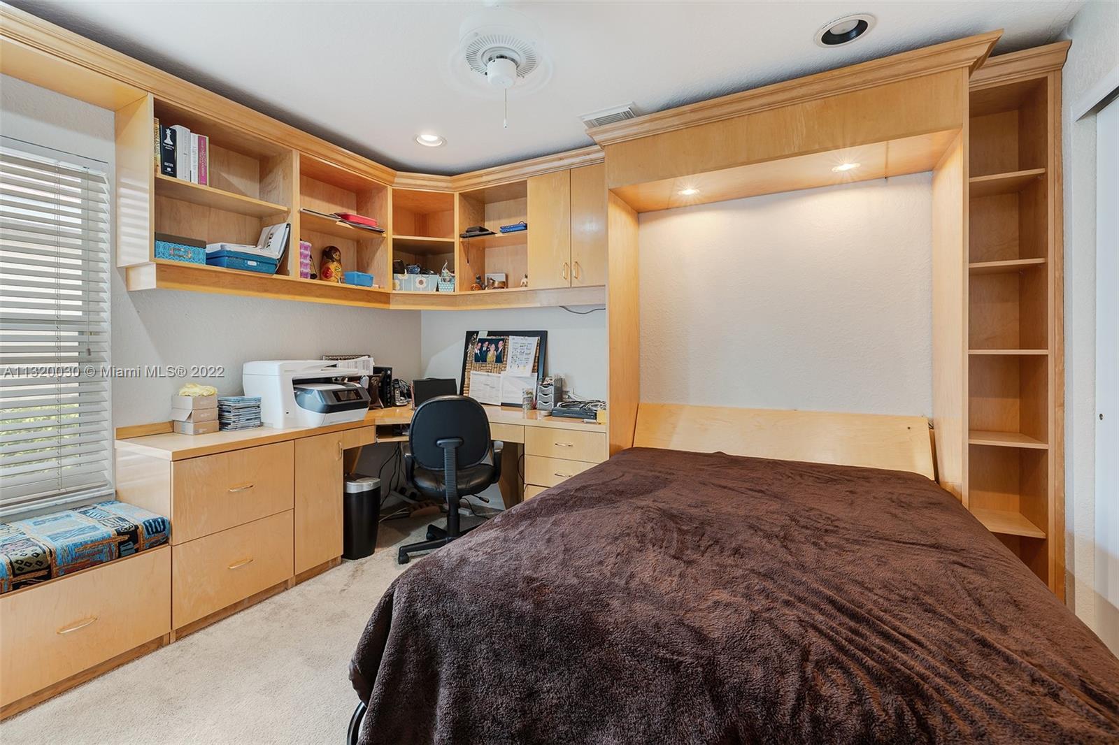 Located in Oakridge, an access controlled entry leads you to the relaxing view of the community's main lake. The well kept Redwood model has an open, spacious living/dining room and a sliding door to the screened patio area where you'll find a protective enclosure for the lap pool. Kitchen has quartz countertops & the cabinets feature soft close drawers with a lot of storage space. The oversized master bedroom gives you space for all your needs. The renovated master bathroom features separate shower & Roman rub. The 3rd bedroom has a built-in office space & a Murphy bed. The guest bathroom is also renovated. The house is wired for cameras & alarm. A/C approx. 4 yrs. old, new garage door opener and washer & dryer. Pool pump was replaced in 2021, pool heater is nonfunctioning.