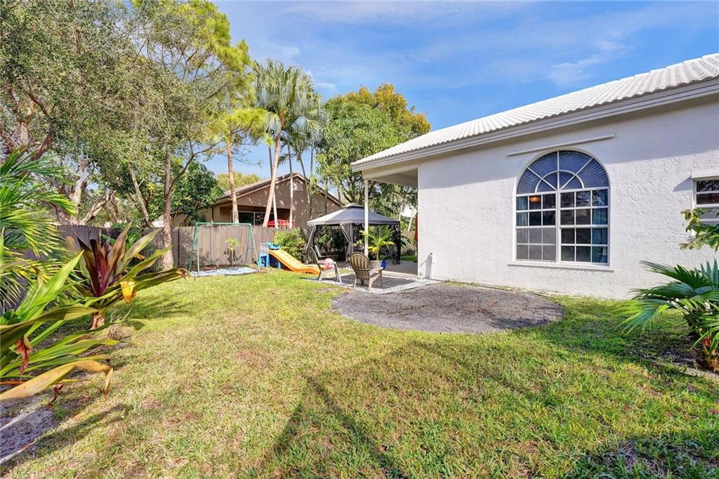 The tree lined streets of Embassy Lakes Cooper City are the perfect back drop that leads you to this corner lot home in this gated community where you can enjoy the many amenities it has to offer, A-Rated schools, & walk to houses of worship. This spacious one story 3 bed 2 bath has volume ceilings, loads of natural light, renovated bathrooms, new AC, Engineered hardwood floors, granite kitchen countertops, SS/appliances, 2012 Roof, 2 car garage with upgraded 220V outlet, hurricane shutters, & a yard that can accommodate a pool & have plenty of space for kid's playground & more. A great plus, you get with the home a Tonal machine. The community features pool, gym, basketball, pickleball, tennis courts, & playgrounds. *Measurements provided are according to the floor plan from the builder*