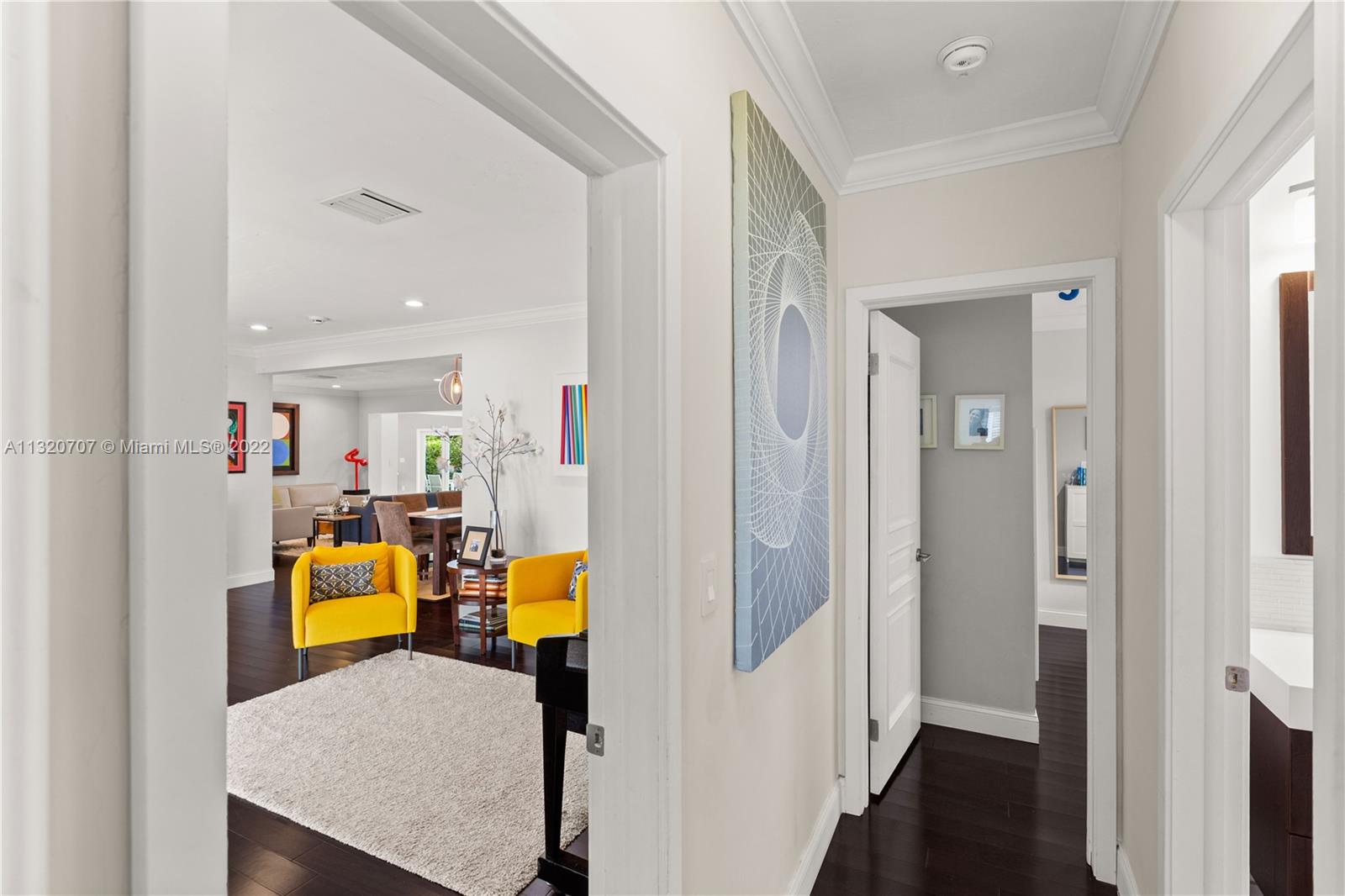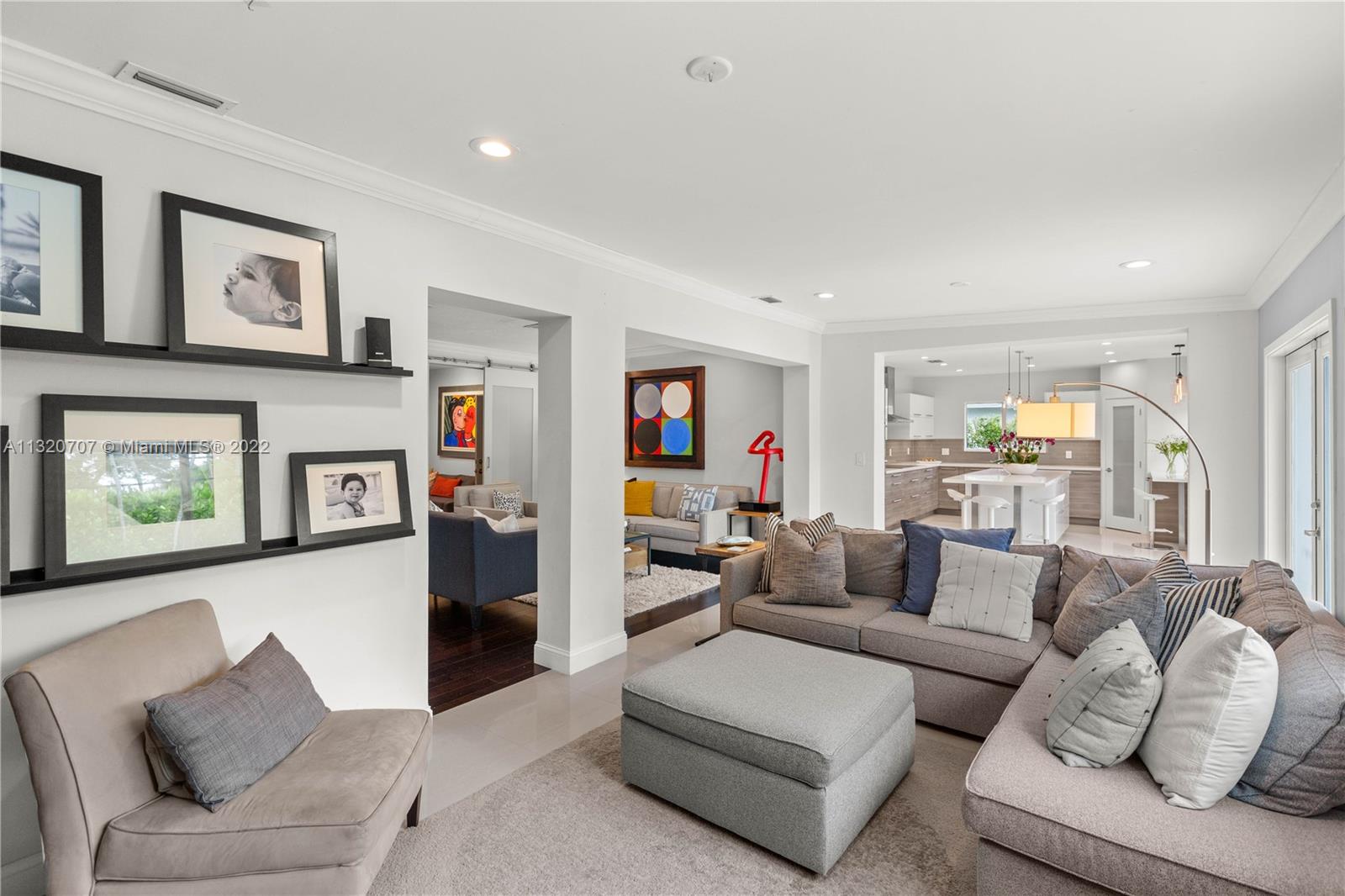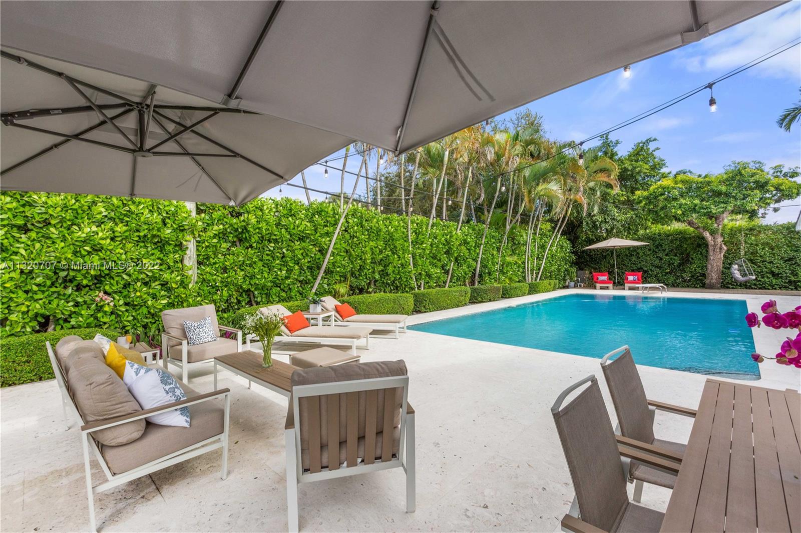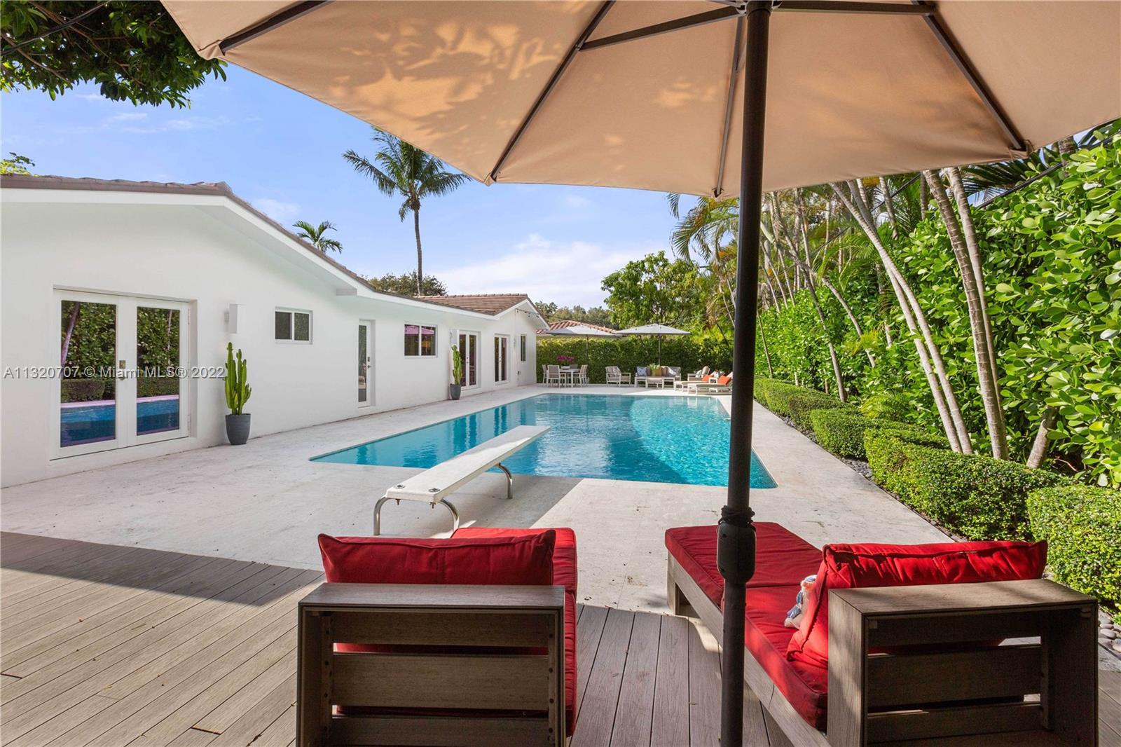 Delicious perfection. 3-bedroom, 2.5-bath home, plus den in Coral Gables, west of US-1 and within walking distance to Riviera Golf Club and the Shops at Merrill Park. This beautifully updated home has a large 20x40 heated pool and a great patio for entertaining or relaxing in your yard while framed by beautiful Clusia hedges that offer amazing privacy. This professionally landscaped home sits on just over 12k sqft of land, has many comfortable upgrades and new Impact Windows and doors. It has an open plan, cabana bathroom, two car garage and a generous Master Bath with dual sinks and a large shower. This beautiful home sits on a quiet street, has a circular driveway, is completely turn key, and is priced to sell.