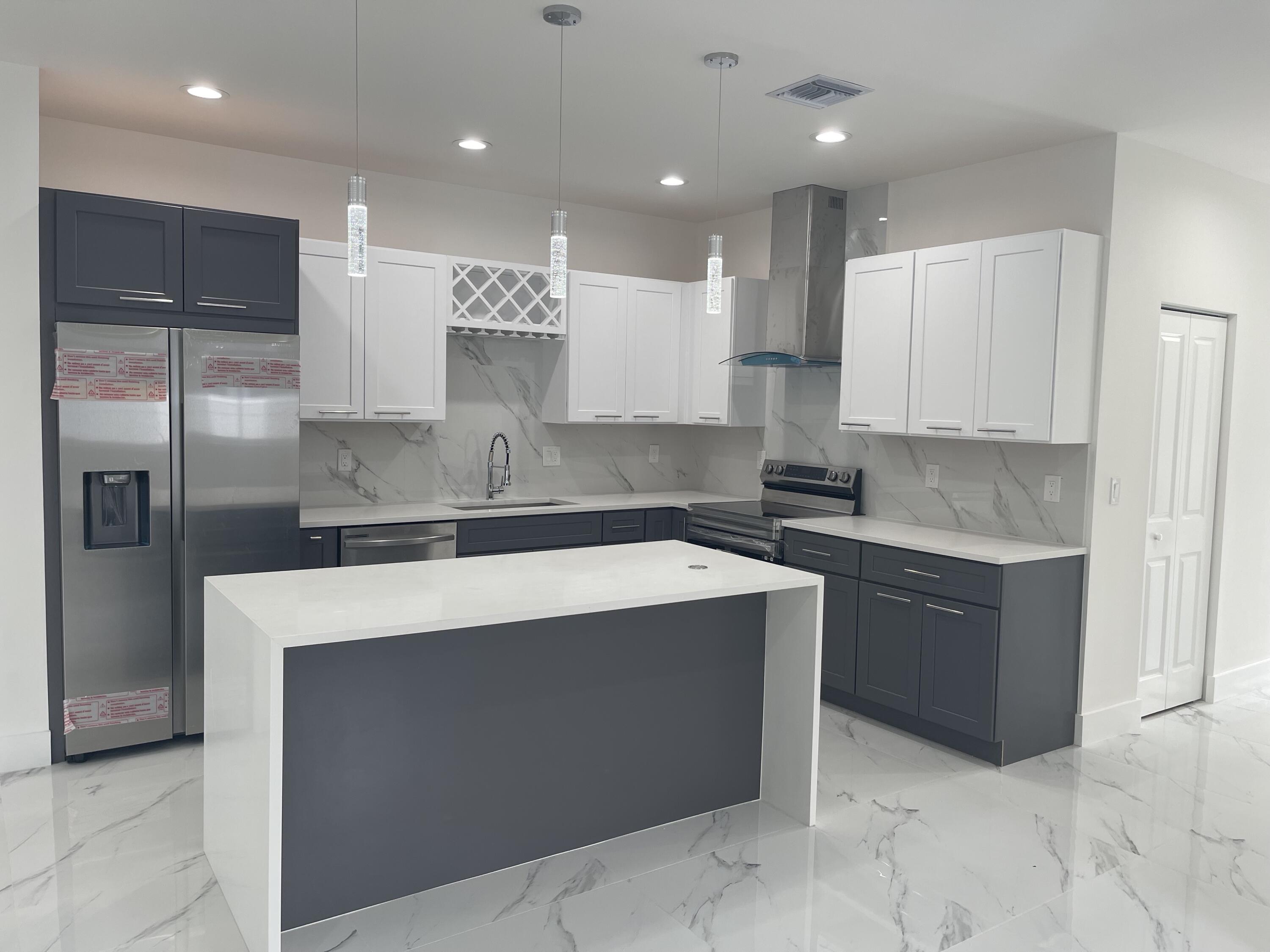 Amazing Brand New Construction Single Family Home! The house consists of 4 bedrooms, 3 bathrooms, and a 2-car garage. Open floor plan, high ceilings, a modern kitchen with a quartz waterfall counter top, stainless steel appliances, Italian porcelain tiles all over the floor, two master bedrooms, and conveniently located near Okechobee road which is full of resurants and shopping centers. There is a park on the same street with a playground for kids, a basketball court, and plenty of places to walk. There are many brand new construction houses coming on the street in 2023. The house is located 10 minutes from Rosemary Square (Downtown West Palm Beach) and 15 minutes from the beach.