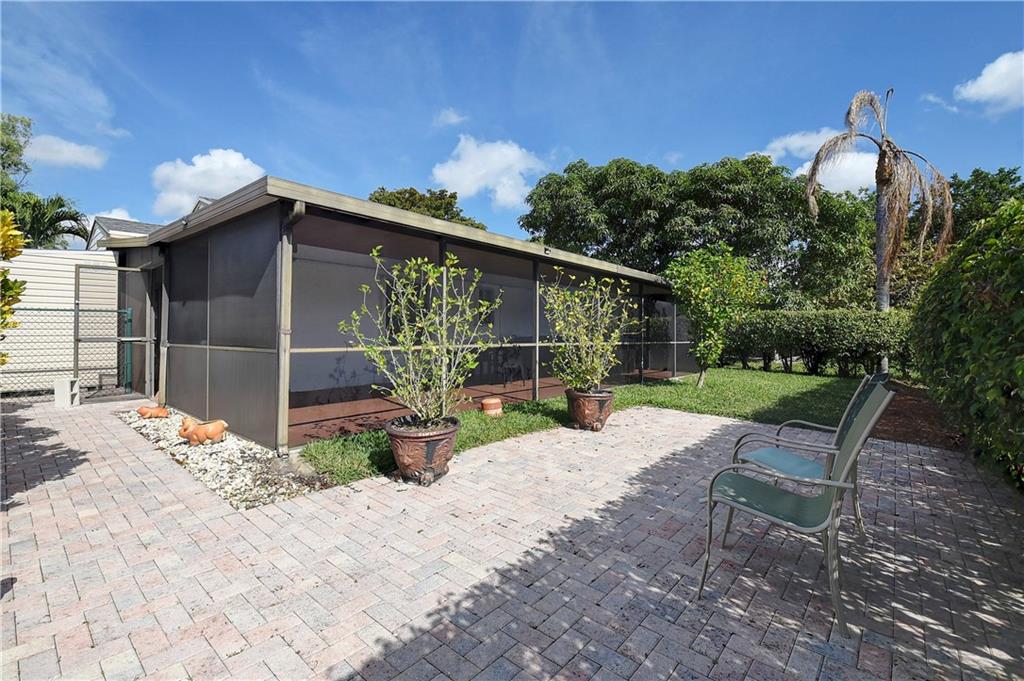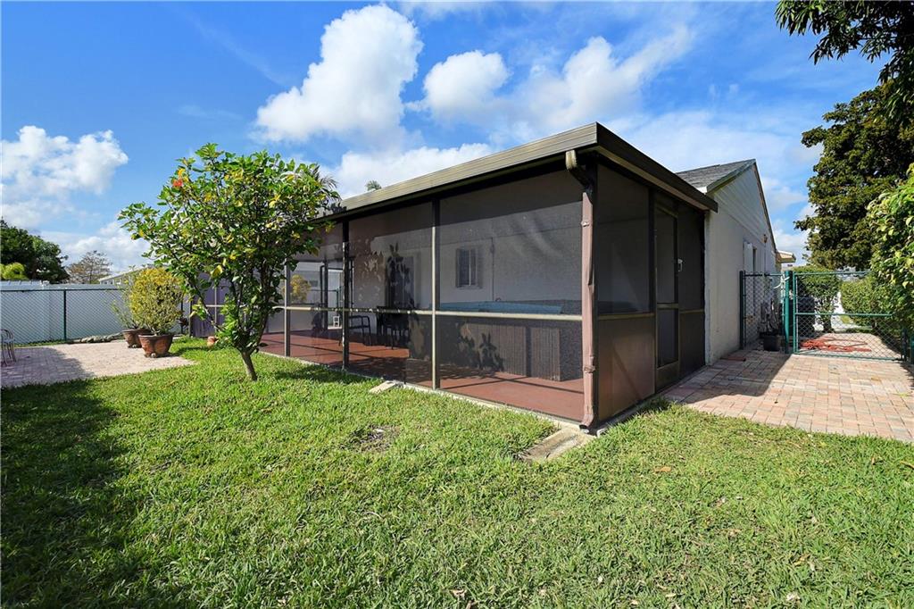 Reduced to sell!! Do not miss out! Charming extremely well maintained 2 bedrooms,2 bathrooms 1 car garage single family house. Spacious fenced in yard room for a pool. Oversized screened back porch with Jacuzzi in addition to a paved patio area. Located in a quiet & private area back-up to the lake & walking paths. Steps to the community pool, tennis courts & Basketball included in the HOA fees only $108.00 per month. NEW ROOF 2022. Tile & laminate flooring. Updated open kitchen, wood cabinets w/ self closed drawers. Tiled back splash. Stainless appliances. New Microwave & dishwasher. spacious master bedroom. A/C 2015. Water heater 2017. Washer & dryer in the garage. IMPACT ACCORDION SHUTTERS ON ALL WINDOWS. Great location minutes to HWYS, shopping & restaurants. Welcome Home! MUST SEE!