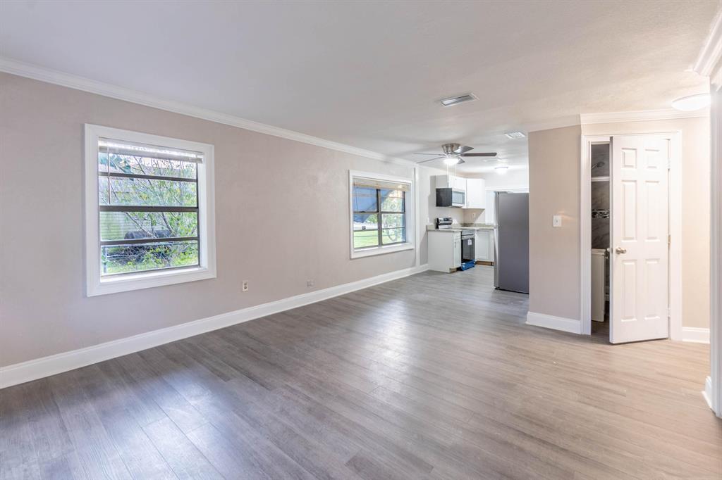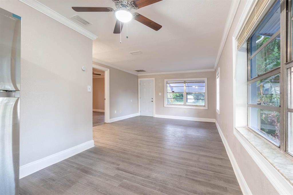 Upgrades Galore! Check out this darling cottage style single family home featuring a brand new Granite kitchen with brand new cabinets, brand new stainless steel kitchen appliances, brand new waterproof wood-looking vinyl flooring, fully renovated & brand new bathroom, newer metal roof, newer central AC system, newer water heater, fully fenced yard with entrances on both streets, fully repainted interior and exterior and so much more! Don't miss out on this GEM starter home, walking distance to Elementary school! This home has City water and septic which is the perfect combination.
