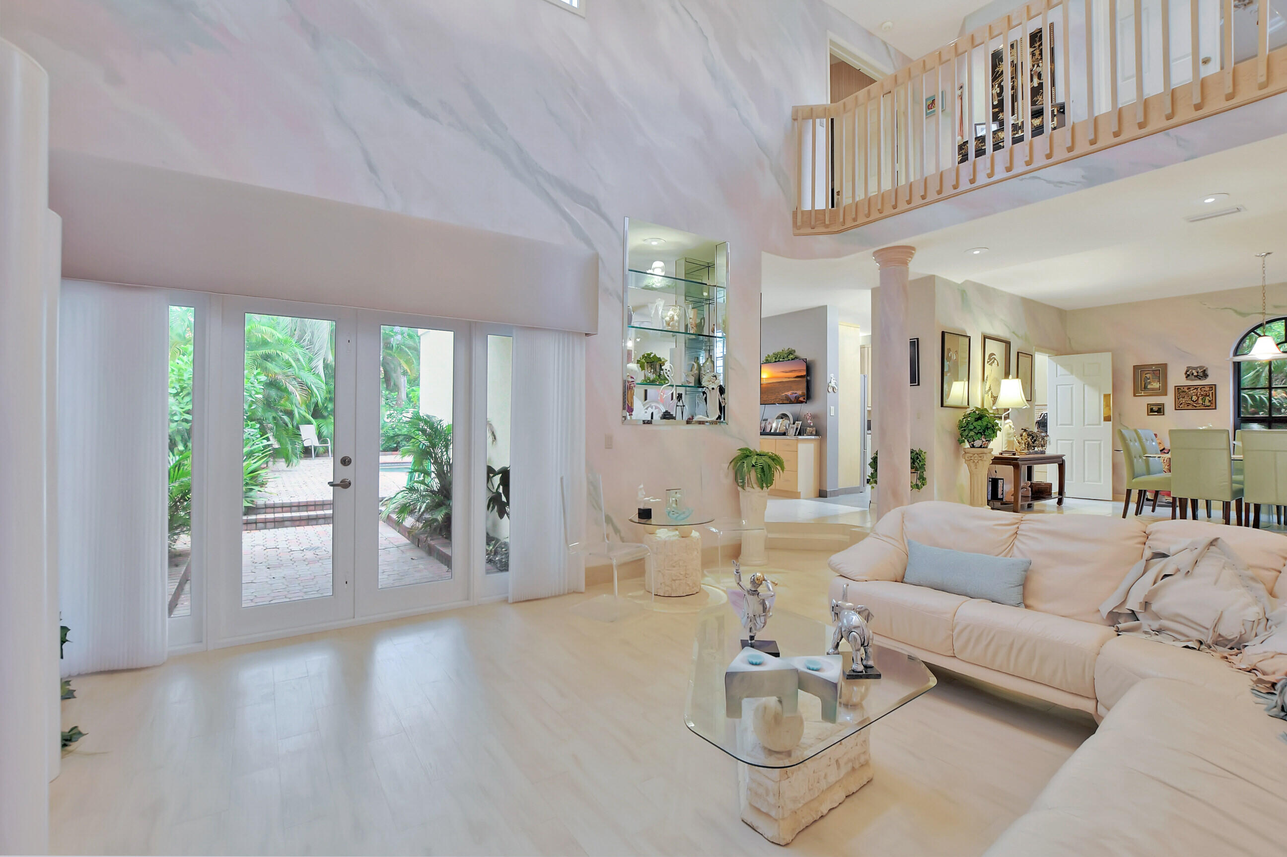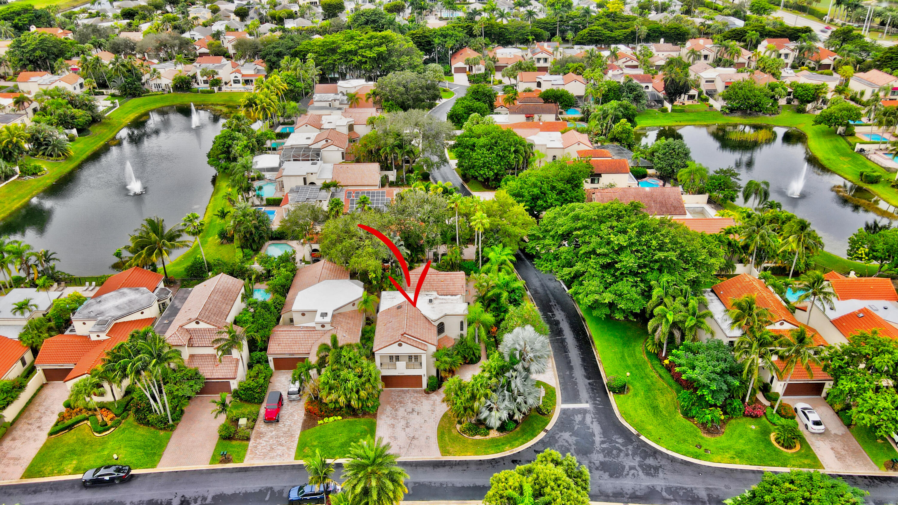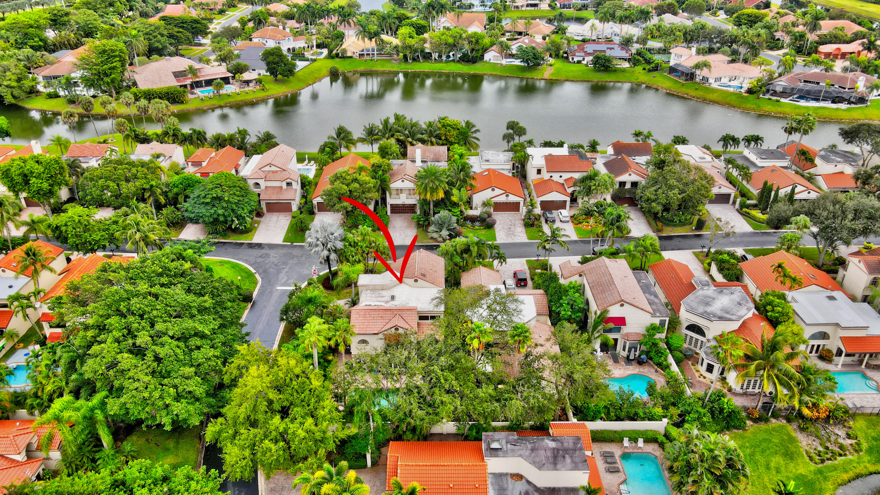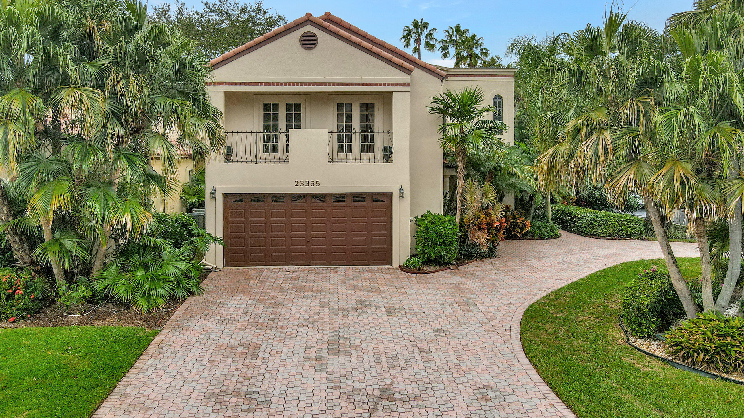 Amazing Flagship model home on oversized interior lot with massive circular paver driveway and custom island. Highly desired Valencia at Boca Pointe is a unique luxury community. This home features 4 bedrooms and 2.5 bathrooms with 2.5 car garage. Private backyard with pool, 2 outdoor lounging/barbecuing areas, one of which is covered. Dramatic high ceilings and massive custom windows and skylights fill the home with light from every angle. Impact Glass throughout as well as impact Garage Door. Kitchen layout was modified and made larger than original design. Bar passthrough window to backyard also added and is an entertainers dream. Home features 2 AC's 2015/2020, newer water heater. New fridge in kitchen and garage. 24 hour manned gate with security. A rated school zone. Pet friendly
