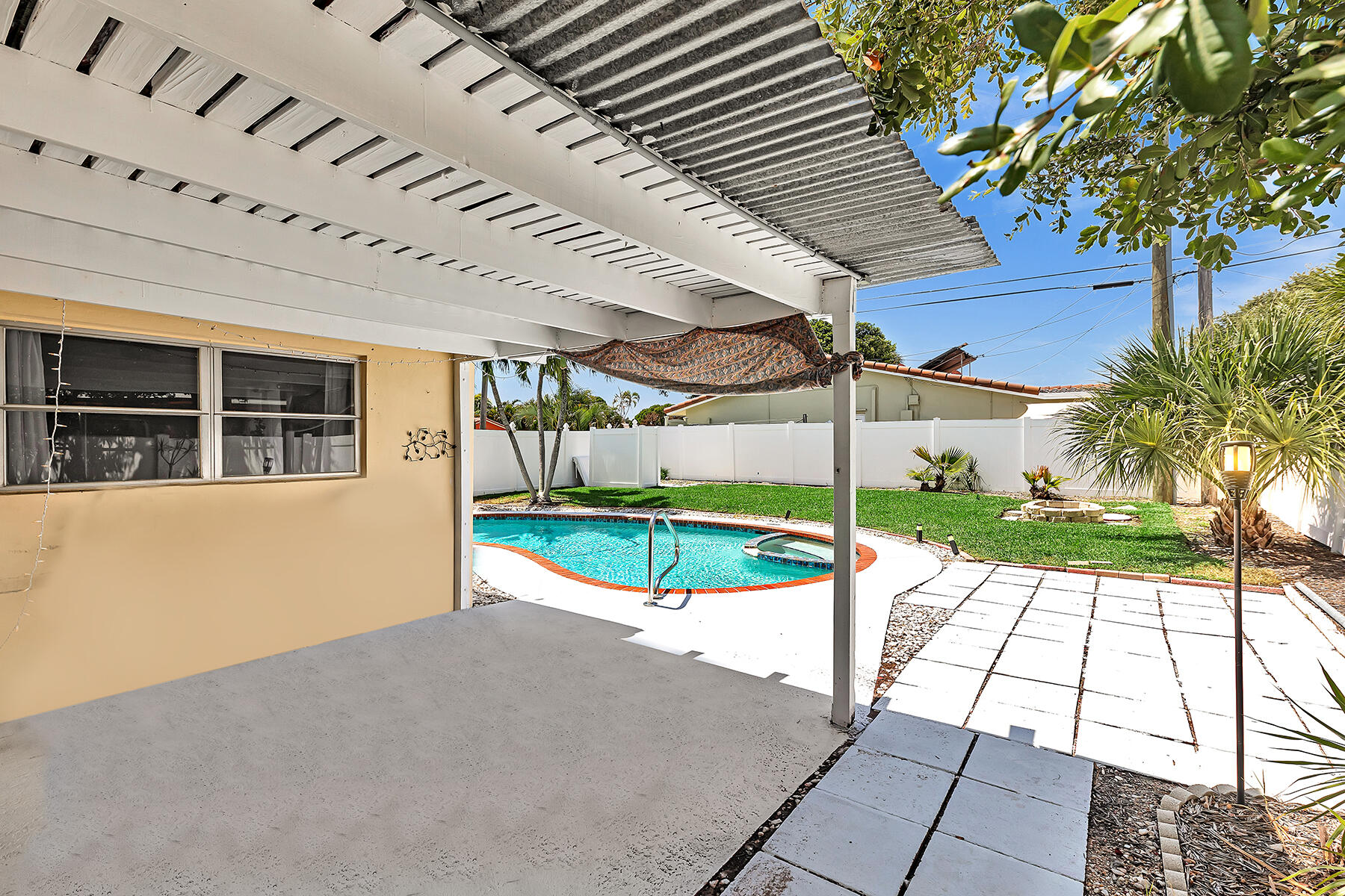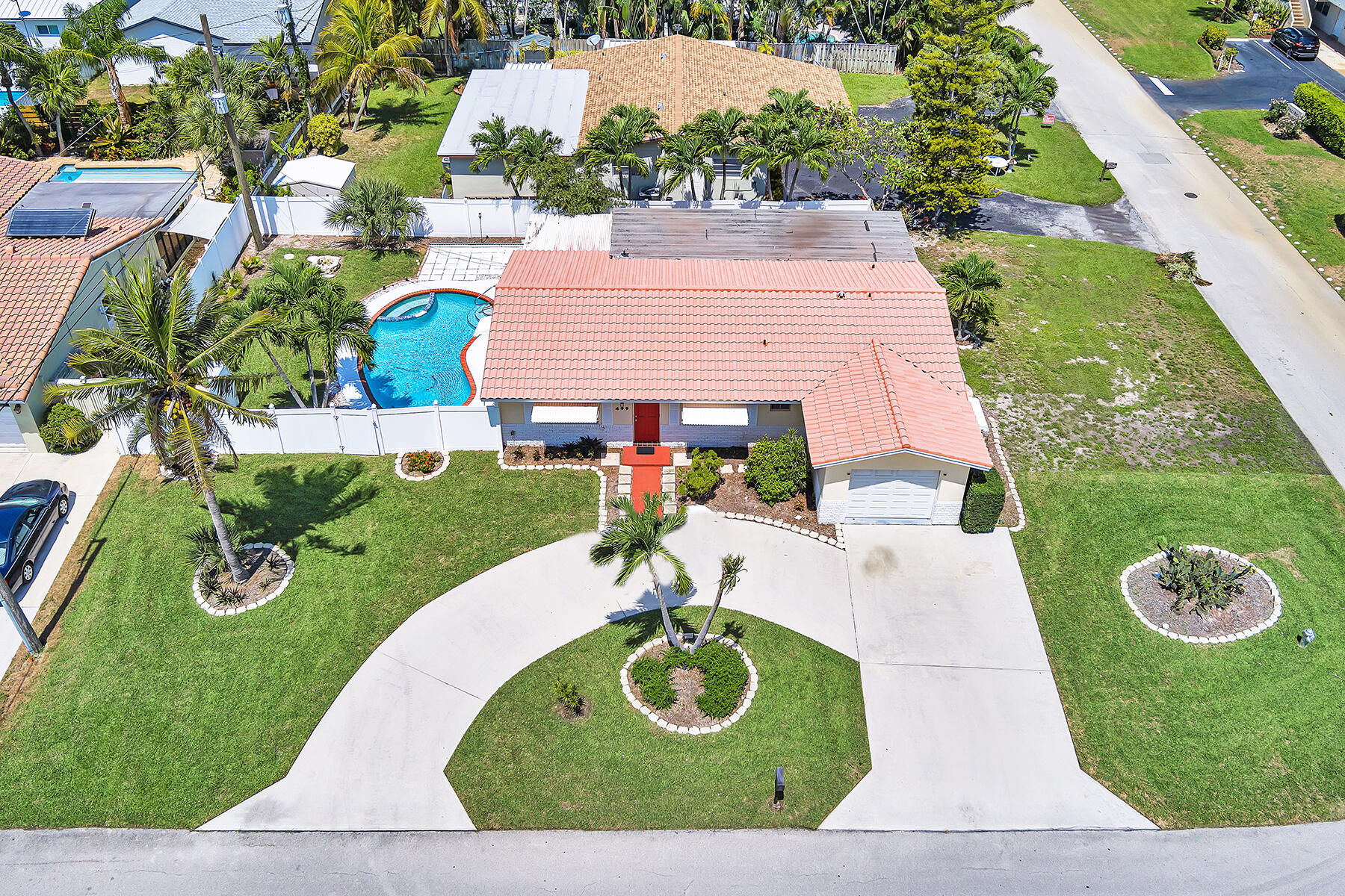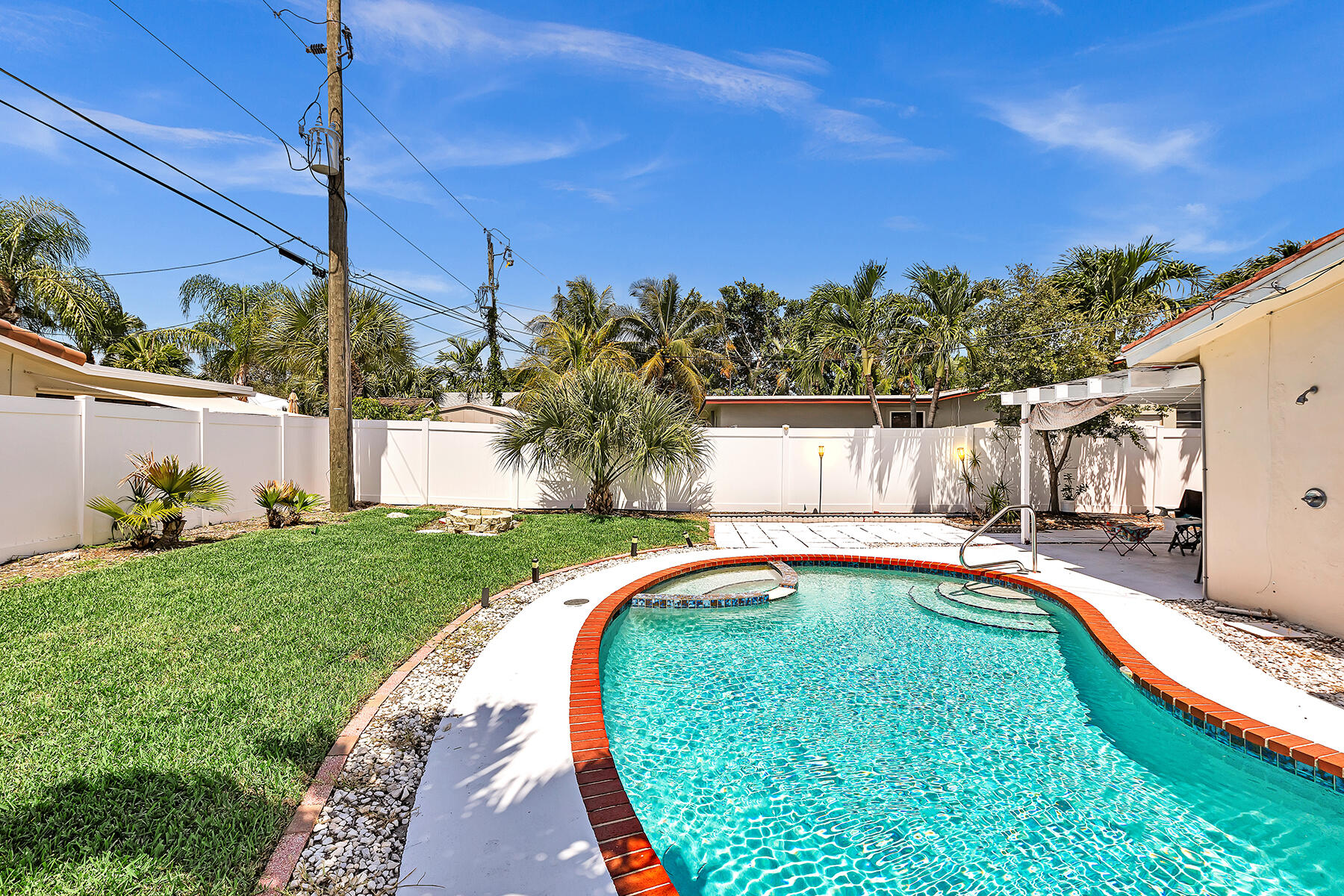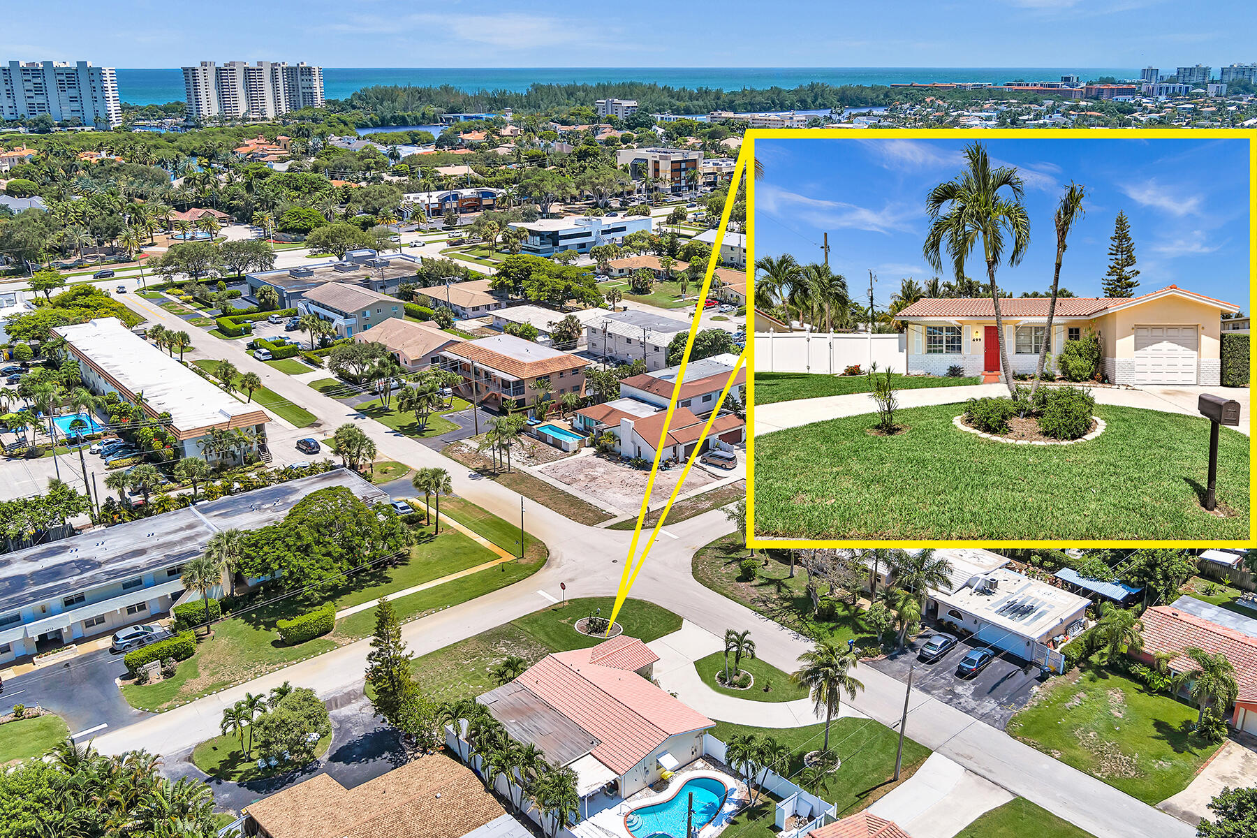 This 3 Bed, 2 Bath Home Features 1 car garage, fully fenced private backyard with heated pool and spa, covered patio, firepit, and outdoor shower. Sitting on a tremendous corner lot in thriving East Boca Raton with a circular driveway and extra land on the east side of the garage for additional parking of boats, RVs, trailers or other toys. Just 1 mile to the Beach, Mizner Park, the new Brightline rail and world class shopping & dining options, plus ''A rated'' schools. NO HOA rules & regulations or application process to buy or rent this home. Motorcycles, Trucks, work vehicles, and golf carts and Pets are all OK here. Has a new electrical panel and water heater (Permitted). So much potential to extend the floor plan or build up in the future. Area is still in very strong demand.