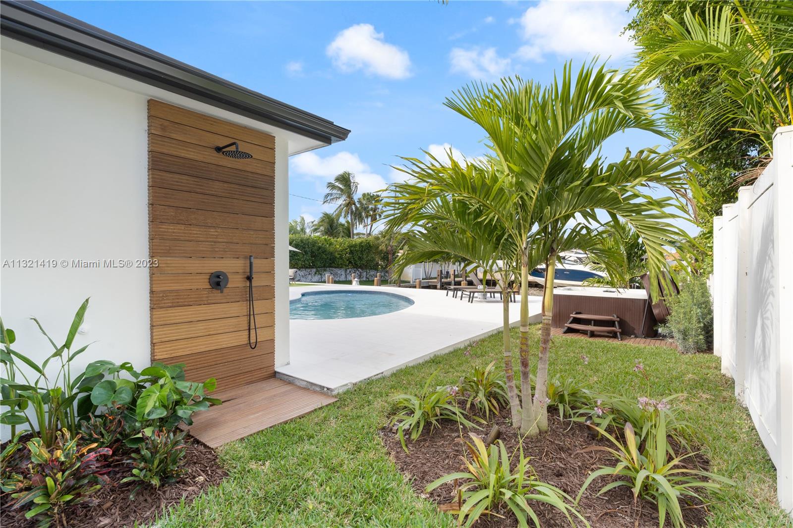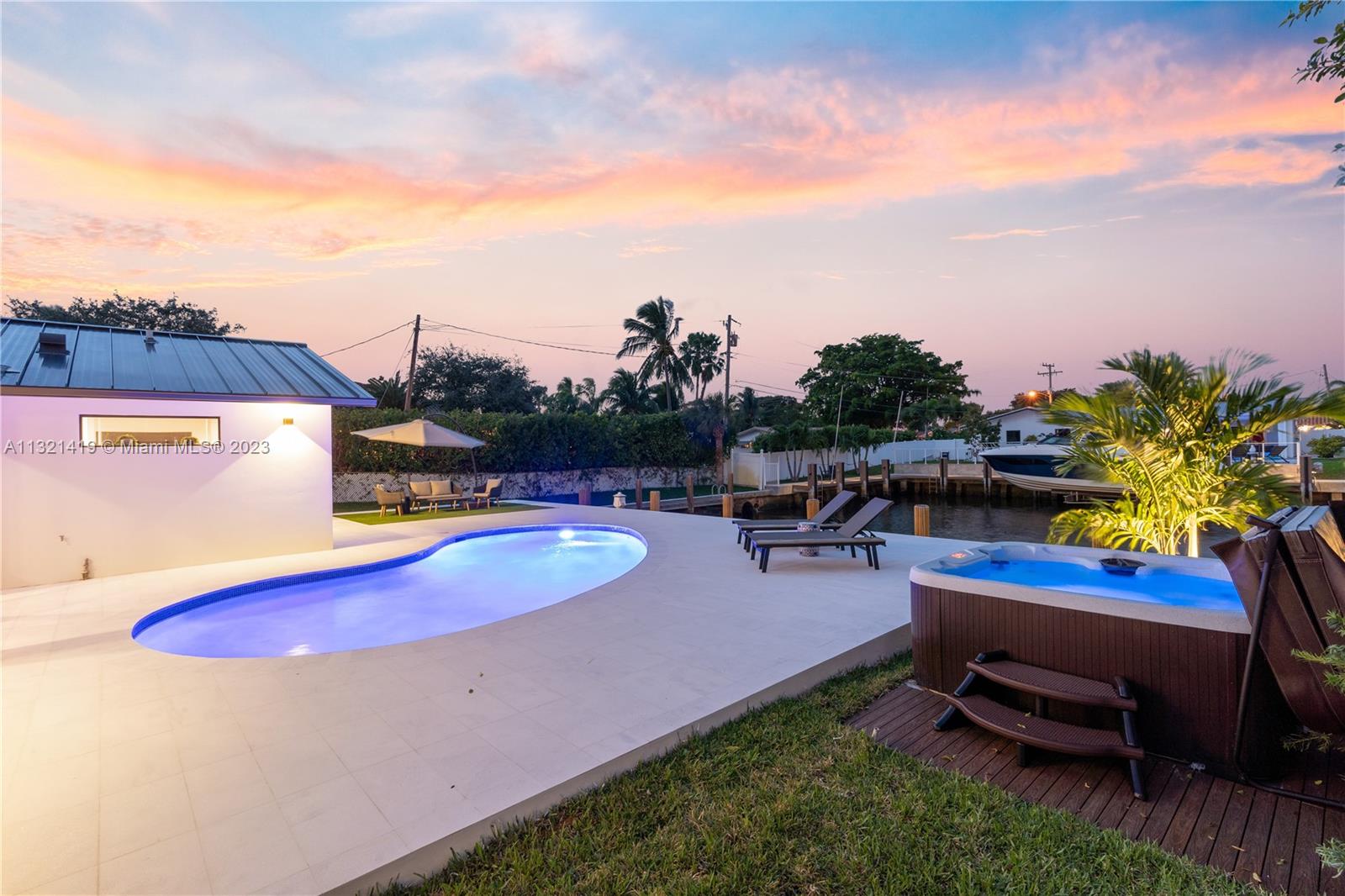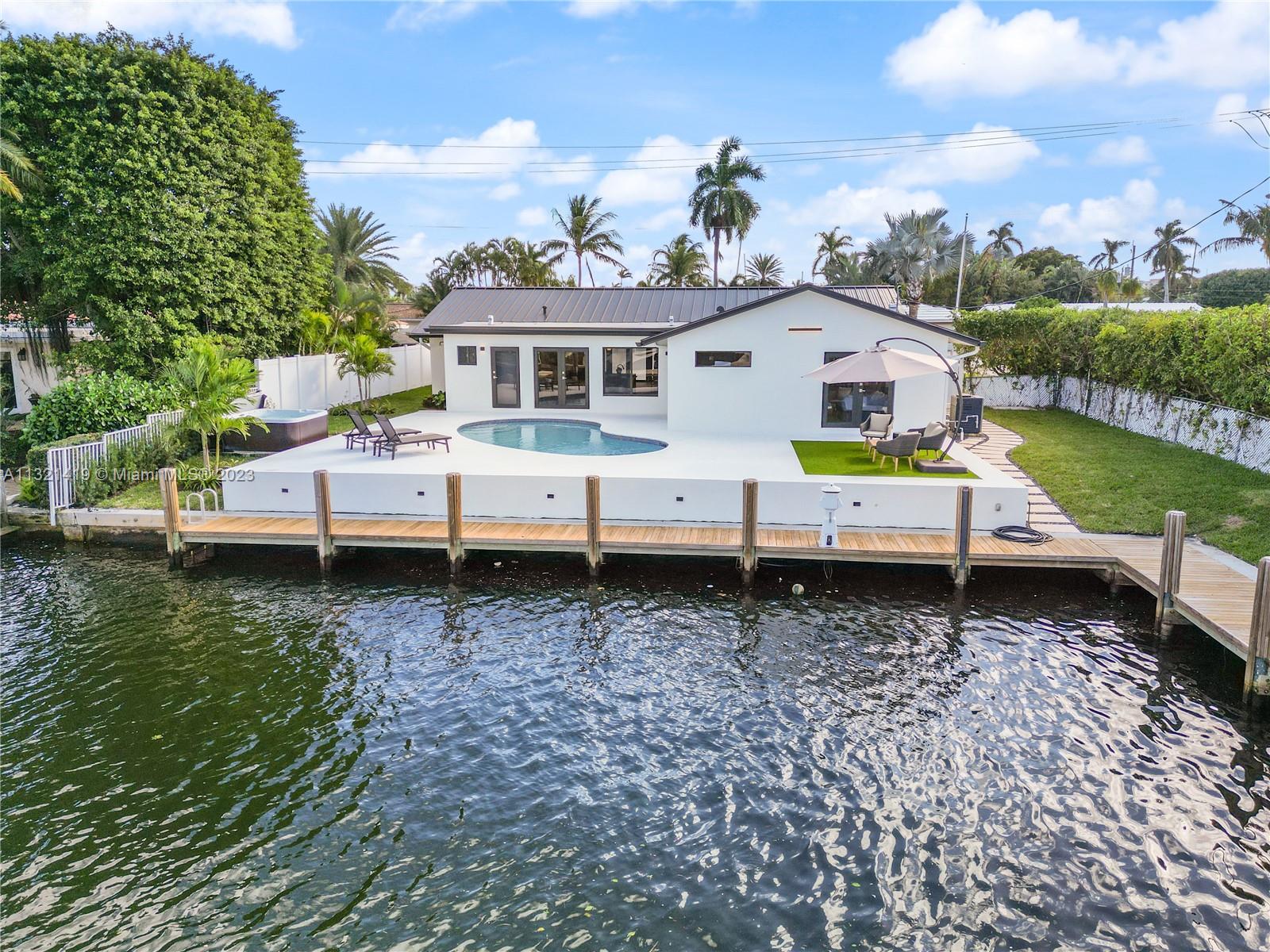 BACK ON THE MARKET! Completely rebuilt from the shell in 2023, this stunning custom home is ready for you to move in. Just bring your toothbrush and your yacht. The property, with its 120 feet waterfront, strategically sits on the end of a canal off the inter-coastal, just a quick boat ride to the open ocean. This spacious home offers a functional split layout, with 4 bedrooms / 3 bathrooms, custom built-out closets, open concept chef kitchen, laundry room and a 2-car garage. Private master suite with incredible water views, his and hers walk-in closet, free standing bathtub and double shower. Outdoor amenities include heated swimming pool, hot-tub, outdoor shower, cabana bathroom and natural gas barbecue. Brand new dock has power and water connections for boat maintenance.