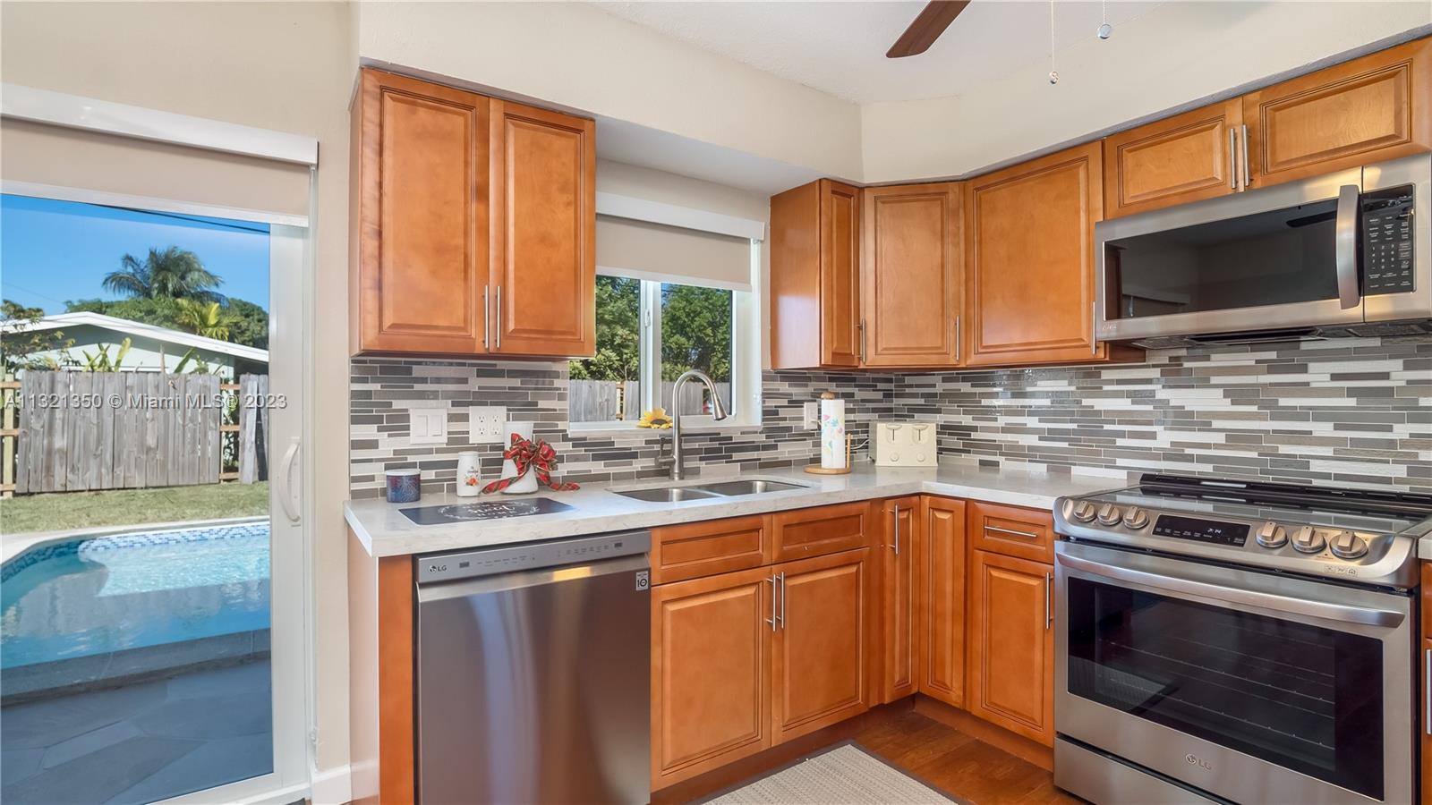 Welcome to this stunning renovated pool! From the moment you arrive, you will be amazed by all the upgrades and modern updates throughout this one-of-a-kind property. No HOA! Enjoy new hurricane windows/doors. The kitchen has all new appliances including a refrigerator with a peek-a-boo front door for beverages. Both bathrooms are brand new as well as beautiful wood floors that flow through every room. Every wall is freshly painted creating an inviting atmosphere to call your own. The split floor plan offers plenty of space for everyone in your family or visitors alike! The pool features a new surface, pump system, LED lighting, and patio/decking – sure to make summer days even more fun! Other recent improvements include a new roof (2021)W/H & A/C (2021). schedule your tour today!