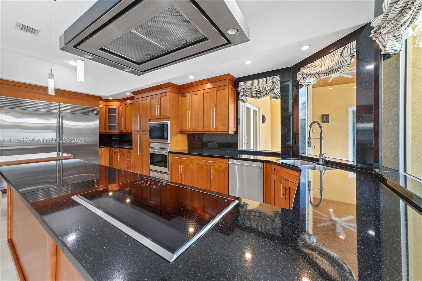 Beautiful, 4 bed/3 bath, single family home located on a large, corner lot in the Vanderbilt Park area of Doral. Home is set back on a hill with double doors opening to a spacious living area with high ceilings and there is a separate dining, kitchen and family room. Kitchen is finished with granite countertop, lots of windows, wood cabinetry and stainless steel appliances equipped with built in wall oven, microwave and warming drawer with wolf range and subzero refrigerator. Master bedroom has a separate sitting area and ensuite bath/closet, plenty of storage space and leads out to the pool/garden. Top of the line security system, flood lights, surround sound and covered patio area with pool. Move in ready/space for a boat. Close to A-rated schools, highways and restaurants.