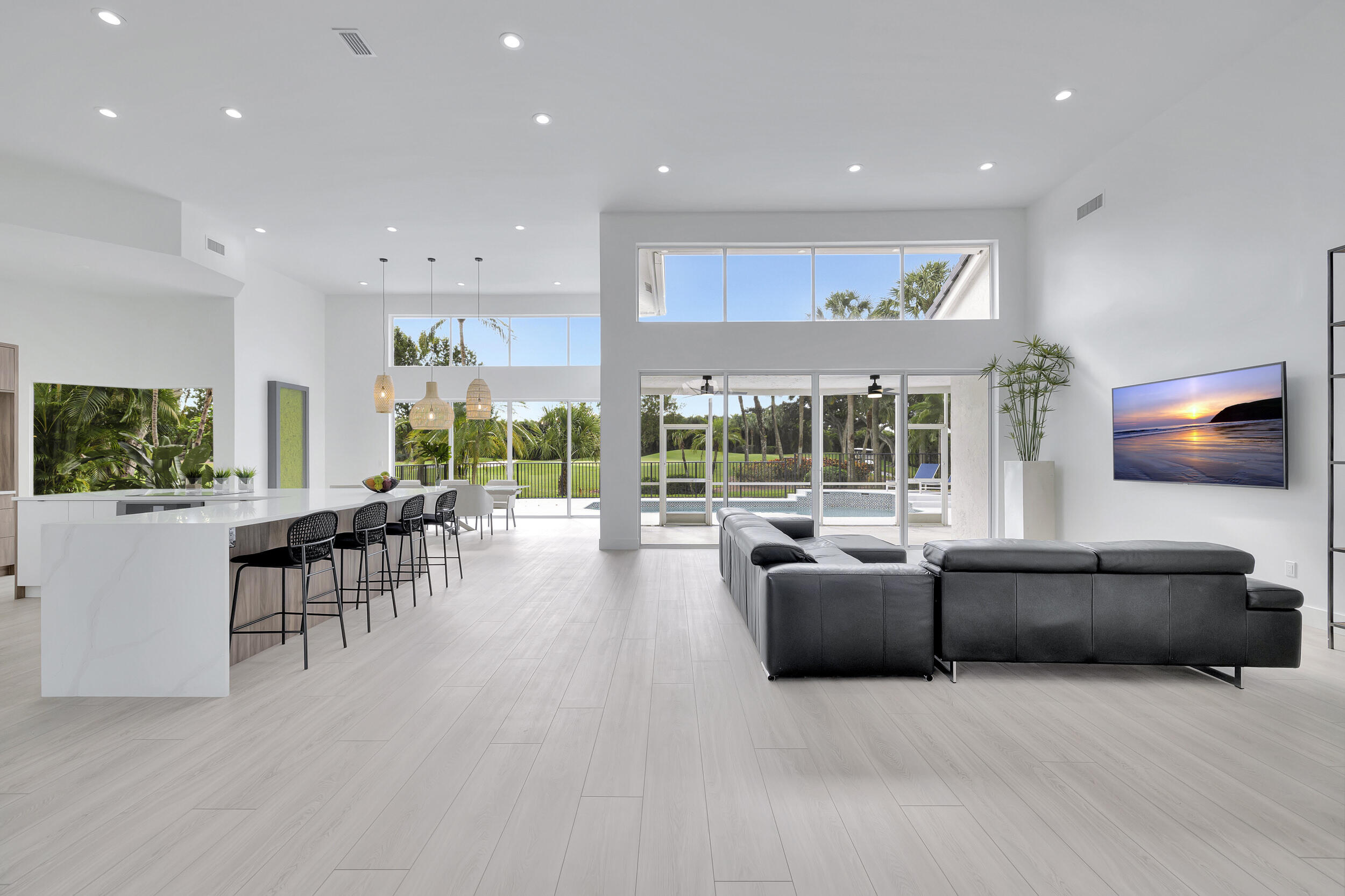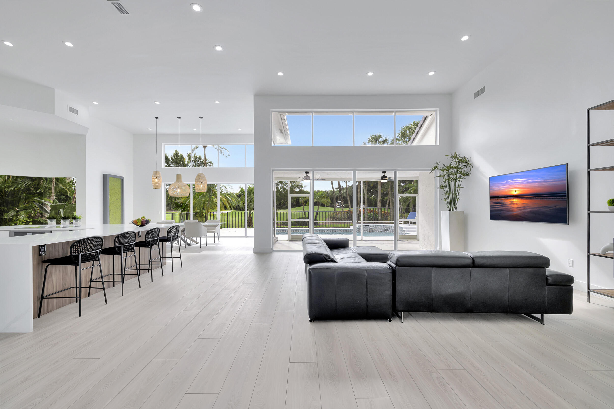 BRAND NEW ROOF This is a wow home.. situated overlooking the green of the 14th hole, this totally renovated home will put a big smile on your face.. HIgh end finishes thru out, this great room open floor plan has a hi tech kitchen complete with appliance garage, and lots of entertaining spaces. Luxury vinyl floors paired with a unique and creative renovation. New a/c, new hot water heater.. The primary bathroom offers a spa like design.. Relax and enjoy this amazing home and make it yours..