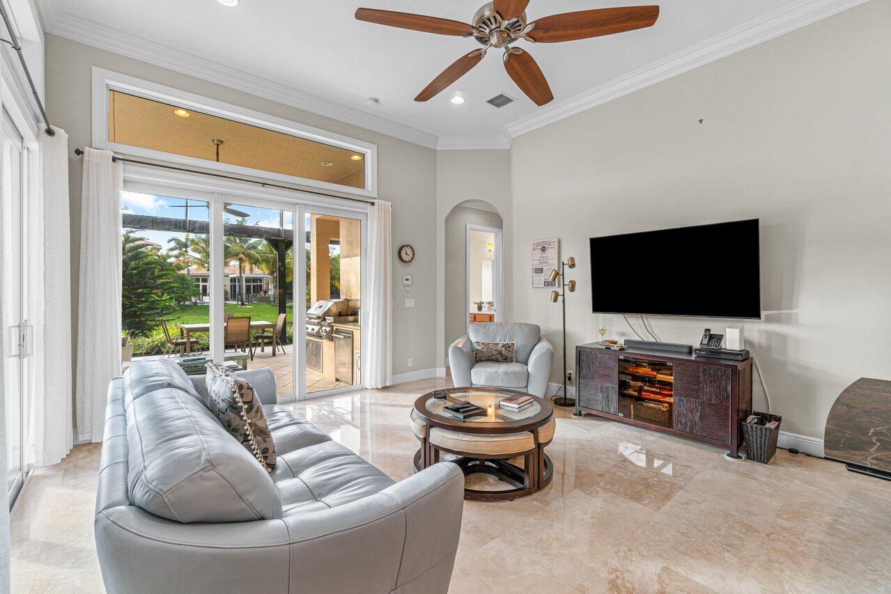 Welcome to Azura, located in one of Boca Raton's most sought after neighborhoods. Behind the 24/7 manned security gate, you'll find picturesque cobblestone streets in a boutique community of 96 residences. This outstanding 4 bedroom plus a den, 3 1/2 bathroom single story home is 3,167 sf under air and 4,464 total sf offering a 3 way split bedroom plan, large living room and family room, breakfast nook, formal dining room, and a 3 car garage. Additional features include HURRICANE impact glass, remodeled pool & spa with new diamond bright and new glass tile, Miami Dade approved screen enclosure, full house natural gas generator, 6 burner gas range, Kitchen - Aide professional line refrigerator, range, and oven, Kitchen-aide dishwasher and microwave. The exterior has been recently painted,