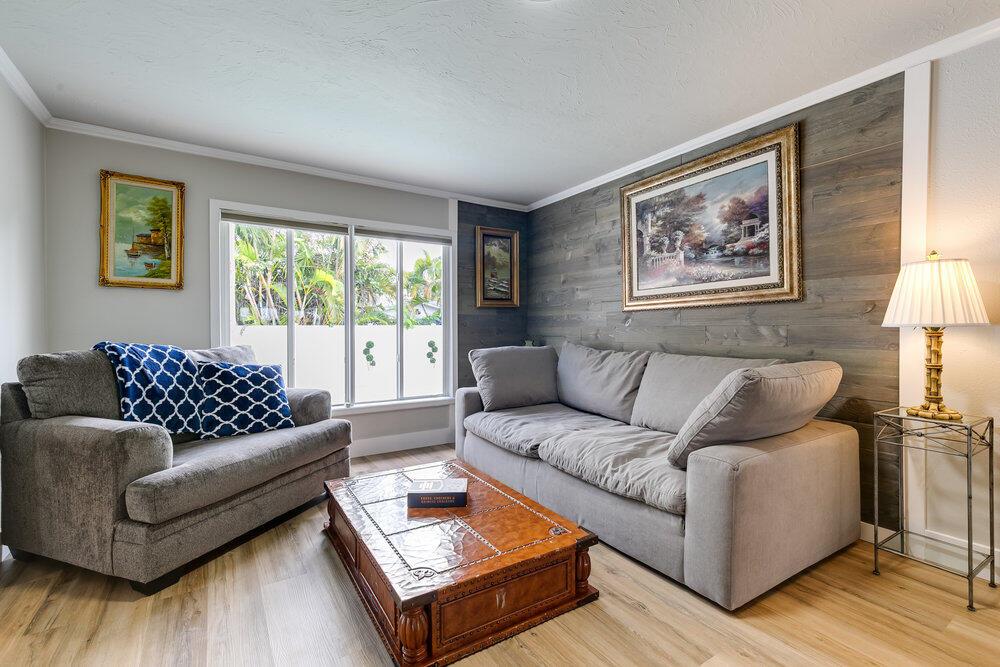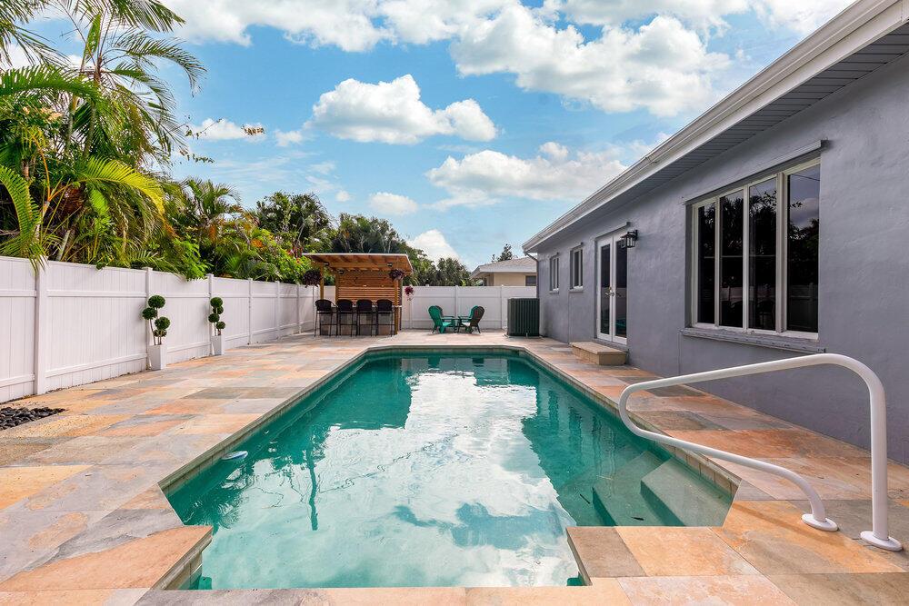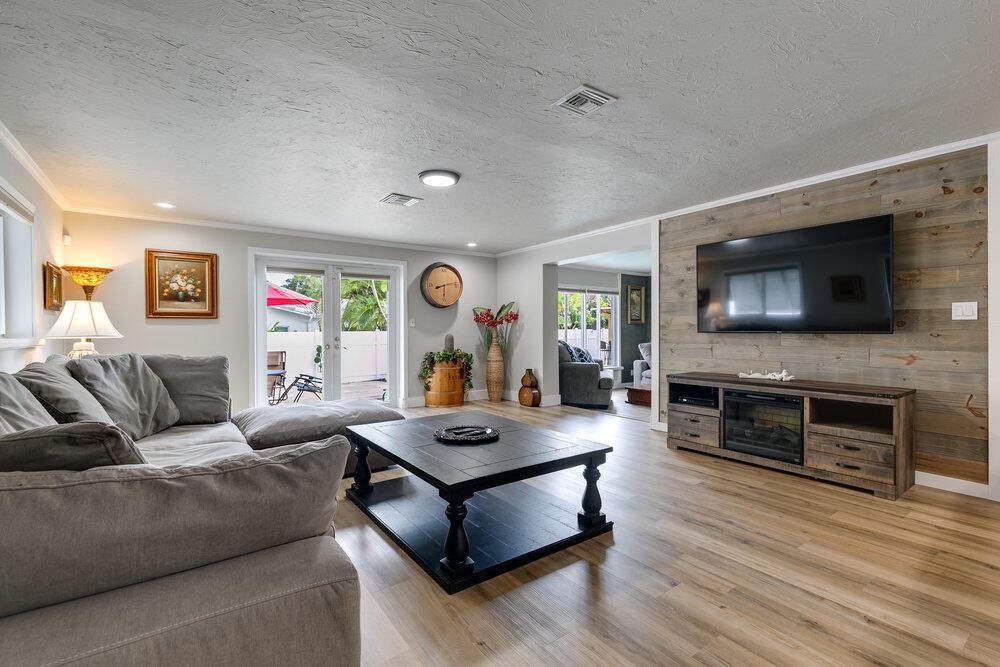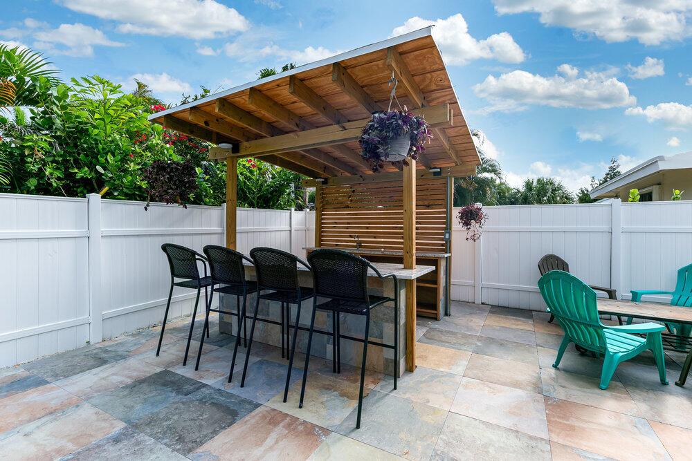 A beautiful 3 bedroom, 2 bath home in the highly desired Boca Villas of the Golden Triangle! Open concept with recent upgrades and renovation done in 2021 and 2022. A rare square footage count for a 3/2 in the neighborhood. This home also contains a separate family room which may potentially convert to a 4th bedroom. Wood cladding installed on the walls for an additional aesthetic appeal. New kitchen aid appliances, new washer and dryer, newly built outdoor bar and newly installed hardscape in the yard. Lush new landscaping in the front yard for maximized curb appeal. Walking distance to the shops and restaurants of Mizner Park. Close proximity to the beach. This home is for the buyer who is looking to live near everything fun and exciting that Boca has to offer! Closing to take place no