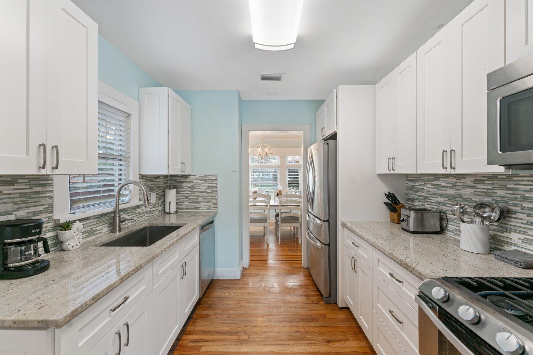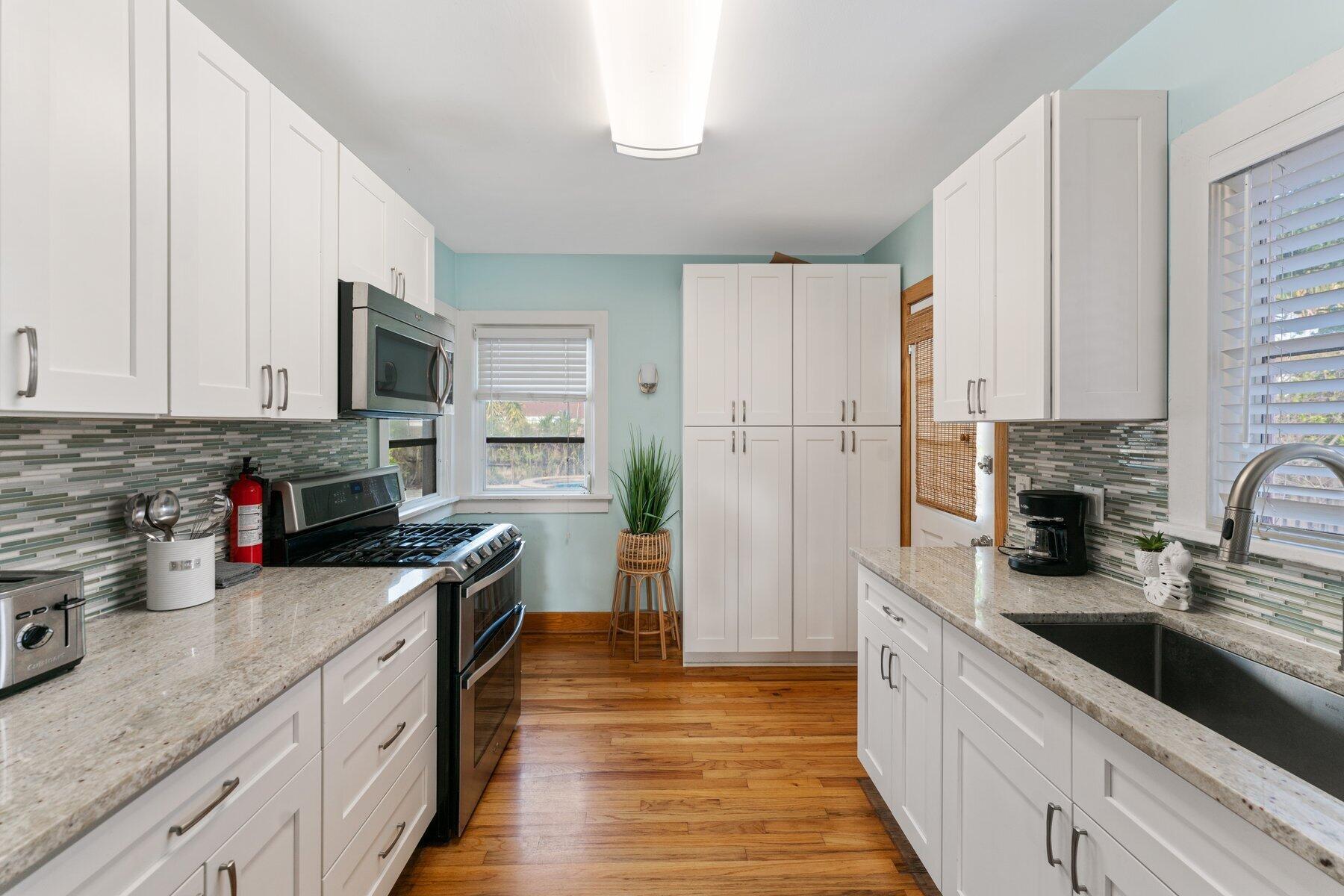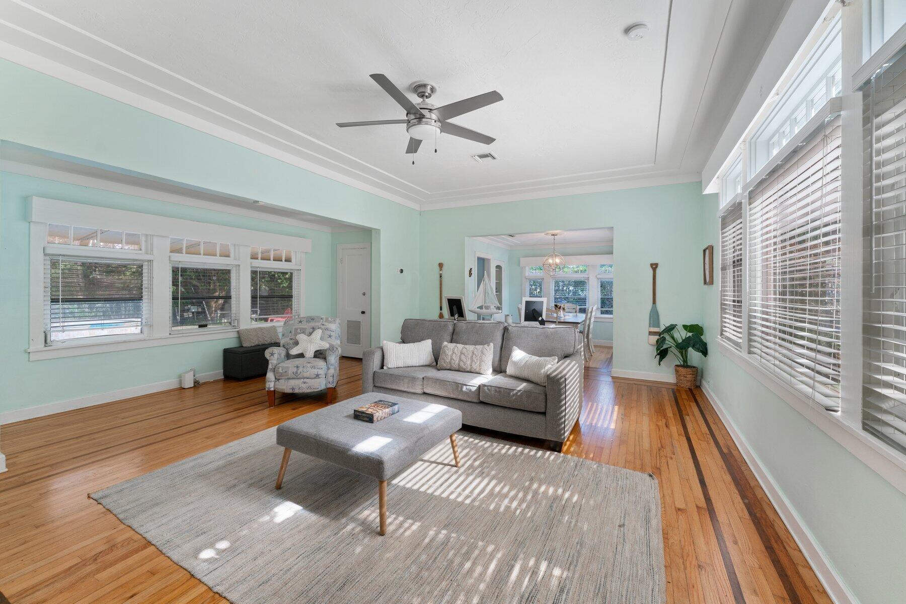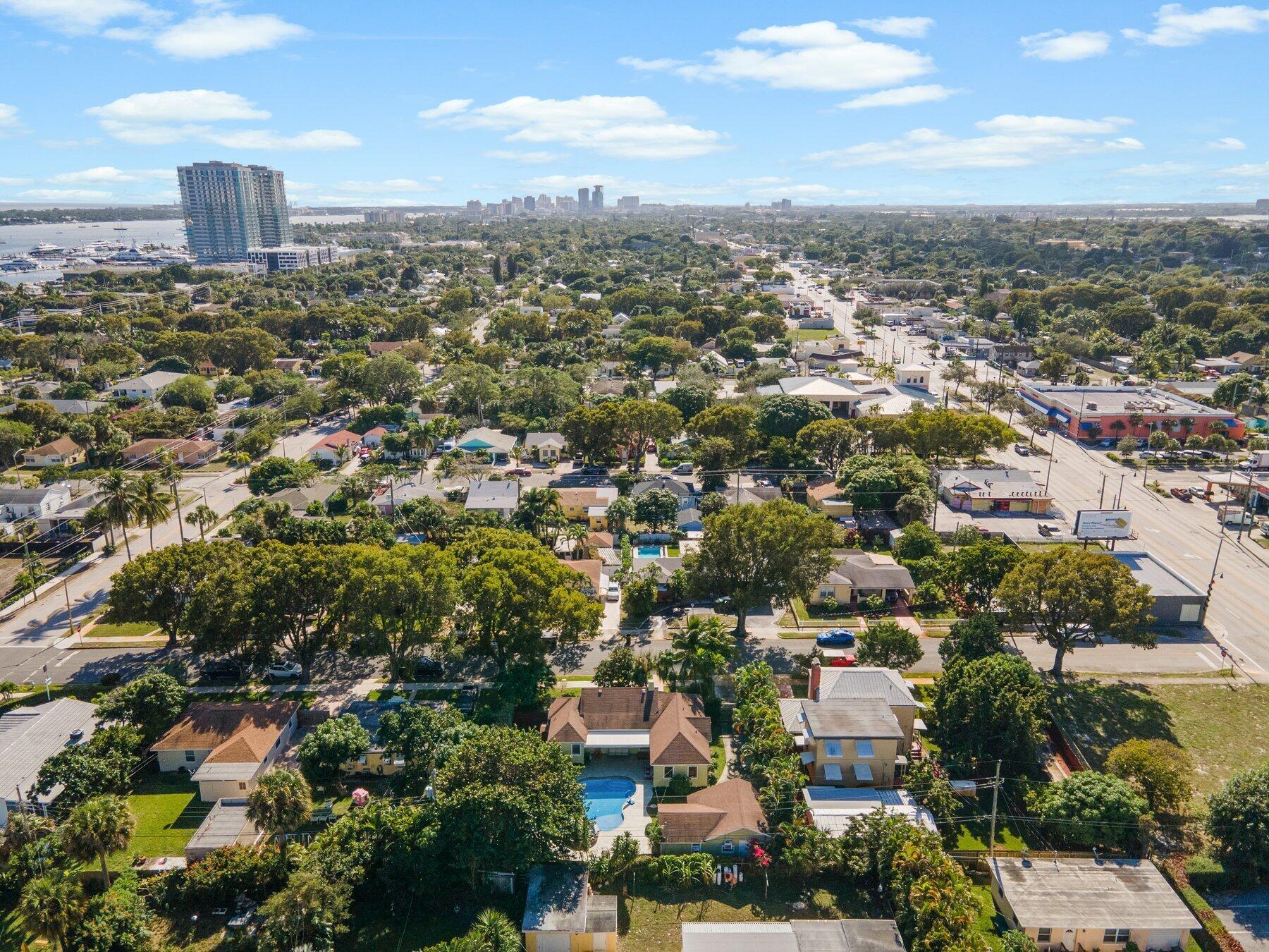 Located in the enchanting Historic Distric of West Palm Beach and only 5 minutes away from the beach is this charming home built in 1941. The main house consists of 2 large bedrooms, a formal dining room and living room with beautiful original hardwood flooring throughout, one spacious updated master bathroom, updated kitchen with stainless steel appliances, granite counter-tops, wood burning fire-place, vaulted ceilings, cedar wood closets in both bedrooms. Out back overlooking the pool, is a cozy little cottage with 1 bedroom, 1 large bathroom, a seperate living area with a washer/dryer, and a kitchenette. Gated driveway with space for a boat or RV. In ground heated salt water pool just recently resurfaced, brand new AC. Perfect for an airbnb, winter get away, or place to call home.