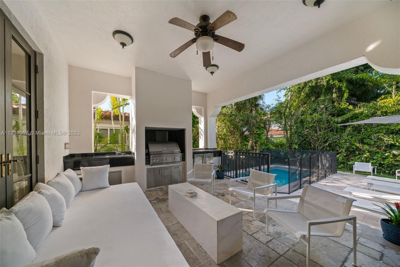 Located in the heart of Coral Gables, this 4-bedroom, 3-bathroom 2,861 SF home offers a spacious floorplan with oversized rooms and high ceilings. The impeccably designed two-story residence has an open layout with a grand foyer entry leading to the living room and formal dining room. The beautiful kitchen overlooks a family room, with views of the stunning backyard. The second-floor primary suite features a spectacular and sizeable terrace overlooking the pool and garden. The outdoor space is perfect for entertaining, with an expansive covered patio, built-in barbeque, large pool, artificial turf and plenty of landscaping for optimal privacy. Additional features include impact windows and doors. Close to Merrick Park, Miracle Mile and the Biltmore Hotel and golf course.