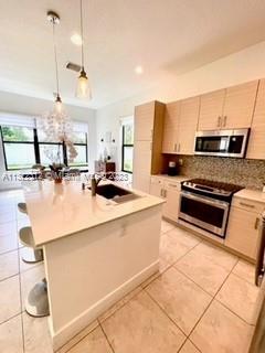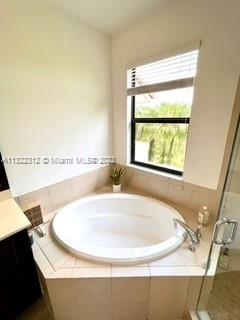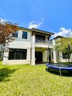 Beautiful Bright and spacious Single Family in the gated community of Bonterra with 3 bed and 2.5 bath Living, dining, kitchen, half bath, open brick patio and two car garage (inside) and other two cars (outside) on the first floor. 3 bedrooms and 2 bathrooms on the second floor. Large Master bedroom with balcony, master bath has shower and tub with double vanity. His and Her big walk-in closets. Bedrooms 2 & 3 shares a bathroom (Jack & Jill) with double vanity. Washer and Dryer. Impact windows and doors through the property. Tile downstairs and laminated floors upstairs. Updated blinds, security system in place; beautiful landscaping. Conveniently located with easy access to I-75, Turnpike and 826. Gated community with great amenities including a 24 hour guard at gate.