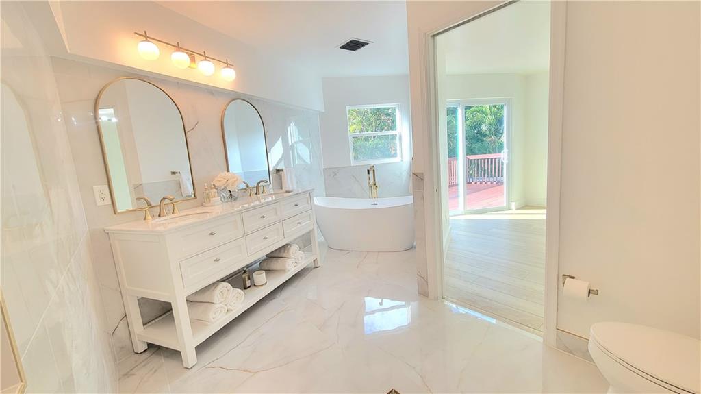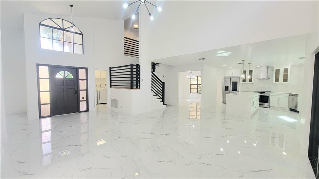 Jacaranda area waterfront 4 bedroom 3 bath pool home w/3 bedrooms, 2 baths upstairs and 1 full bath & bedroom on ground floor. 2 spacious living areas, w/ soaring vaulted ceilings. High end tile throughout ground floor and a large, dedicated dining room spacious enough to meet any entertaining needs. Full 2 car garage and circular driveway. New designer kitchen with custom cabinetry and an oversized quartz waterfall island that is perfect for gathering. Modern design finishes throughout the home. Main bedroom on the 2nd floor has a large private balcony and a stunning bathroom suite with a large shower and enormous free-standing soaking bathtub. New appliances, updated electric, new water heater, newer ACs (2), whole house generator, screened in pool and more. Also avail for rent.
