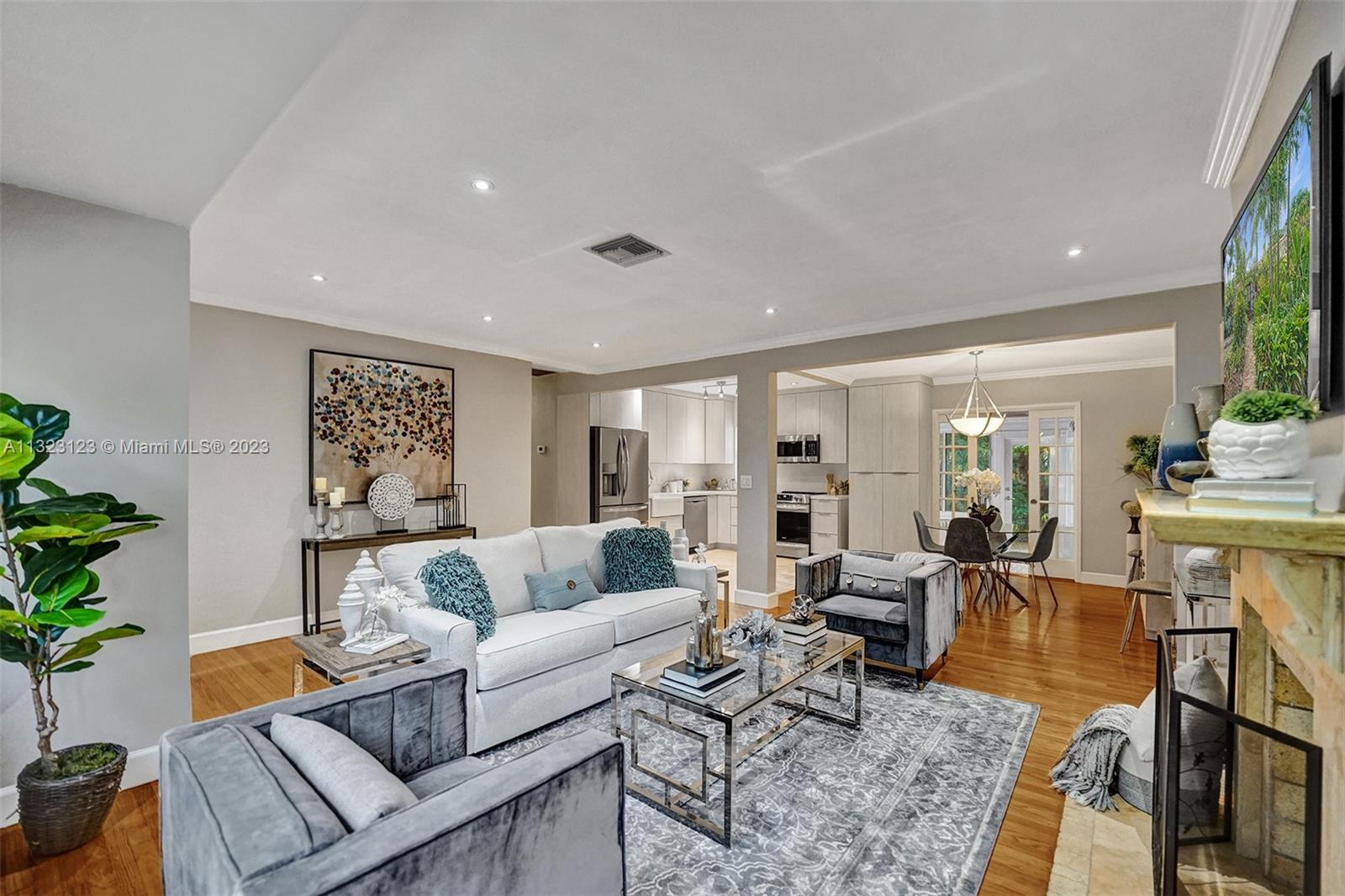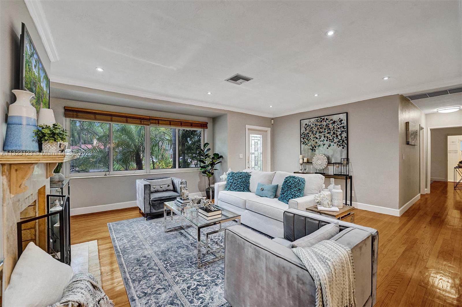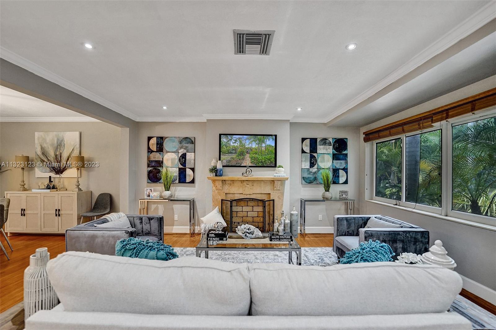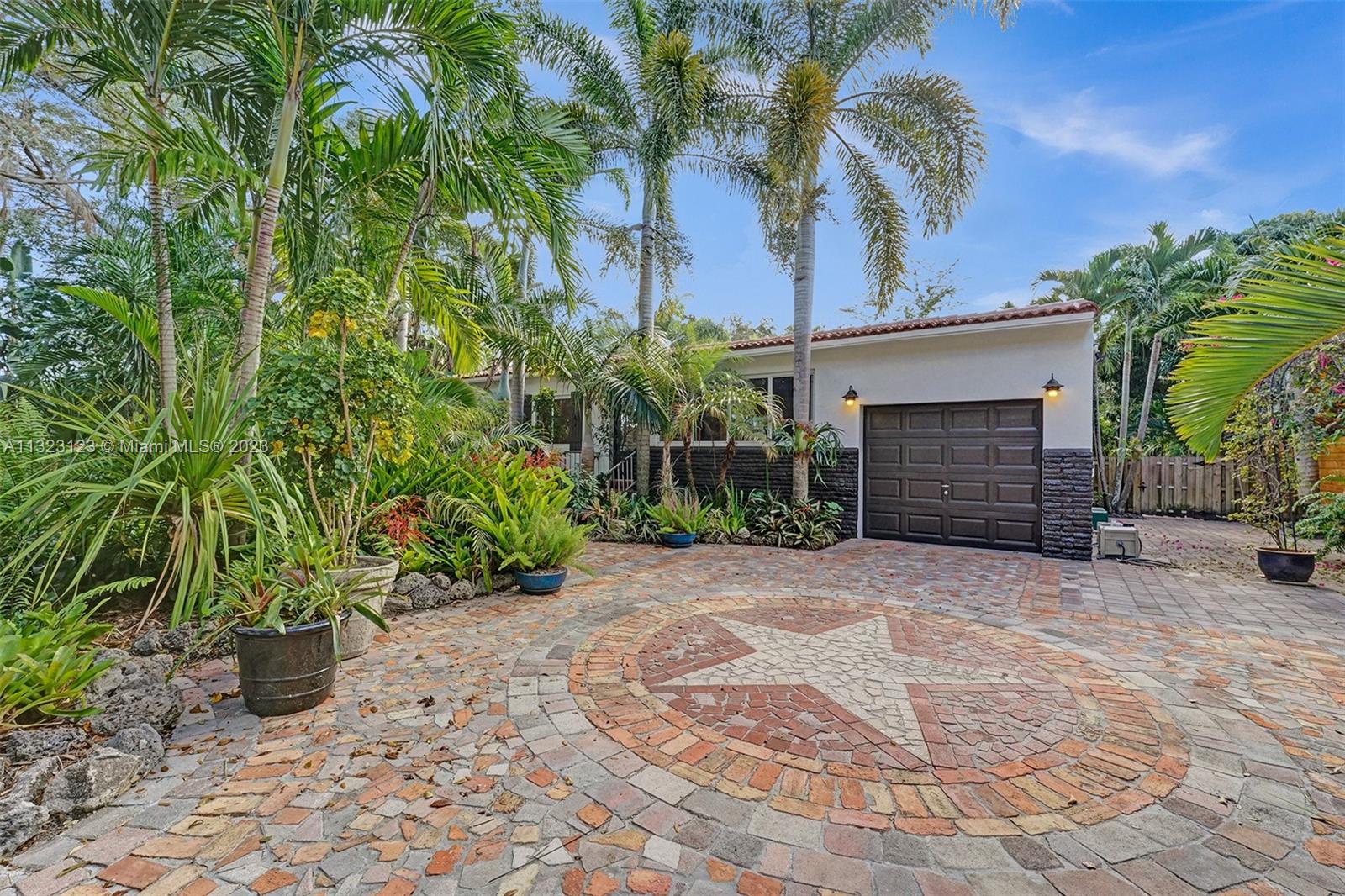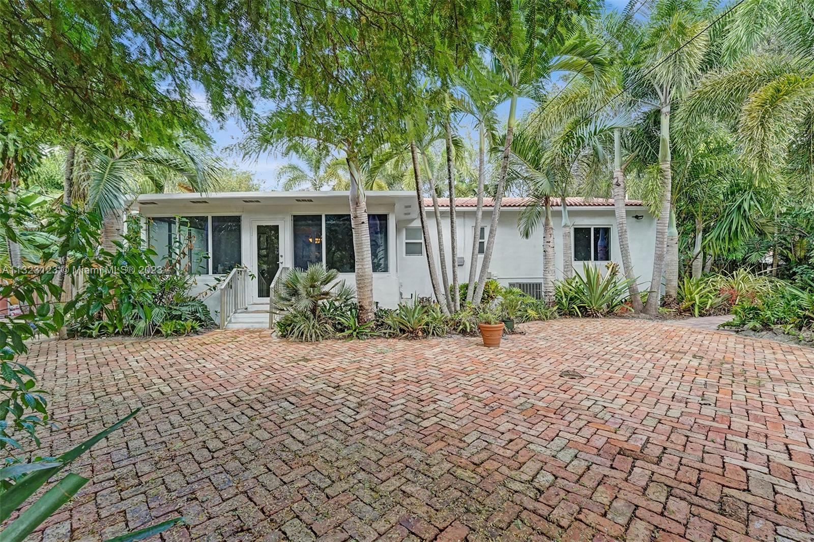 A tropical oasis awaits you at this charming central Miami Shores home. Entertain friends on the back Chicago brick patio surrounded by fruit trees and tropical landscaping on double lot w/room for pool. Inside, enjoy cooking in the updated kitchen that is open to the living and dining areas. 3 full bedrooms, plus two updated bathrooms leave plenty of space for friends and family while the Florida room is the perfect spot to work from home or enjoy a coffee overlooking the back garden. A one car garage allows room for all your hobbies. Updates: impact windows, refinished floors, tankless water heater, 10 year old roof, AC ductwork plus fresh paint inside and out make this home move in ready! Near excellent schools + walk to 2nd ave dining and shops or 15min drive to beach/Design District.