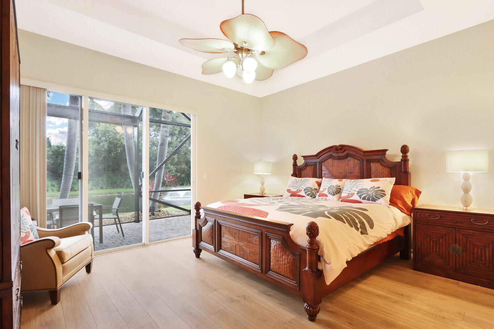 Wrap-around water views in the Grande, 100 feet of water frontage, and a large side yard (with plenty of room for a pool) make this 3BR/2.5BA+Den a unique opportunity at this price point. One of only a handful of side lot properties in Ibis, this beautifully upgraded and highly optioned ''Princeton'' boasts over 2600 SF--2200 of which is on the first floor. With the primary suite, den, and powder room on the first floor, and two over-sized bedrooms and a bath upstairs, this Grande home features soaring ceilings, large rooms, and lots of windows for light to pour in. From the inside looking out, the large side yard makes the home feel more spacious. Enjoy brand new stainless kitchen appliances in the open kitchen, which overlooks the family room and large screened area.