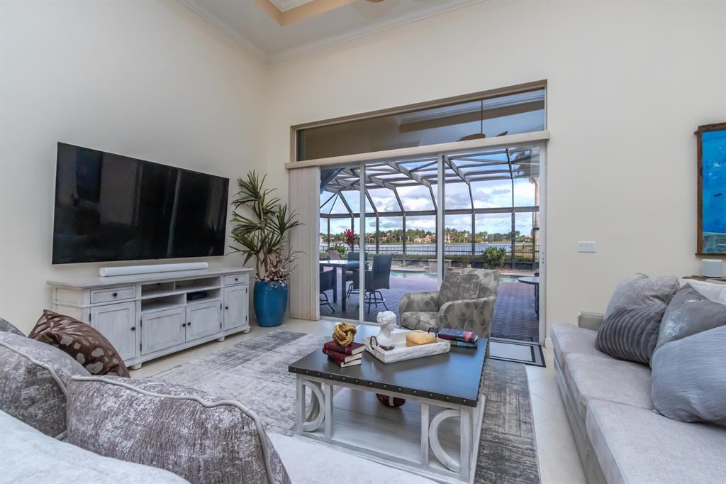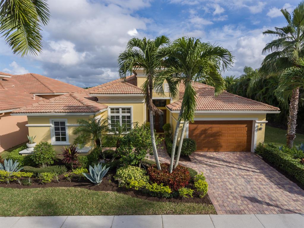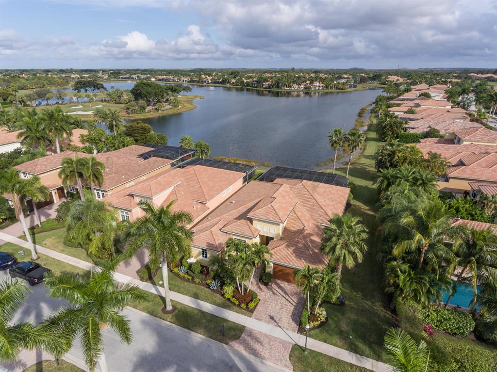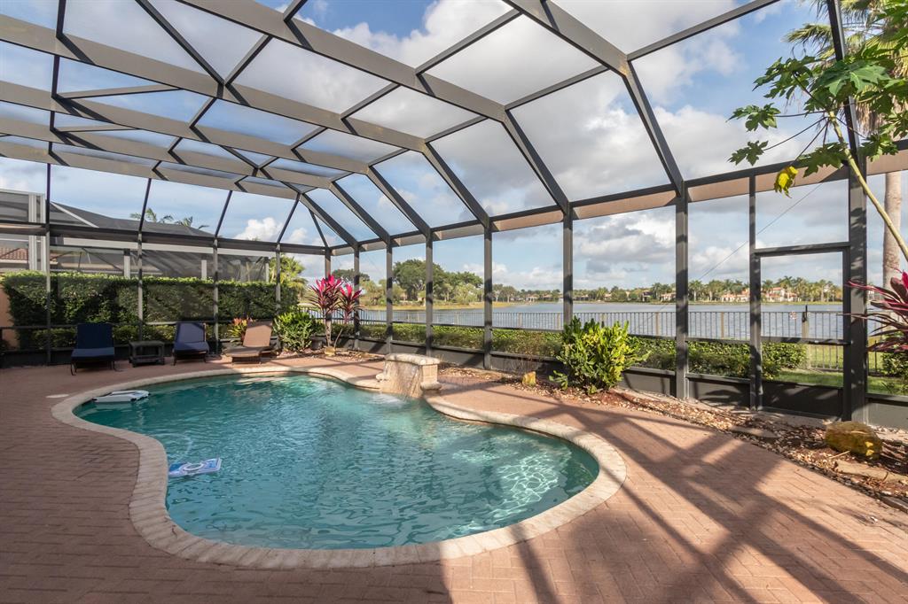 Dramatic Water and Golf views across one of the largest lakes in Ibis make this home a dream find! Three bedrooms plus den/office and 3.1 bathrooms and 2.1 garage spaces all on one level. This home has been updated with new plank flooring in all bedrooms. Pool features a new pool heater, new wireless Aqualink system, and all new valves, pump, and filter. Large screened in lanai with incredible water views allowing ample room to relax by the pool with a great view. Large open kitchen with island seating, tons of cabinetry, double ovens, S/S appliances and a gas range make this kitchen a chef's dream. Master suite features two walk-in closets and en suite bathroom with dual sinks, large tub, private water closet and large step-in shower. Accordion shutters on the sides and rear of the home