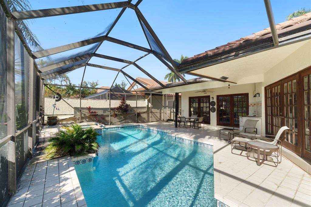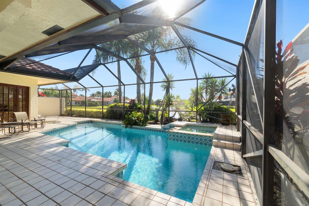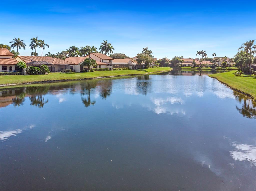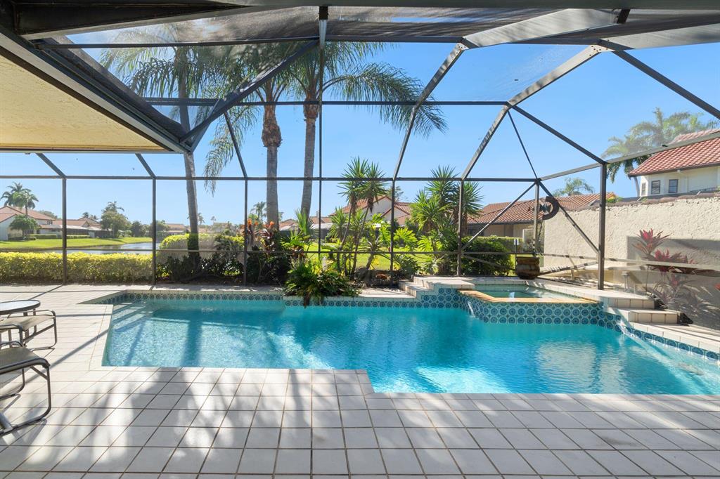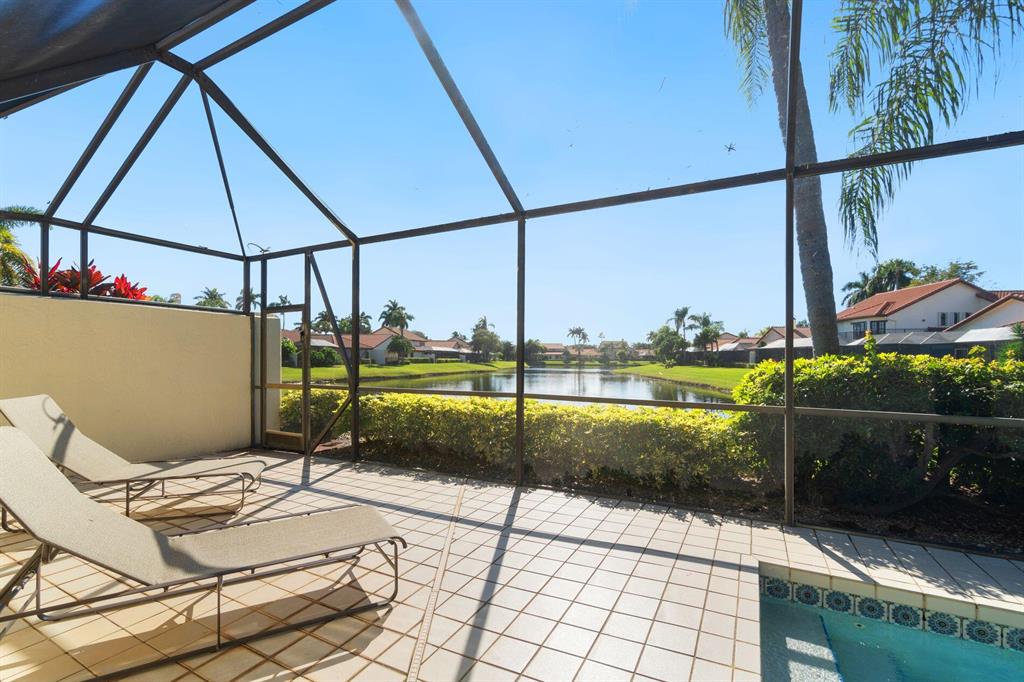 Fantastic 3 Bedroom 2.5 Bath lakefront pool home located in Esplanada at Boca Pointe non mandatory membership country club. This home was built for entertainment. Featuring a tropical atrium and an expansive open floor plan. The outdoor area is amazing large pool/spa, screen in patio overlooking a beautiful lake. Inside the kitchen is big, featuring a breakfast area that seats 6, center island with cook top. Granite counters compliment wood raised panel cabinetry. The large master suite includes built in cabinets, custom walk in closet and luxurious bath. On the opposite side of the home there are 2 additional bedrooms with custom closets and full bath. There is also a laundry room half bath off the kitchen. Designer furniture is included with the home.