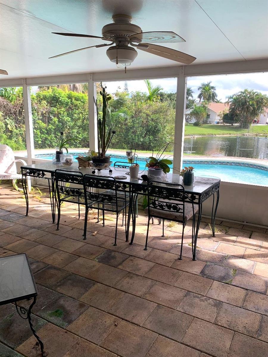LOCATION!! LOCATION!! LOCATION!!! ROOMY 4 BEDROOM 2 BATH WITH POOL OVERLOOKING LAKE. NEEDS UPDATING. PRICED TO SELL. NEWER STAINLESS STEEL APPLIANCES. WATER HEATER & A/C COMPRESSOR NEW 2022. LAMINATE WOOD FLOORING IN 3 BEDROOMS. BAHAMA & ACCORDIAN SHUTTERS. 2 CAR GARAGE CONVERTED TO A DEN. NO HOA. CONVENIENTLY LOCATED TO HIGHWAYS, AIRPORT, NOVA SOUTHEASTERN UNIVERSITY, AND SHOPPING. 20 M9NUTES TO BEACHES AND HARD ROCK CAFE. *PROPERTY SOLD AS-IS WITH RIGHT TO INSPECT.*