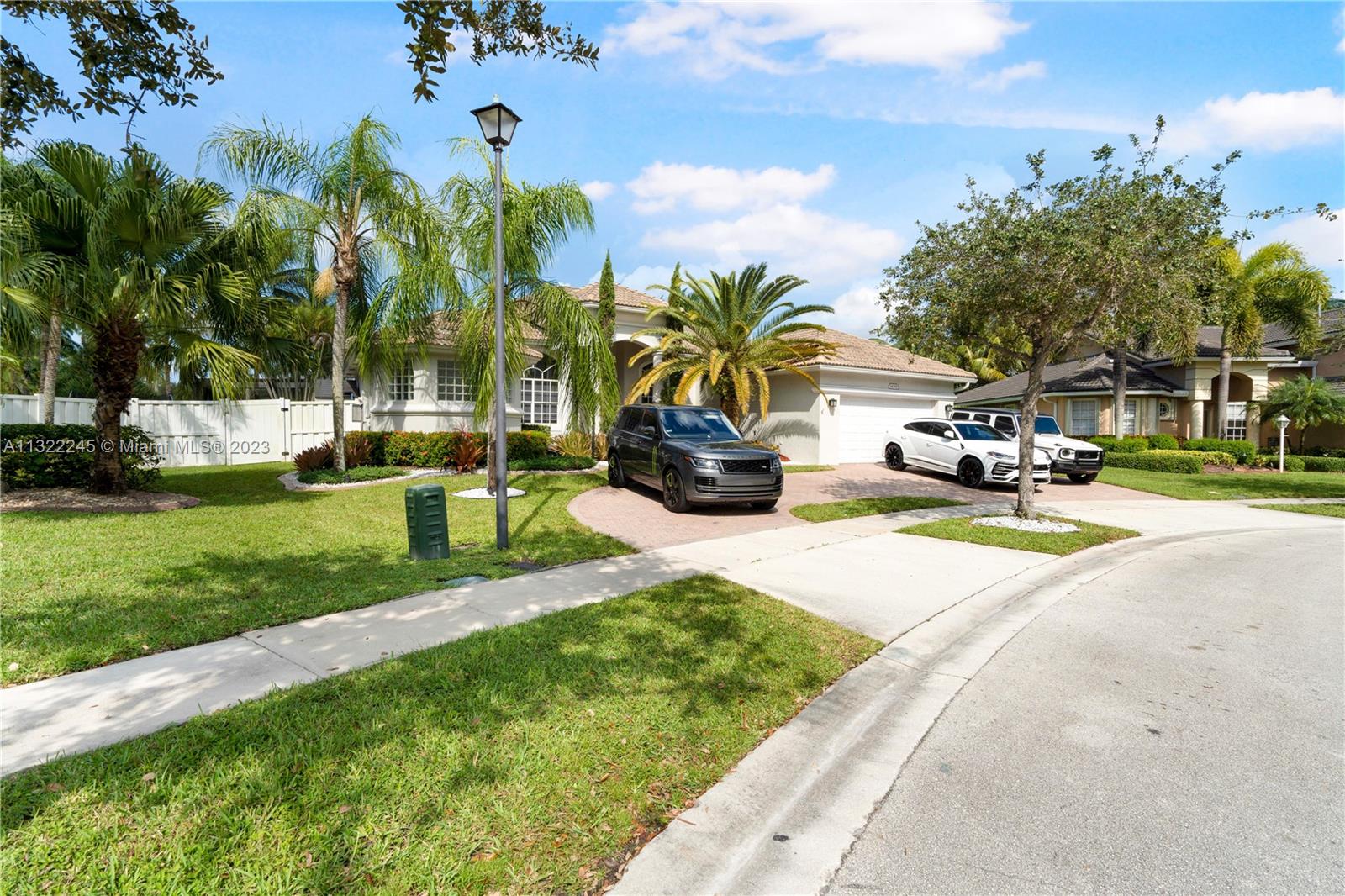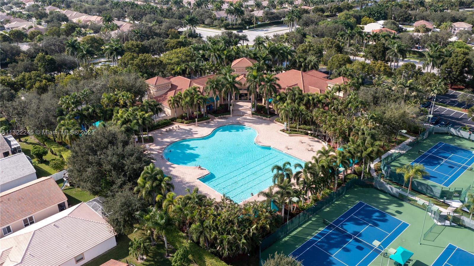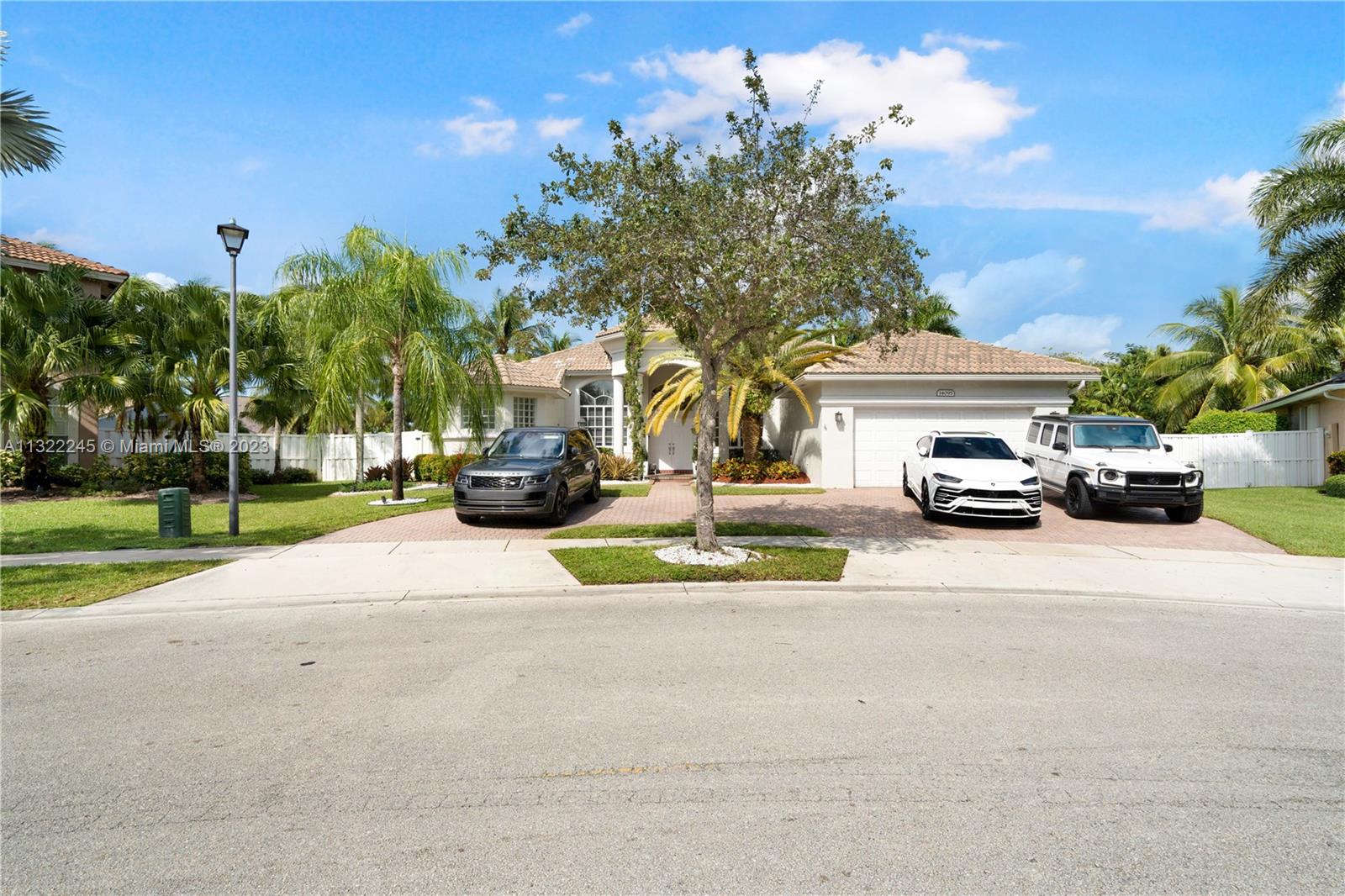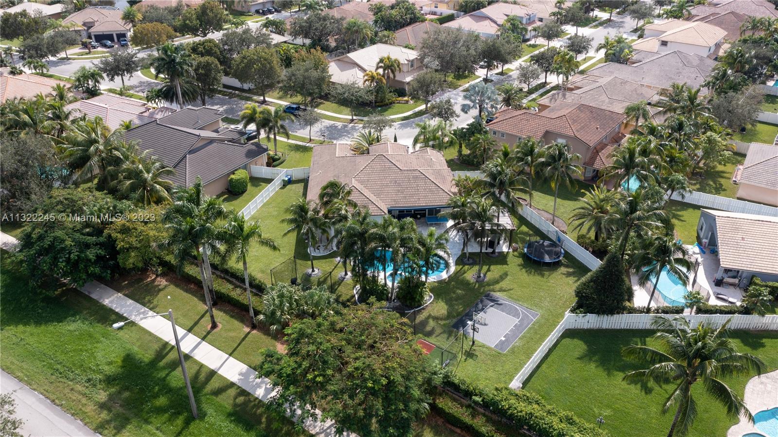 COMPLETELY RENOVATED MONTEREY MODEL, DESIRABLE 3 WAY SPLIT FLOOR PLAN, 4 BEDROOMS+DEN (THEATER ROOM) PRIVATE MAN CAVE ROOM, 3 UPDATED BATHS, ELEGANT MASTER SUITE W/UPGRADED BATHROOM 2021 AND CALIFORNIA CLOSETS, GRANITE KITCHEN W/SS APPLIANCES, WOOD CABINETS, MARBLE FLOORS ON MAIN AREAS LAMINATED WOOD FLOORS ON BEDROOMS, 2 AC UNITS 2018,ACCORDION SHUTTERS, CONCRETE LANDSCAPE BORDERS, EXTERIOR LIGHTING WITH BEAUTIFUL POOL, BACKYARD WITH SPECTACULAR PARADISE PAVERED PATIO WITH LARGE COVERED PORCH AND LUSH TROPICAL LANDSCAPING, SUMMER KITCHEN, HALF BASKETBALL COURT, BATTING CAGE PACKAGE. PREMIUM SIZE LOT OVER 18,000 SF CORNER WITH CIRCULAR DRIVEWAY. GATED COMMUNITY RESORT STYLE CLUB HOUSE, HEATED POOL, SPA, FITNES CENTER, TENNIS AND BASKETBALL COURT.HOA INCLUDES CABLE-HIGH SPEED INTERNET ALARM