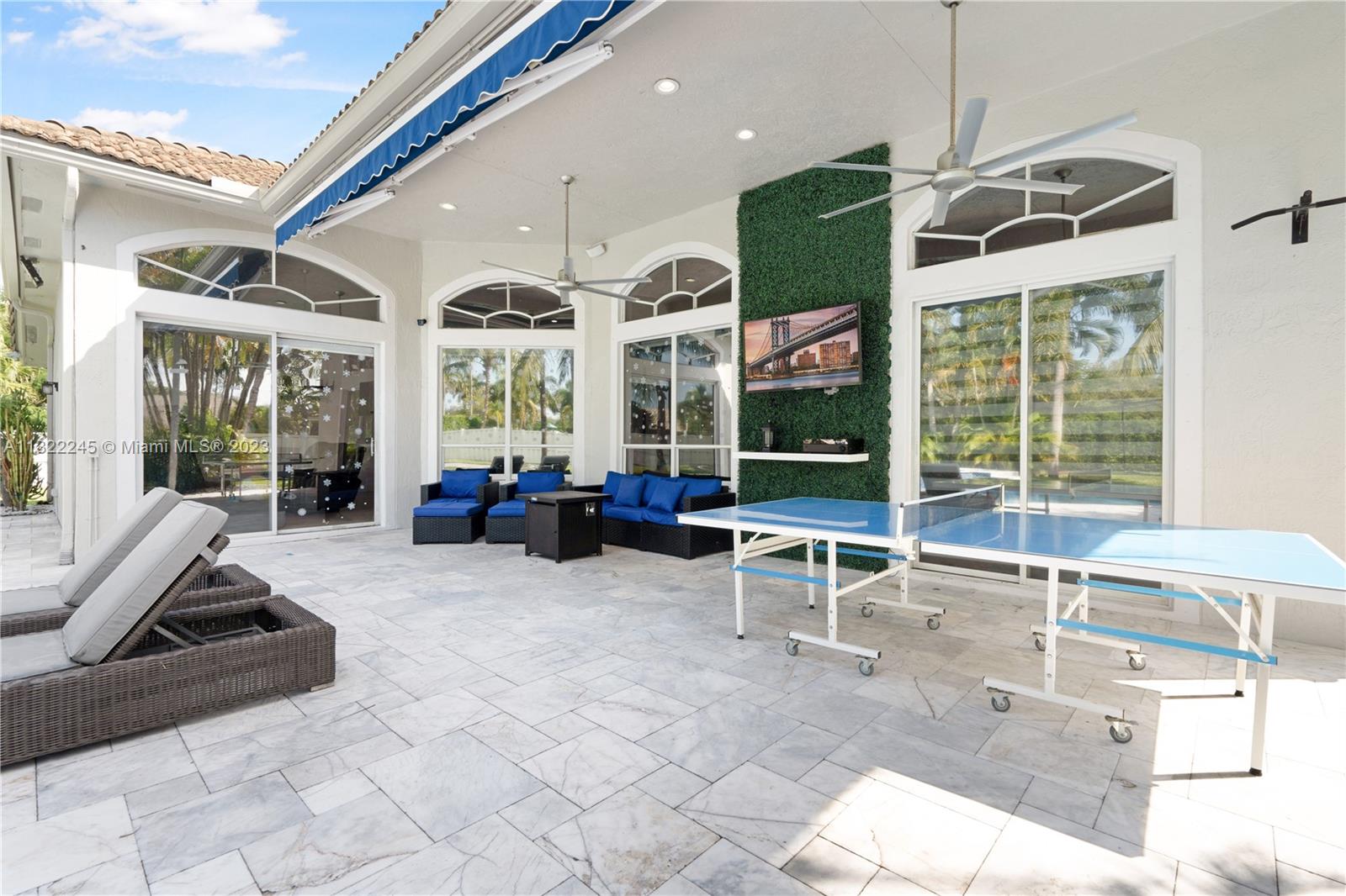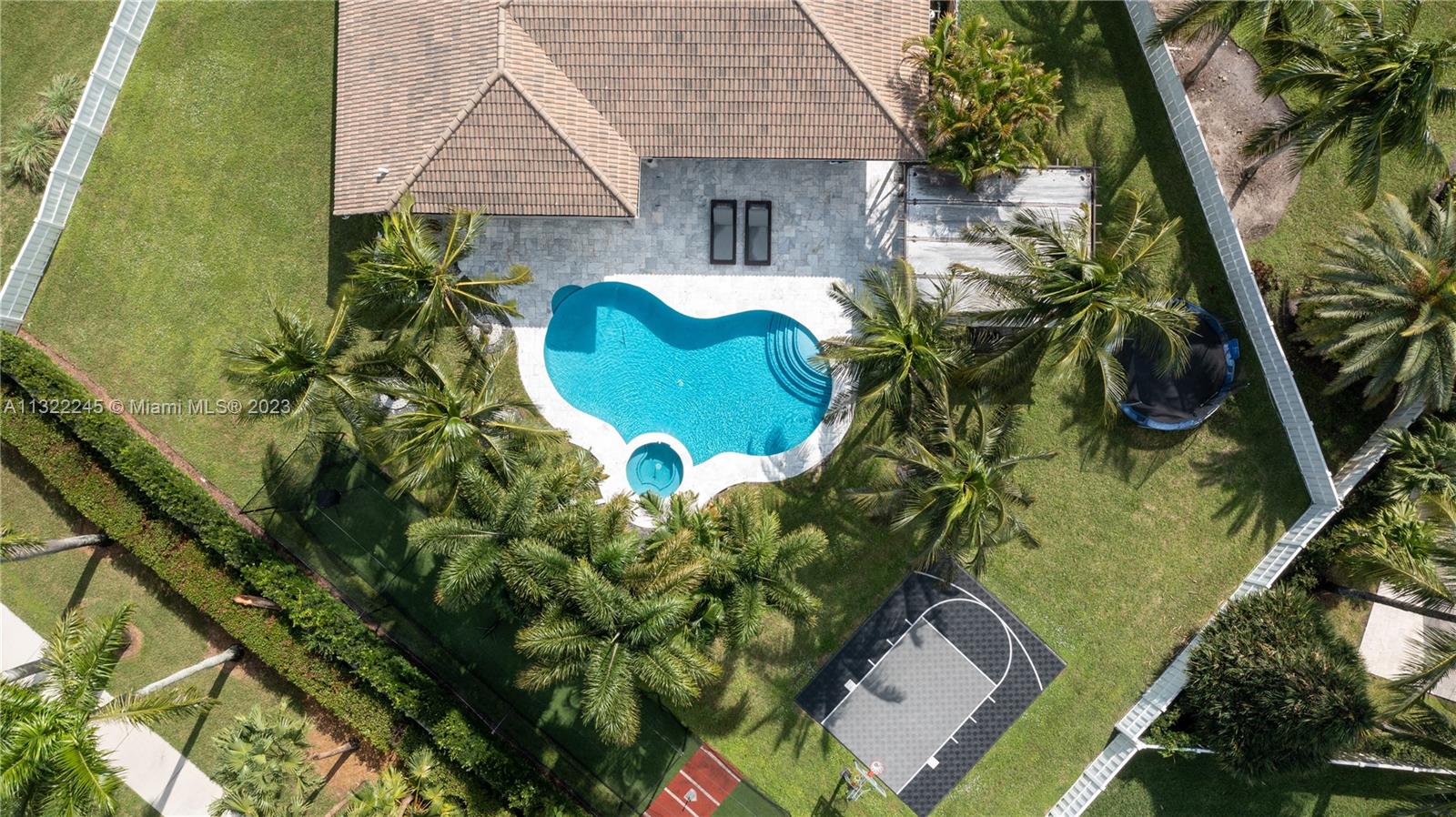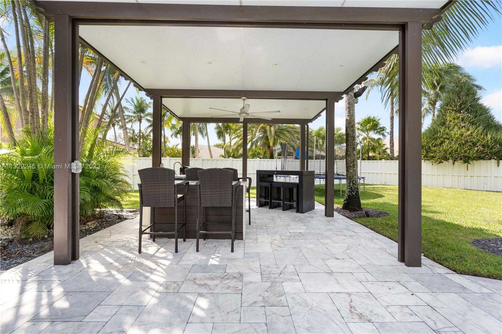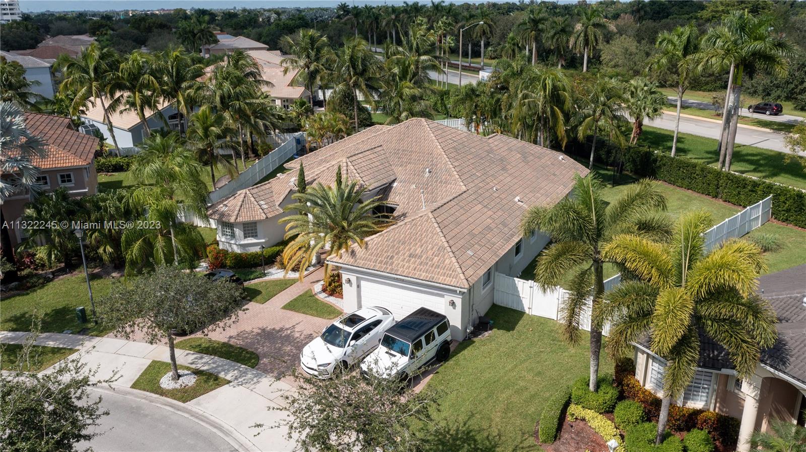COMPLETELY RENOVATED MONTEREY MODEL, DESIRABLE 3 WAY SPLIT FLOOR PLAN, 4 BEDROOMS+DEN (THEATER ROOM) PRIVATE MAN CAVE ROOM, 3 UPDATED BATHS, ELEGANT MASTER SUITE W/UPGRADED BATHROOM 2021 AND CALIFORNIA CLOSETS, GRANITE KITCHEN W/SS APPLIANCES, WOOD CABINETS, MARBLE FLOORS ON MAIN AREAS LAMINATED WOOD FLOORS ON BEDROOMS, 2 AC UNITS 2018,ACCORDION SHUTTERS, CONCRETE LANDSCAPE BORDERS, EXTERIOR LIGHTING WITH BEAUTIFUL POOL, BACKYARD WITH SPECTACULAR PARADISE PAVERED PATIO WITH LARGE COVERED PORCH AND LUSH TROPICAL LANDSCAPING, SUMMER KITCHEN, HALF BASKETBALL COURT, BATTING CAGE PACKAGE. PREMIUM SIZE LOT OVER 18,000 SF CORNER WITH CIRCULAR DRIVEWAY. GATED COMMUNITY RESORT STYLE CLUB HOUSE, HEATED POOL, SPA, FITNES CENTER, TENNIS AND BASKETBALL COURT.HOA INCLUDES CABLE-HIGH SPEED INTERNET ALARM
