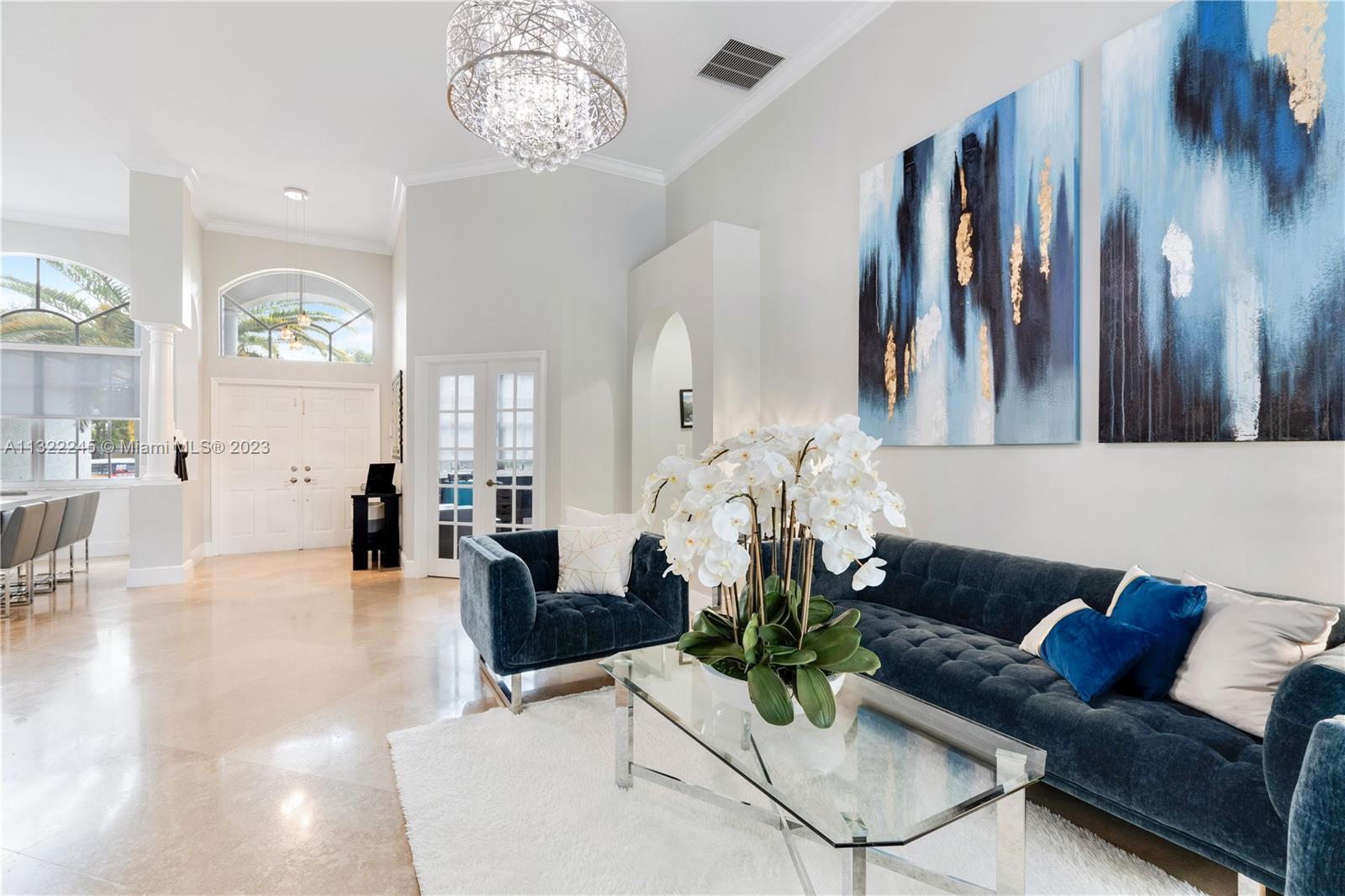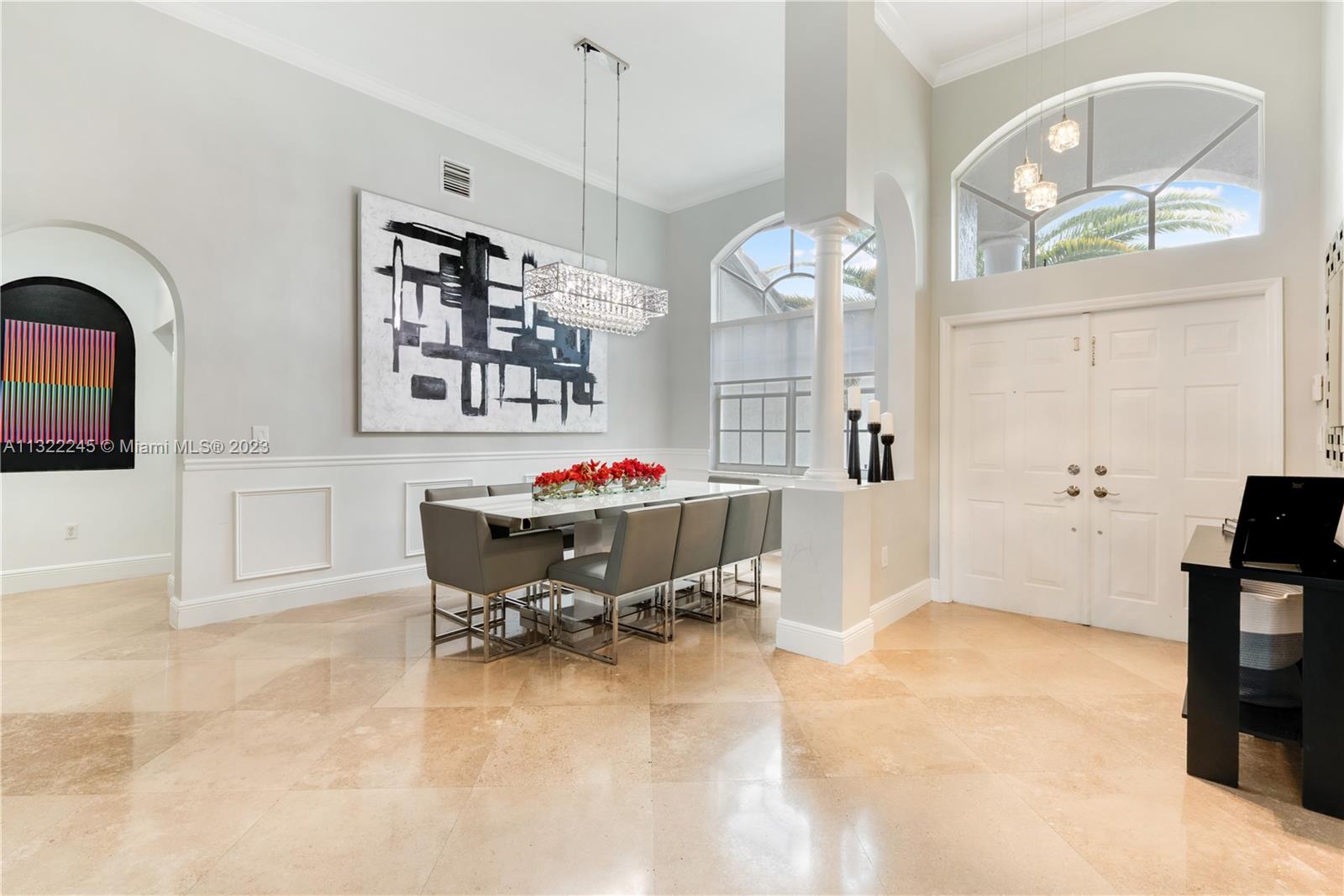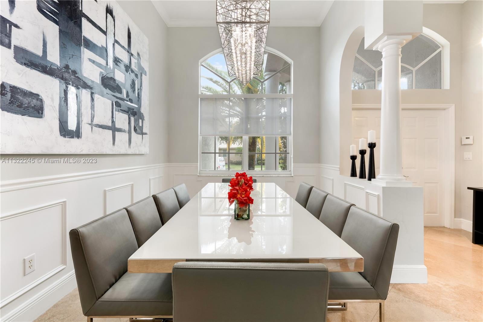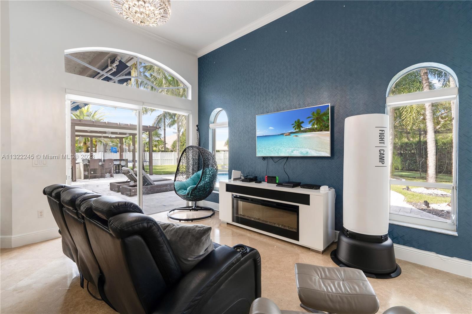 COMPLETELY RENOVATED MONTEREY MODEL, DESIRABLE 3 WAY SPLIT FLOOR PLAN, 4 BEDROOMS+DEN (THEATER ROOM) PRIVATE MAN CAVE ROOM, 3 UPDATED BATHS, ELEGANT MASTER SUITE W/UPGRADED BATHROOM 2021 AND CALIFORNIA CLOSETS, GRANITE KITCHEN W/SS APPLIANCES, WOOD CABINETS, MARBLE FLOORS ON MAIN AREAS LAMINATED WOOD FLOORS ON BEDROOMS, 2 AC UNITS 2018,ACCORDION SHUTTERS, CONCRETE LANDSCAPE BORDERS, EXTERIOR LIGHTING WITH BEAUTIFUL POOL, BACKYARD WITH SPECTACULAR PARADISE PAVERED PATIO WITH LARGE COVERED PORCH AND LUSH TROPICAL LANDSCAPING, SUMMER KITCHEN, HALF BASKETBALL COURT, BATTING CAGE PACKAGE. PREMIUM SIZE LOT OVER 18,000 SF CORNER WITH CIRCULAR DRIVEWAY. GATED COMMUNITY RESORT STYLE CLUB HOUSE, HEATED POOL, SPA, FITNES CENTER, TENNIS AND BASKETBALL COURT.HOA INCLUDES CABLE-HIGH SPEED INTERNET ALARM