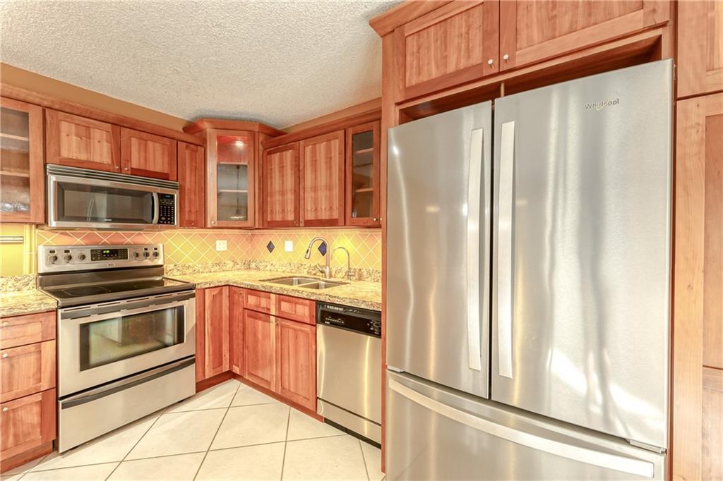 GOLF COURSE FRONT Facing Townhouse! LARGEST Model! Enjoy Golf Course views from the comfort of your screen-enclosed Patio. Updated Kitchen w/custom wood cabinetry & rolling shelves, extended snack bar, granite tops, S.S. appl, stove w/conv oven. Tile on main level; extended duct work for added ventilation. Bamboo Wood Flooring on the stairway, landing & primary bdrm. Bdrm w/a Direct Facing view of the Golf Course. Accordion shutters & some Impact windows. Bathrooms have been renovated. Located in an “A” school-district!! Fees incl membership to PINE ISLAND RIDGE COUNTRY CLUB! Offering reduced GOLF fees, pro-shop, swimming POOL, TENNIS, EXERCISE rm, BILLIARDS, BBQ area, entertainment, BAR & grill and annual food credit for the restaurants! 2018 ROOF!!