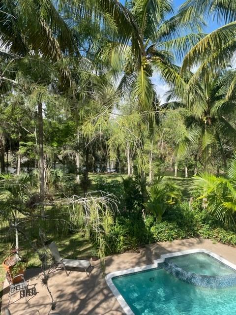 Owner will help with closing costs. Beautiful two story estate home on a 43,601 SQFT Cul de sac water lot in a gated community famous for all the Tall Pines. Bright foyer entrance to formal dining room and formal living room with French doors to the pool. Eat-in kitchen recently remodeled, so amazing for entertaining. Separate family room with French doors to screened patio. Even a fireplace. Cabana half bath off family room. Outside tropical landscaping. Relax and enjoy fun times under the Pergola, spiral stairs lead to upstairs master balcony. Two bedrooms (one being used as a den but can easily be a bedroom) and full bath are located on the first floor. Master bedroom and Master bath upstairs along with 2 more bedrooms that share a bathroom. Laundry room upstairs.