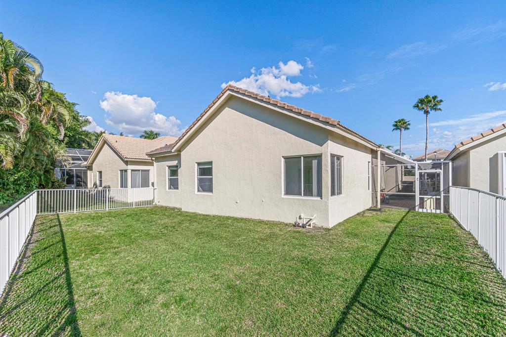 Rarely Available, this 4 bedroom, 3 bathroom courtyard style property is located within an intimate gated community of just 27 homes. The open floor plan features walls of glass that overlook the private courtyard and pool. A large Master Suite boasts his & hers walk in closets, his & hers vanities, & a large shower with separate tub. There is a separate guest house suitable as an office or maid/mother in law suite & the backyard has been fenced for added privacy. HVAC & Water Heater both 2021, Low HOA & A Rated Schools! OPTIONAL Membership to Woodfield CC in available! House needs Updating and TLC! Excellent Value for Central Boca! Re-done comps are well north of 1.1m in area