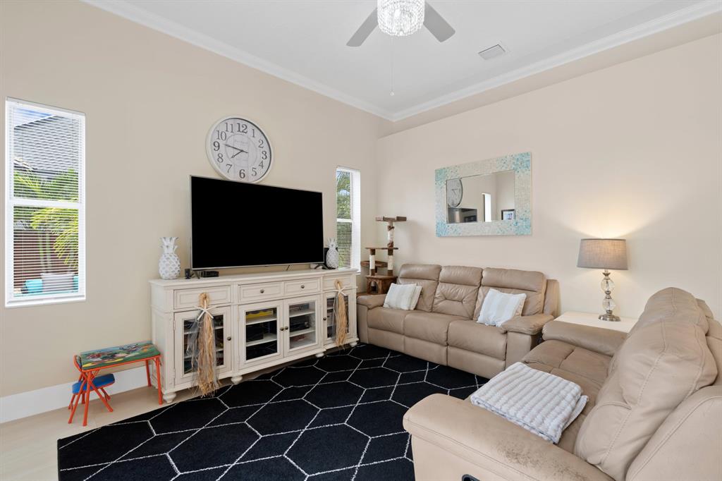 This recently renovated 4 bedroom, 3 bathroom home situated in the coveted Frenchmen's Landing community is a must-see! Upon entrance, you're greeted with high ceilings throughout the generously open floor plan, complete with a formal living room, dining room & family room. The central kitchen allows for entertaining, featuring a pantry & a breakfast nook overlooking the pool. The primary bedroom boasts walk-in closets, an exquisitely renovated primary bathroom & sliding glass doors leading out to the patio. 2 of the 3 additional bedrooms feature ample closet space & share close proximity to a full bathroom. The remaining bedroom occupies its own area of the home, close to another full bathroom making it perfect for in-laws or guests. The backyard has it all. Covered patio, swimming