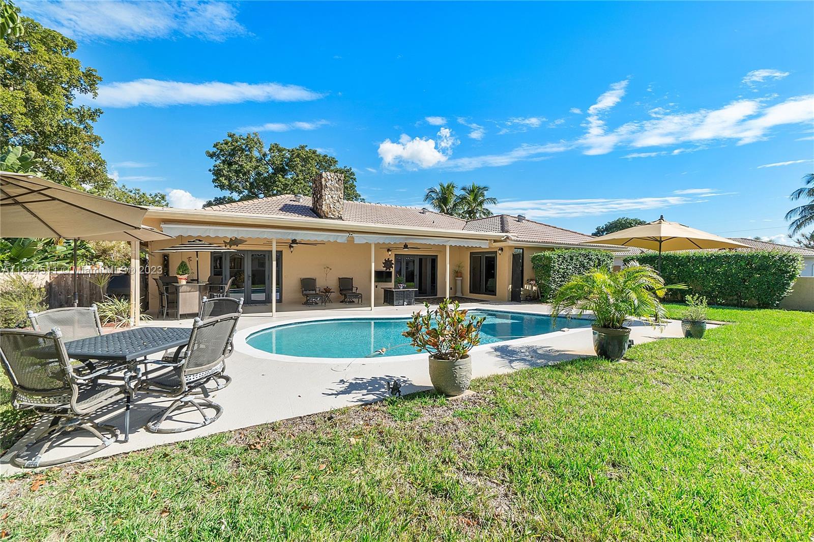 AT LAST!!The home of your dreams is awaiting new owners. This move-in ready home is located in the highly desirable community of Oak Wood on .3 acre w/no HOA fees. If PLENTY of space is what you desire, then look no further. This stately,3 bedroom plus office or optional 4th bedroom 3 bath with pool has everything you desire.Tree lined street,lush landscaping,corner lot situated in a cul-de-sac.Upgrades include new porcelain flooring,lighting and fresh paint. This home has hurricane impact windows and doors. The newly updated kitchen features plenty of storage and counter space, a huge center island, granite countertops & white cabinetry.Double sided fireplace. Large,covered lanai area overlooking,saltwater pool surrounded by privacy wall.This property is immaculate & ready for new owners.