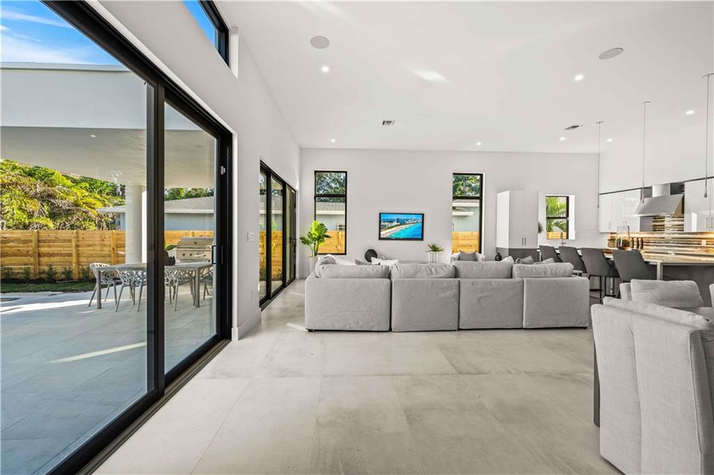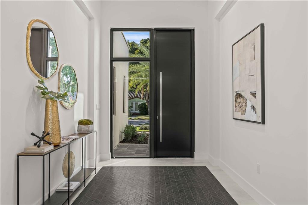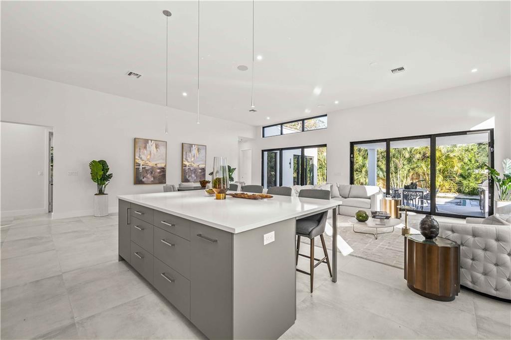 Stunning open spaces greet you as you enter this brand new home through a wide foyer. High ceilings and walls of glass create light-filled rooms. The (apx) 28x29 foot great room has two sets of sliders to the sunny pool area and roofed loggia and summer kitchen. The primary suite with two walls of glass seems to float over the pool. A butler pantry adjacent to the kitchen has a prep/serving counter and additional storage. Next to that is a generously sized shelved pantry closet. The laundry has full-size stack appliances and a wash sink plus additional storage. Floors are oversized porcelain squares. All rooms have recessed ceiling lighting. Property is SMART HOME ready. Rear yard is fenced and gated for privacy with rear alley access for flexibility.