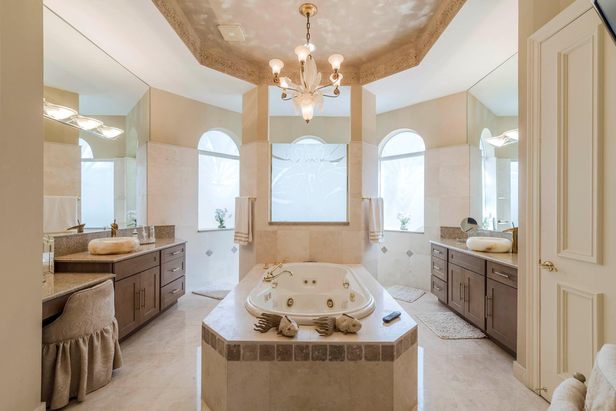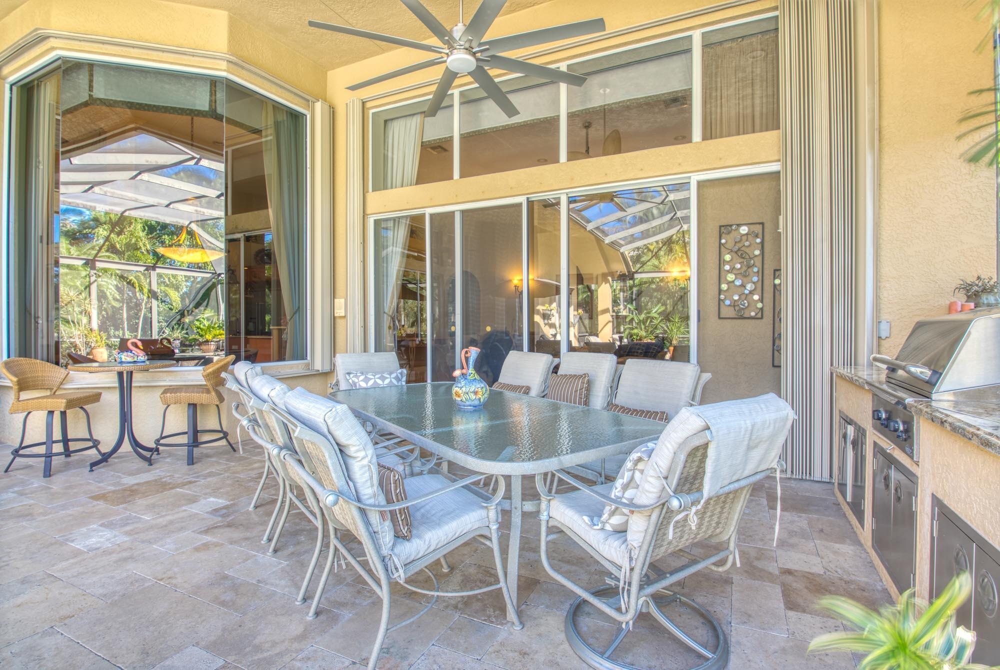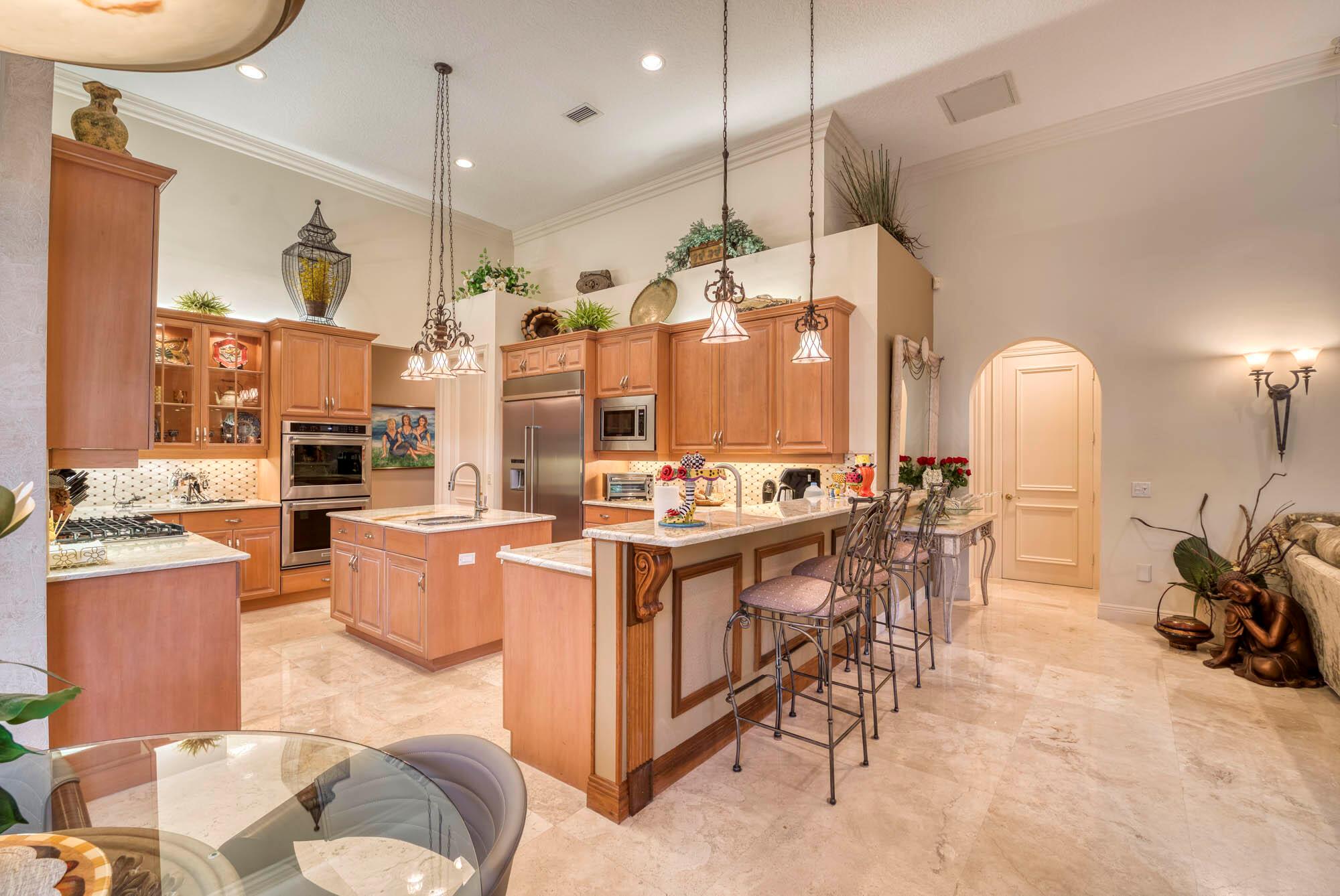 Get your contract in before April 1, 2024 and settle before June 14, 2024 and lock into the old pricing! IMMEDIATE PREMIERE MEMBERSHIP AVAILABLE!!! NEW ROOF!!! Welcome to your dream home! This stunning 4 bedroom, 4.5 bath plus den/office with custom built-ins property boasts luxury finishes throughout. As soon as you enter, you'll be wowed by the extensive coffered ceilings, oversized crown molding, 24x24 Saturnia marble tile flooring with inlays and other elegant touches. The open floor plan is perfect for entertaining, with a spacious living room that flows seamlessly into a large family room which overlooks the oversized pool area. The kitchen is a chef's dream, with plenty of counter space and storage, gas cooktop, as well as, top-of-the-line appliances. The island provides additional