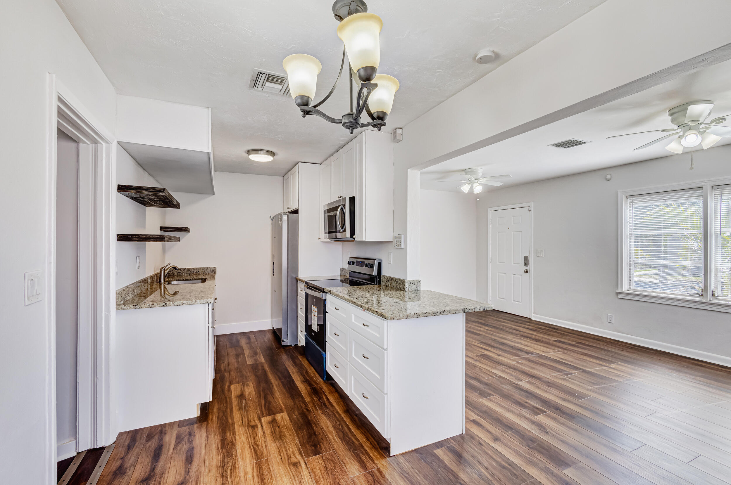 Charming home in the historic district of Northwood Hills. Separate entrance to master bedroom/bathroom from backyard. Split bedrooms with large closets. Large fenced in yard with long driveway. Shed offers covered brand new washer/dryer. Brand new appliances, shaker cabinets with granite countertops in kitchen. Updated bathrooms, freshly painted interior. New luxury vinyl flooring throughout. New sod and landscaping. Room for a pool. Move in ready, or ready for an investor to rent.