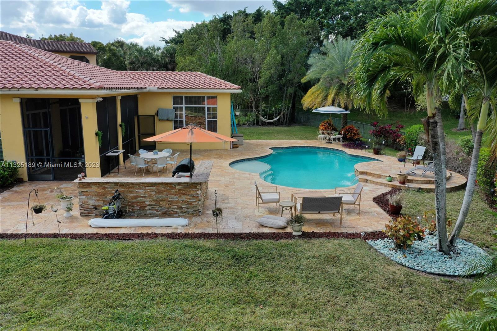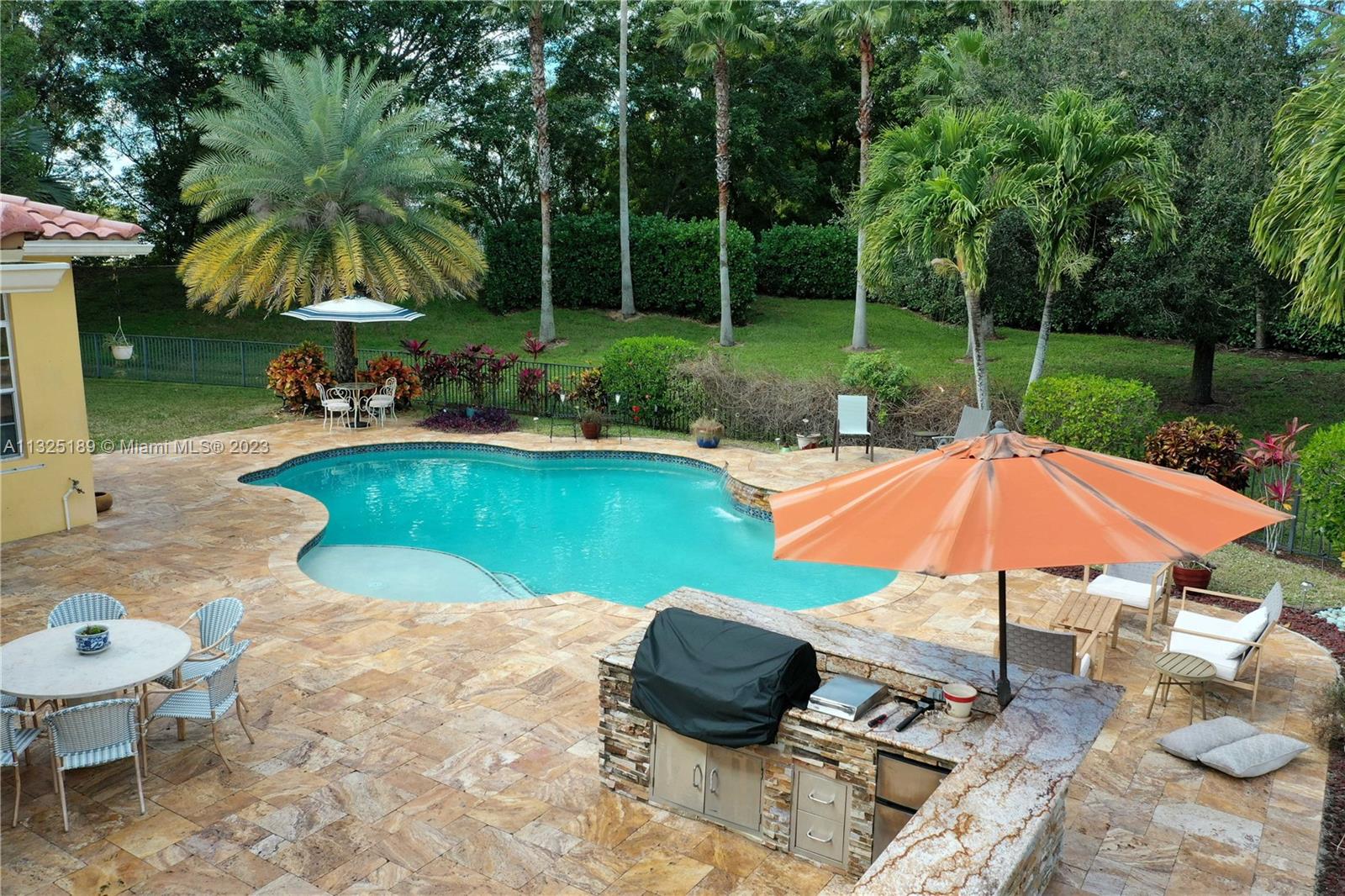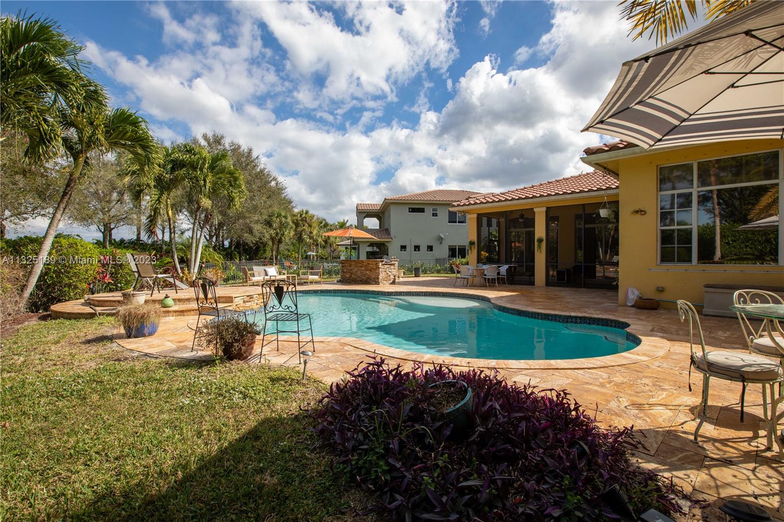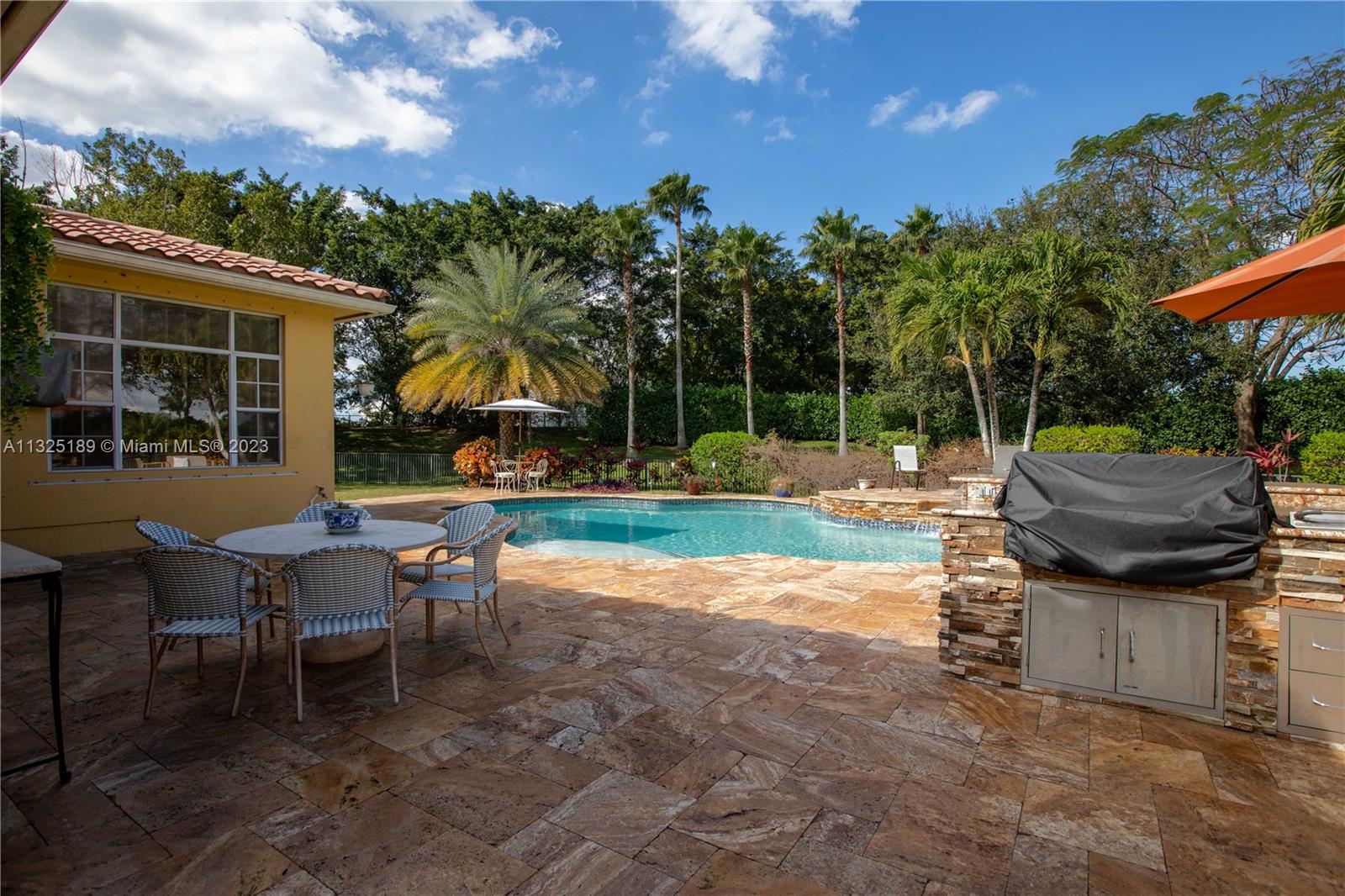 Enjoy Resort-Style Parkland Lifestyle! The house is sitting on a 13,900 SqFt lot. Outdoor oasis awaits you. One of the largest lots of the prestigious Heron Bay. This beautiful 1-story 4 bedroom/ 3 bath/ 2 car garage home feature an oversized fully fenced backyard, sparkling pool, Marble patio & BBQ area with summer kitchen. Open floor plan in the family and kitchen area, granite countertops, bran-new state of the art SS appliances. Italian tile flooring. Separated dining room can be converted in an additional bedroom or office. Laundry room with sink. A+ rated schools. Two Clubhouses with gymnasiums. kiddies waterpark, Basketball, 10 Tennis courts, party rooms, heated community pools, short distance to parks & shopping. 24 hr gated community with three guarded gates.