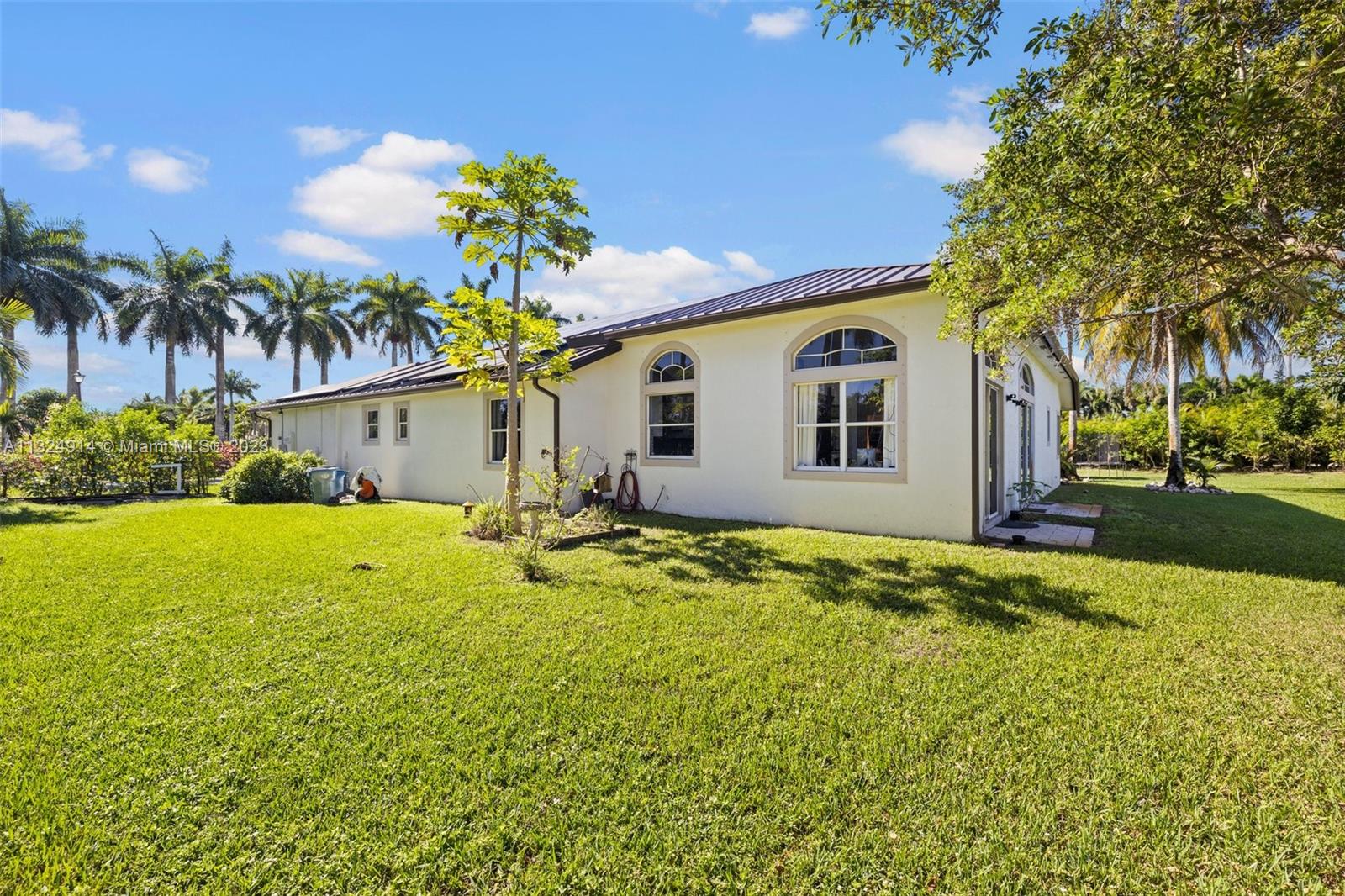 Welcome to your Weston oasis! This 4 bedroom 3 bath home is located with easy access to major roads and great schools. Enjoy the beautiful Saddle Club Estates neighborhood and low HOA fees. This courtyard style home features a large patio around the pool that is perfectly shaded by palm trees. The home features a guest suite with private entrance next to the pool. The primary bedroom across the courtyard features a sliding door to enjoy the pool views. Great schools. Enjoy 12 foot ceilings in the main house house with wonderful natural light throughout the home. A new standing seam metal roof installed in 2021. This energy efficient home features 14.5kW solar panel system, LED lights, smart controls, and a new efficient hybrid water heater.