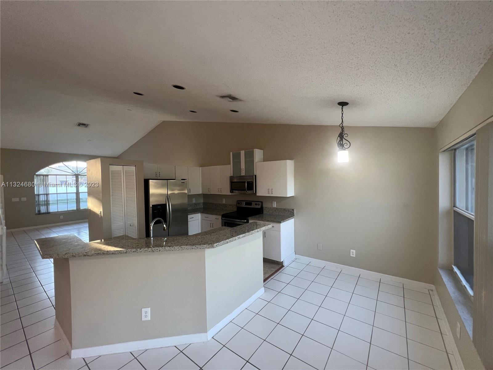 Your search is over! Offering the natural indoor-outdoor balance of a Mediterranean home, this 4-bedroom, 2.5-bathroom water front home is found in the Coconut Sound community. The surrounding area, Silver Lakes at Pembroke Pines, is prized by locals and by home buyers. The property features an open layout, neutral decor, and vaulted ceilings. Expansive kitchen brims with natural light, attractive peninsula layout, and granite counters. Beyond tranquility, the well-appointed main-floor master bedroom includes a walk-in closet, sitting space, and soaking bath with step-in shower. The other 3 bedrooms, are unique, quiet, and designed with plenty of wardrobe storage. Attached two-car garage. Enjoy entertaining in your screened in patio. You'll want your offer to be competitive and quick.