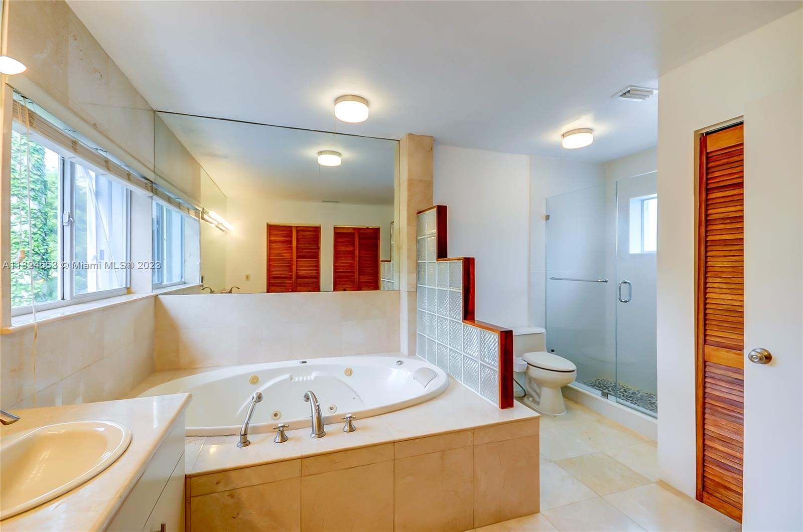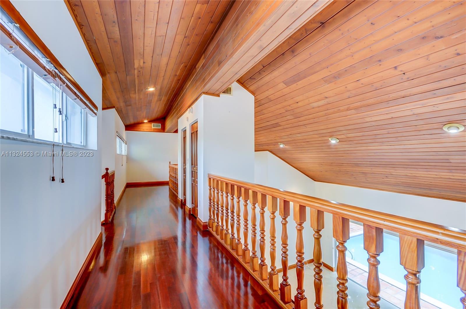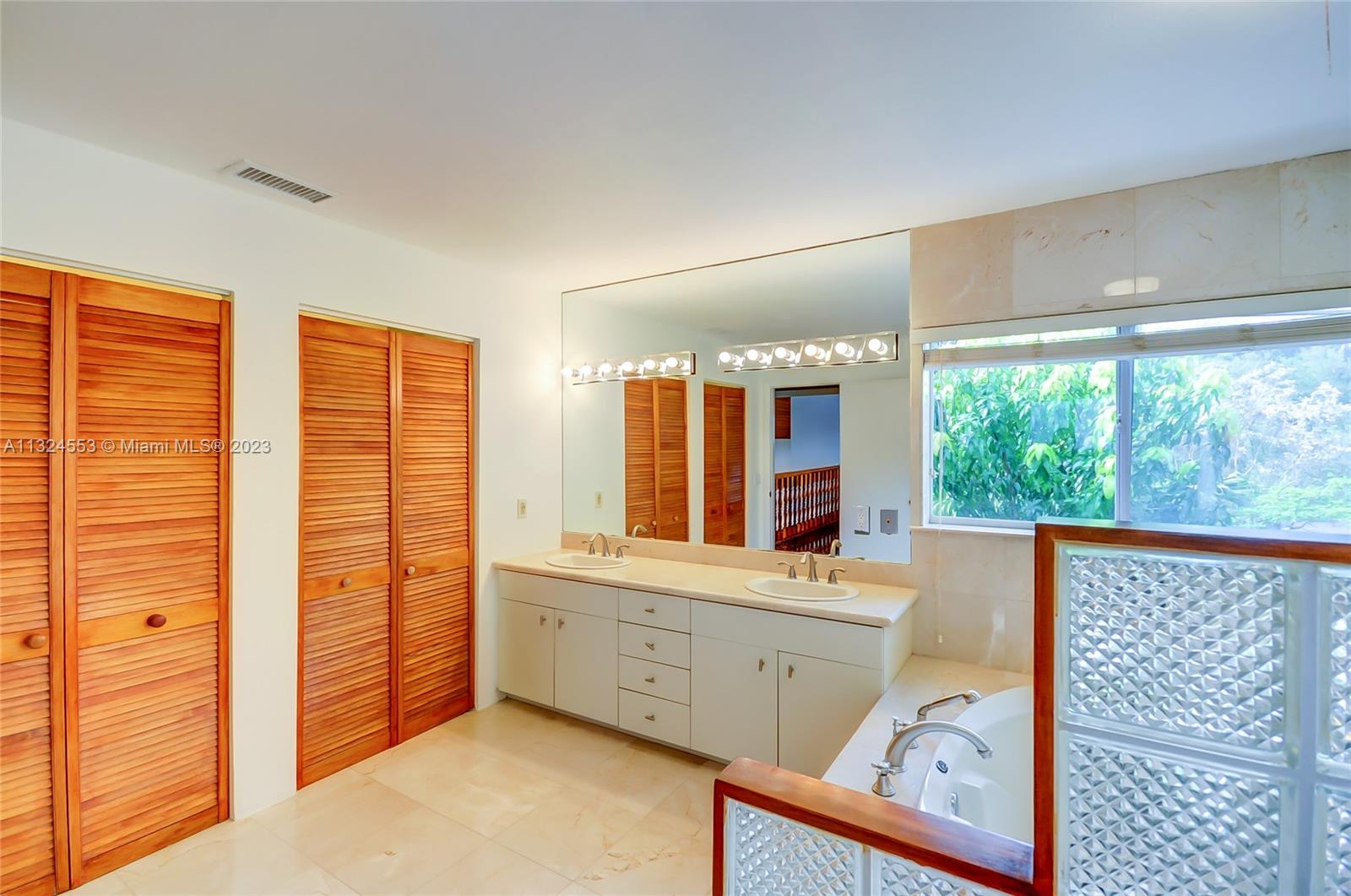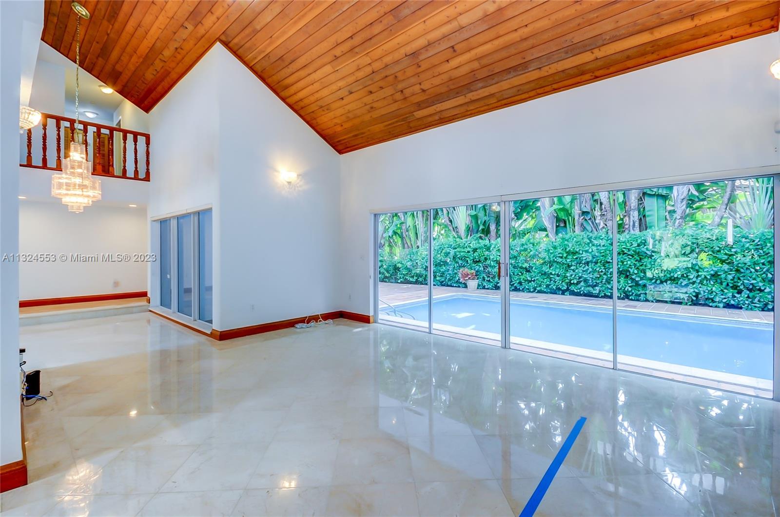 Contemporary 5 bedroom/ 4 bathroom home located on a quiet street in the gated community of Pinecrest by the Sea. Grand formal living with double height ceilings and inside balconies. Spacious kitchen with island, opening to the large family room which heads directly to the tropically landscaped patio and pool. Master's and other bedrooms located on the second floor, with an office room and cabana bathroom on the first. New roof and AC units. 2 car garage and circular driveway. Voluntary HOA.