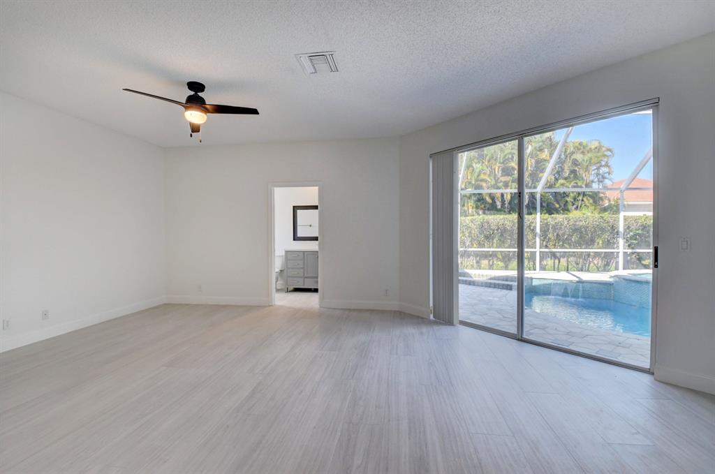 Welcome home to your 3 bedroom, 3.5 bathroom pool home located in the fabulous community of La Corniche at Boca Pointe. Home features a new entertainment center with recessed electric FIREPLACE and wall-mounted TV. NEW ROOF (2023). Splash around in your resurfaced and retiled pool. Primary bedroom features two full bathrooms and has been completely renovated. Guest bedrooms feature a renovated Jack/Jill bathroom, large walk in closets and new tile and paint. Bonus... a large DEN/OFFICE space or guest room. The home features a spacious floor plan for entertaining and is bright and light...ready for your personal touch. Love golf and tennis? The Club at Boca Pointe has many great options to live your best Florida life. Club membership is OPTIONAL.