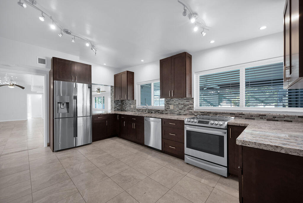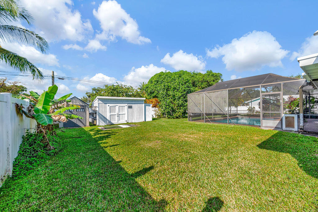 Midcentury modern 3/2 pool home in Plantation Gardens features gourmet kitchen w/ 42'' hardwood cabinets, granite counters, stainless appliances & two pass throughs for entertaining: first to the screened lanai featuring saltwater pool w/ all new Pentar pumps/filters, second to the living room for easy entertaining. Large impact windows provide panoramic views throughout the home & look into the 13,000sq' tropical backyard that has fruit trees & includes a 16' workshop, 8' tool shed & garden center w/ composter surrounded by vinyl privacy fence. The main bedroom has walk-in closet & a completely remodeled ensuite bath w/Kohler trim package & frameless doors, stunning tilework & built-in seating under rain shower. Systems: Rheem 3.5ton HVAC & 80gal. American H20 Heater & 18'' porcelain t..