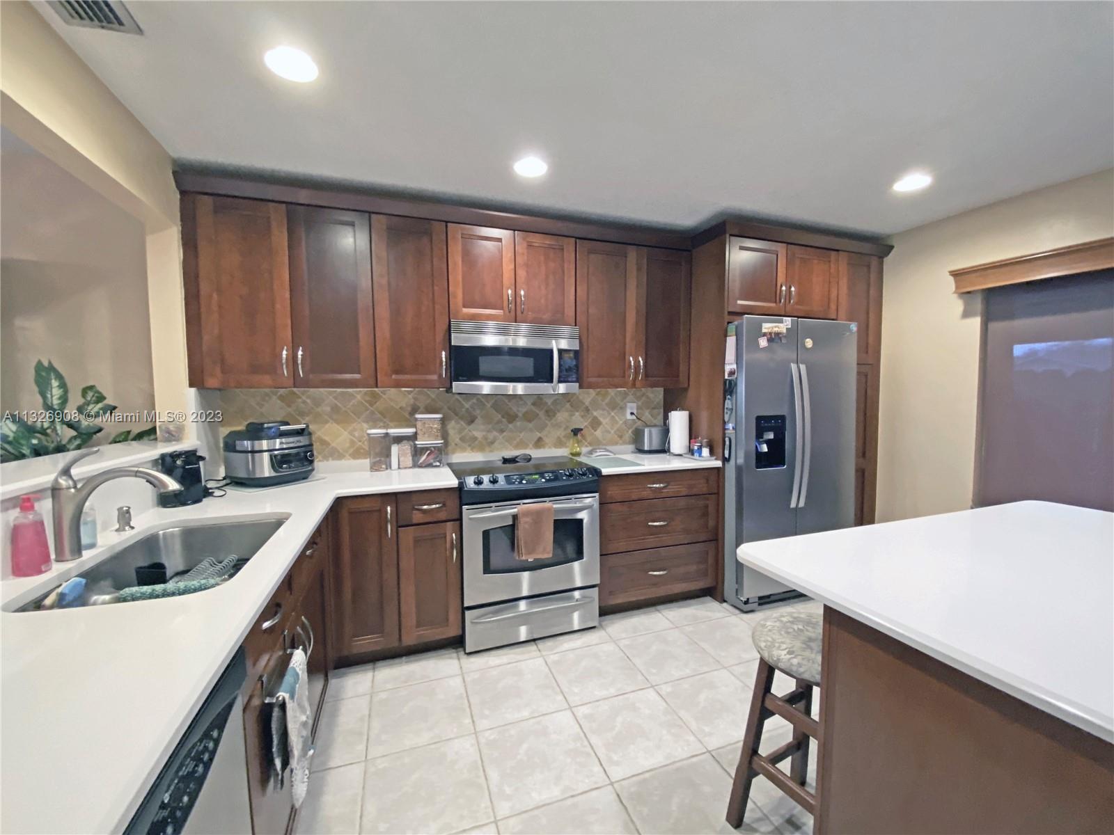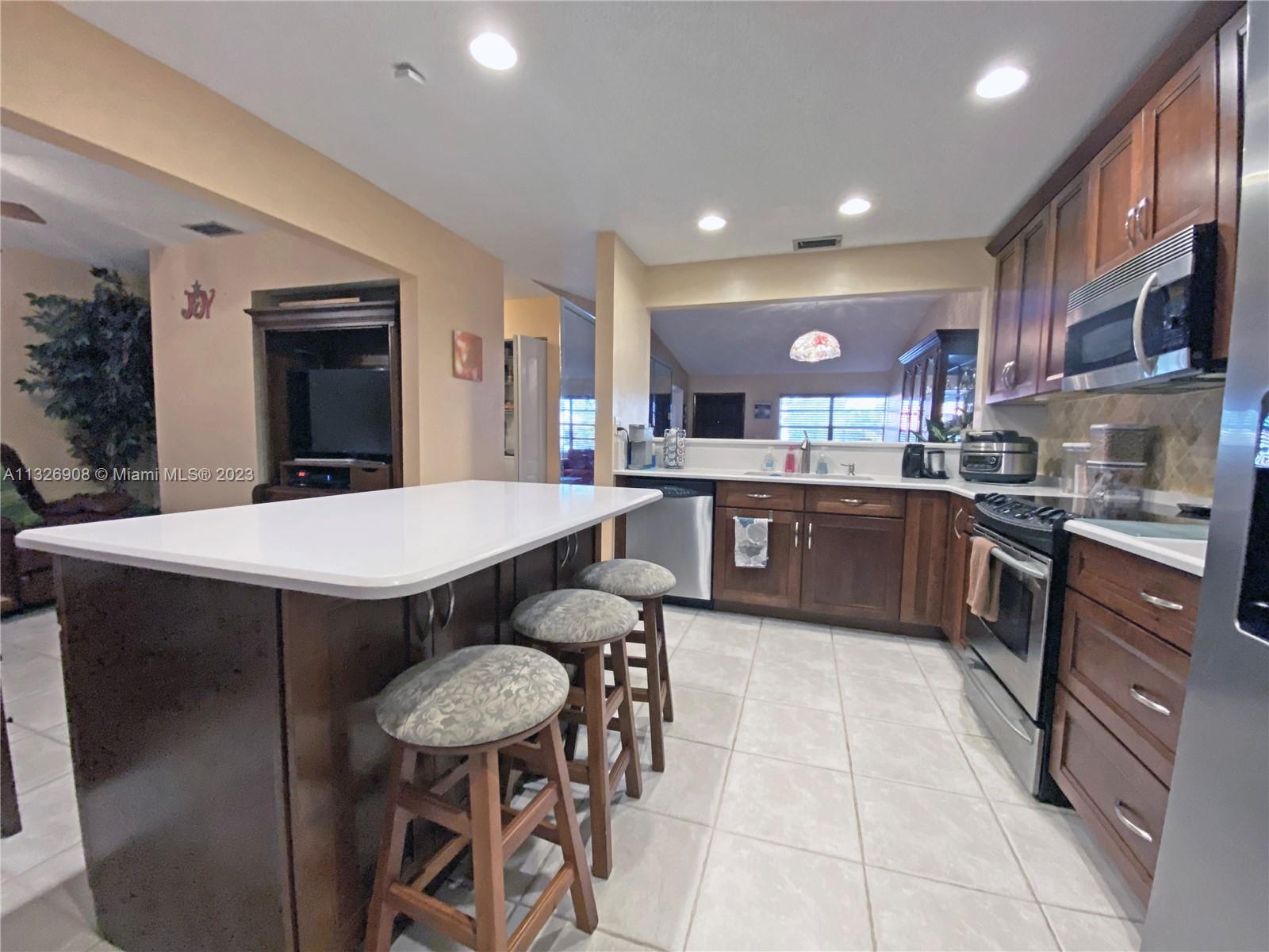 Beautiful 3 bedroom, 2 bath home on a corner lot in desirable Forest Lake, Cooper City. Enjoy the open and spacious design of this townhome featuring a modern kitchen, corian countertops, stainless steel appliances, large master ensuite, updated bathrooms and lots of closet space. Family room can serve as a 4th bedroom if needed. Kitchen and family rooms shows beautifully with tons of natural light entering from the patio area. Great private patio for entertaining or just relax outdoors. Back patio fence opens up to common area great for walking, no back neighbors, lots of privacy and parking. Pet friendly community, low HOA, no renting permitted. Conveniently located near great schools, parks, shopping, restaurants and transportation. Enjoy designing this home with your own style.