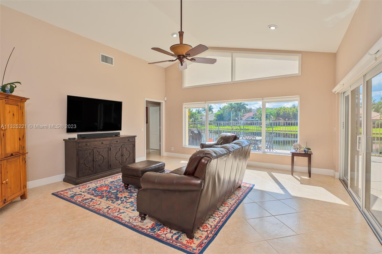 The PERFECT family home to make your own. This home boasts a 4 bedroom, triple split floor plan with 3 bathrooms, and a generous covered patio with extended lake views. Gorgeous sunsets over the pool. Newer roof, freshly painted walls inside/out and impact windows throughout. Located within the neighborhood of Tequesta, within walking distance to the park and 24hr manned gate. Perfect for todays buyers who are craving a perfect outdoor area for entertaining.