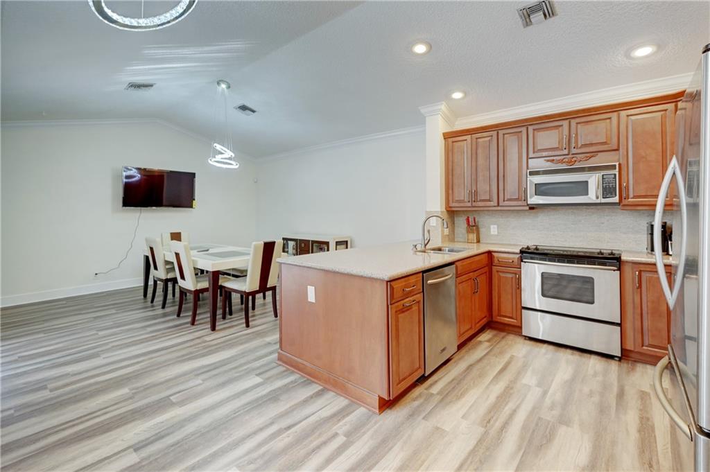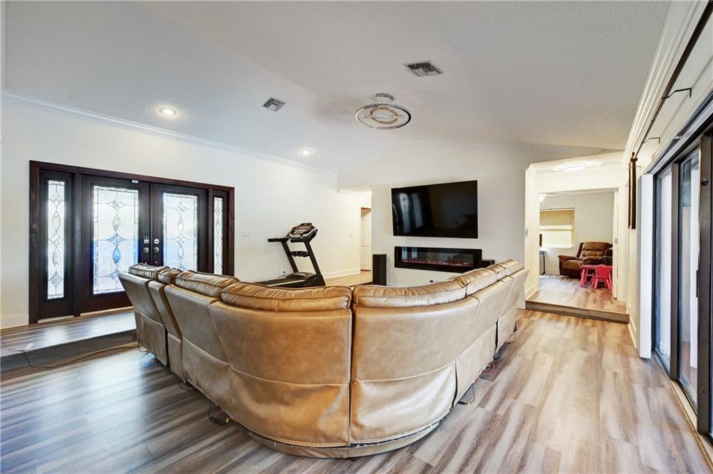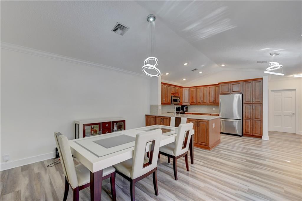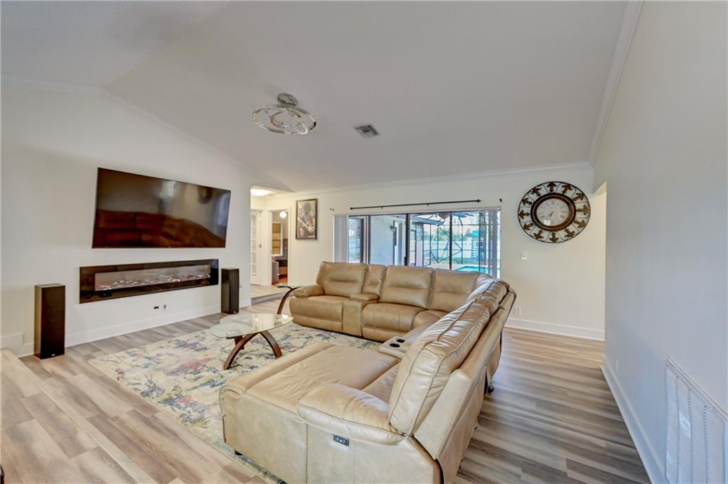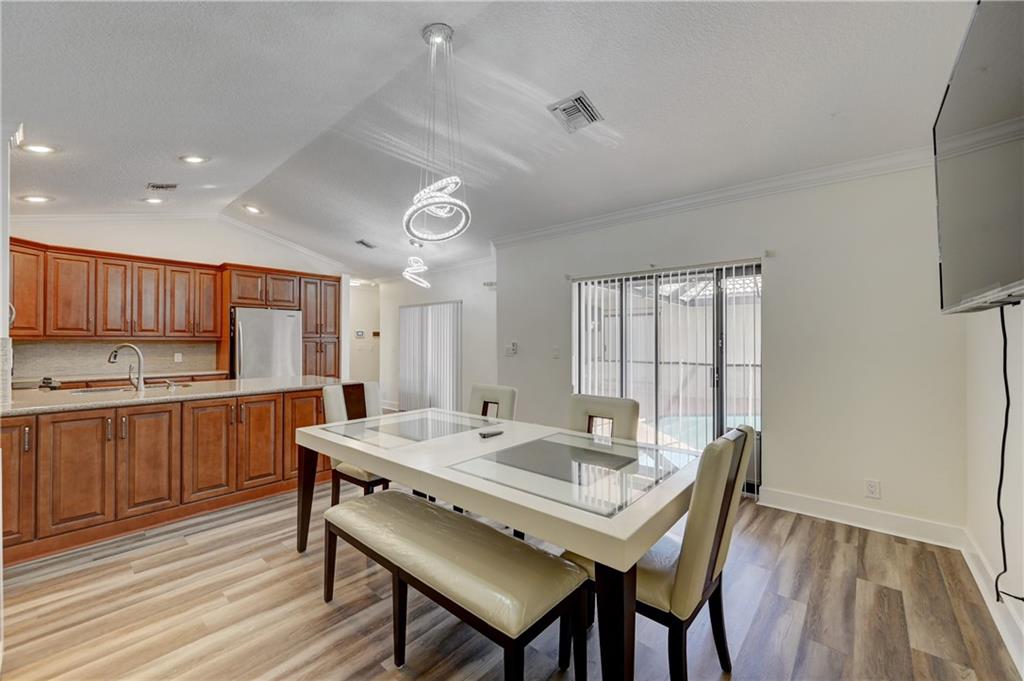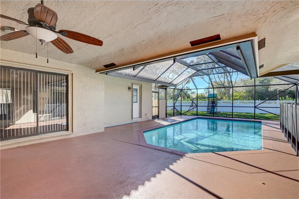 Exceptional Pool Home nestled on a large lot in the community of Pine Ridge. This model highlights an open floor plan showcasing 4BR's, a den & 2 BTH's. The beautifully remodeled kitchen features impeccable stone tops & SS appliances. Both BTHR's have been tastefully updated w/ new vanities, stunning tile, a glass enclosed shower & roman tub. The home is accented with dazzling new lighting, new vinyl wood flooring, & crown molding. For peace of mind during storm season, the home has Accordion Shutters throughout. Enjoy privacy in the newly fenced backyard and take a dip in the screened in pool. Solar Panels installed to save on utilities, and a circular driveway large enough for all your vehicles.