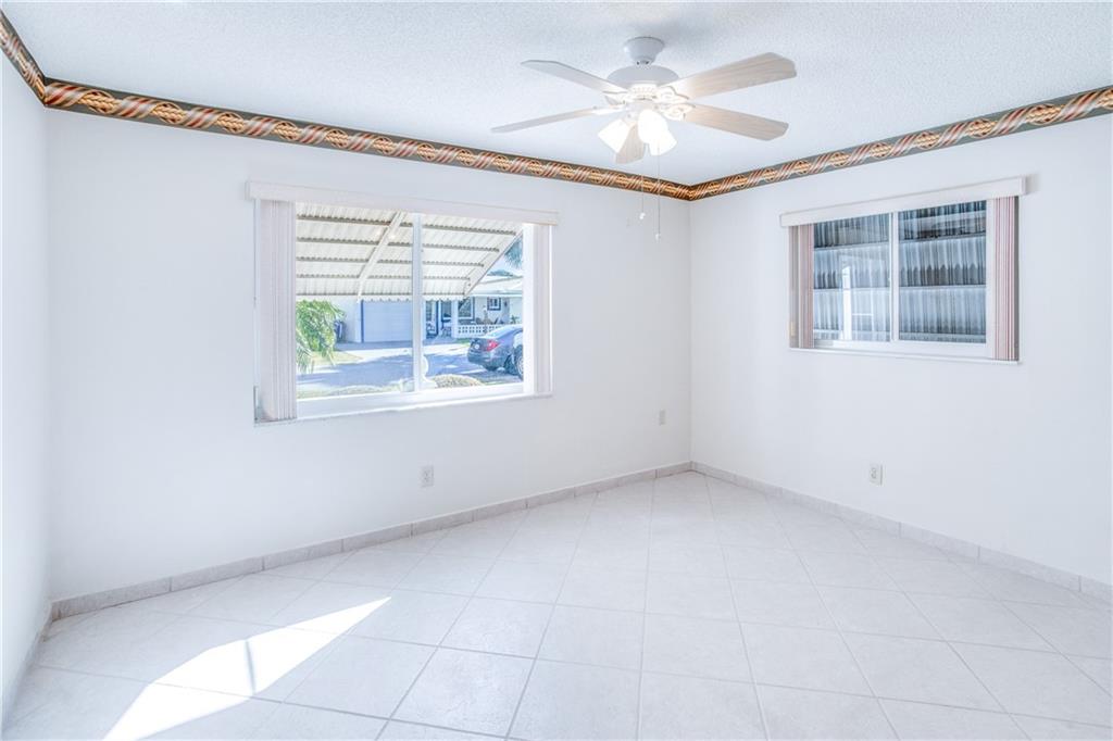 This is a must-see 2BR/2BA property in a 55+ community that has it all! With tile flooring throughout, newer windows with accordion shutters, a garage, and plenty of storage, this well-maintained home offers an open concept living space with lots of windows, a large kitchen, and a spacious, enclosed patio area in front and back. The laundry room features a washer/dryer and laundry sink for added convenience. The community has low HOA fees and maintenance includes water/sewer, grass, sprinklers, house painting, and roof coating. Enjoy two heated pools, a 9-hole par 3 golf course, 2 clubhouses, and a courtesy bus to local shopping/shuffleboard. The clubhouse has a library, office, and coffee area. The golf course is free to use for owners.