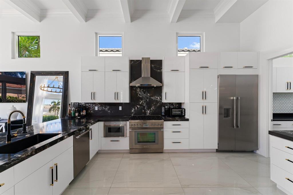 Step inside this stunning, bright, beautiful and completely renovated home that has been modernized with the finest quality materials. Custom cabinetry is appointed with unique hardware accents. Elegant light fixtures, freshly painted throughout, impact doors and windows, double island gourmet kitchen, ensuite baths, split bedrooms and an oversized main suite with a luxurious bath, and custom walk in closets. The private backyard oasis boasts a new resort style heated pool with spa, large patio deck and lush landscaping. This home offers an open floor plan with 4 bedrooms and a den and has fantastic entertaining space inside and out. No expense has been spared on this gorgeous home that has it all.