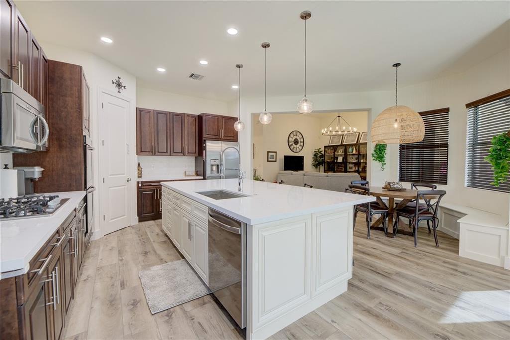 Gorgeous 4 bed 3 bath pool home in Osprey Lake neighborhood of Heron Bay. New wood look luxury vinyl floors throughout. Kitchen boasts new quartz counters, new large island providing ample storage, double wall oven & gas range. Home features impact windows & doors throughout, new pool with sun shelf & travertine pavers (2022), tankless water heater and fully fenced yard. All bathrooms beautifully remodeled with new shower tile and quartz countertops. Large primary bedroom with linen & walk-in closets. Smart home features include, pool, thermostats, sprinklers, door locks, ring door bell & nest cameras. Never go without power w/ Generac whole house generator (2021). Shelving in bedroom currently being used as a playroom converts to queen sized bed headboard. Resort style amenities, low HOA