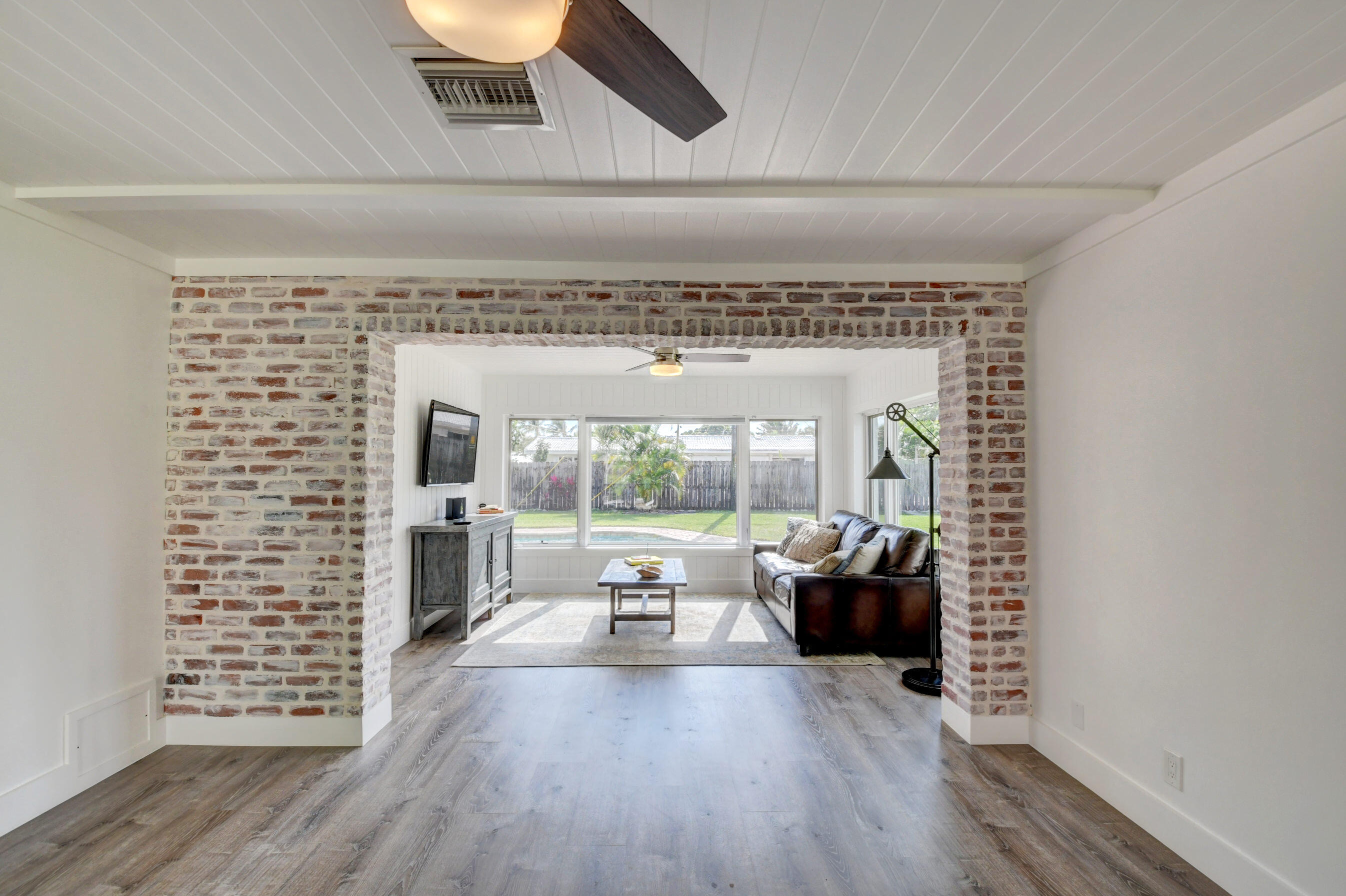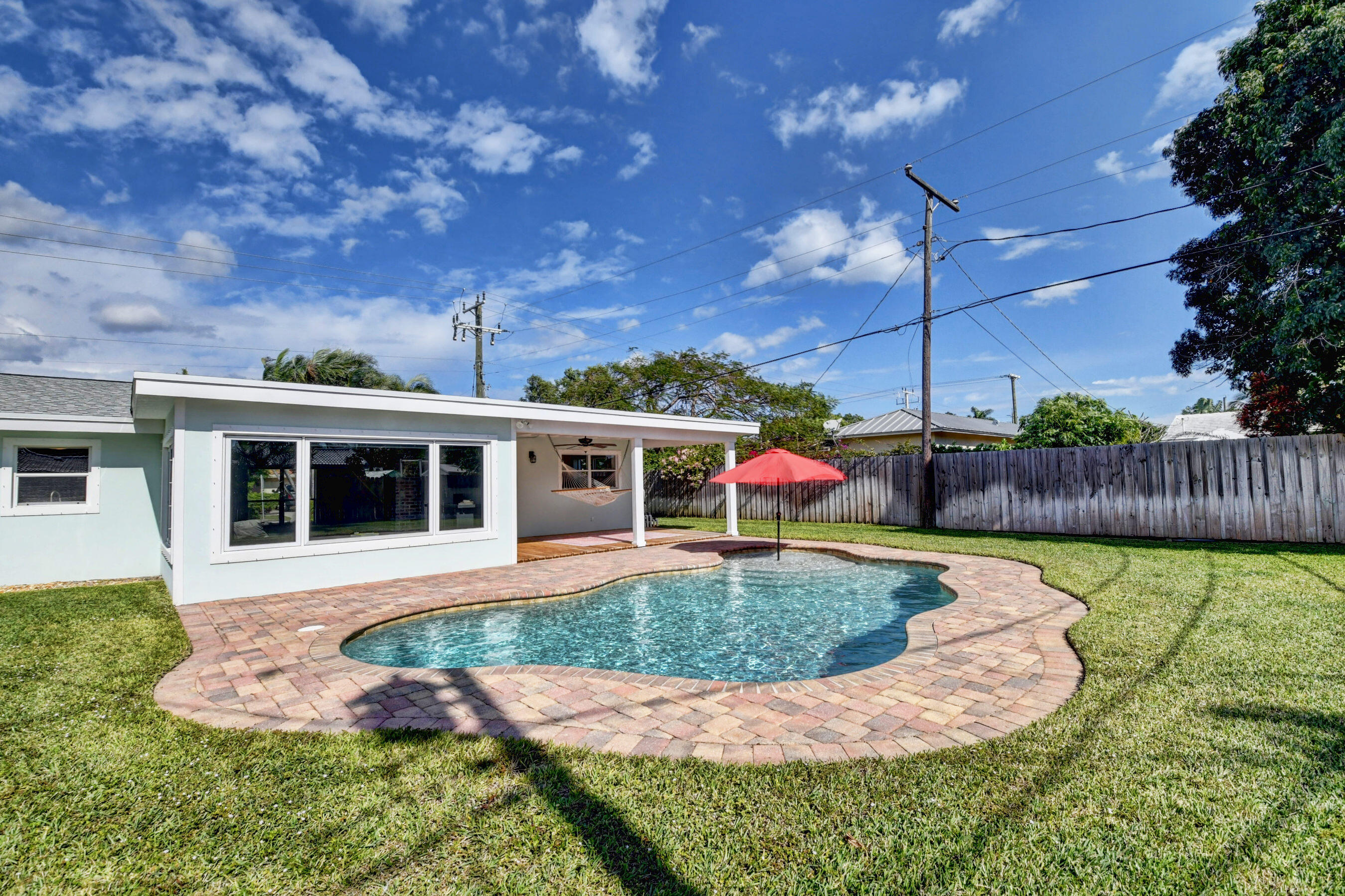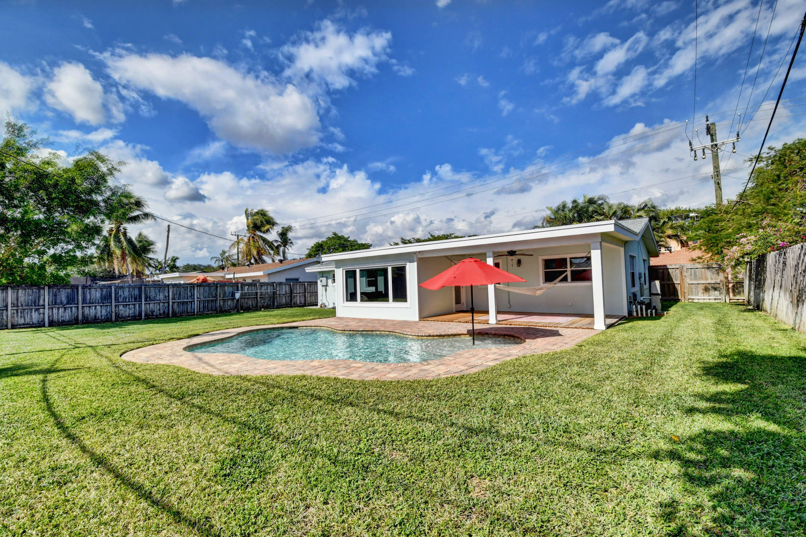 Now's your chance to own this charming pool home located in the heart of Boca - near downtown with close proximity to Mizner Park, FAU and the beaches! This home has been fully renovated with expert craftsmanship, quality finishing details and many custom upgrades. There is a lot of natural light flowing through the home while the open floor plan allows for easy entertaining whether in the living room, dining room or sunroom. The kitchen features white cabinetry, Corian counters and stainless appliances with views of the back yard. The primary bedroom features 2 barn-style doors for the custom-designed walk-in closet and ensuite bath that is equipped with a custom fabricated vanity and walk-in shower. The hall bathroom has similar finishes. Other interior features include luxury vinyl