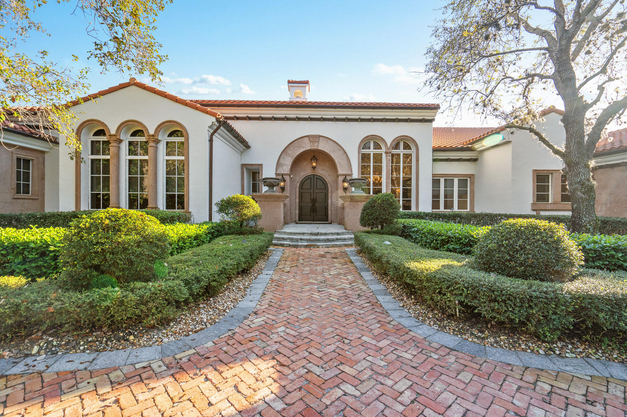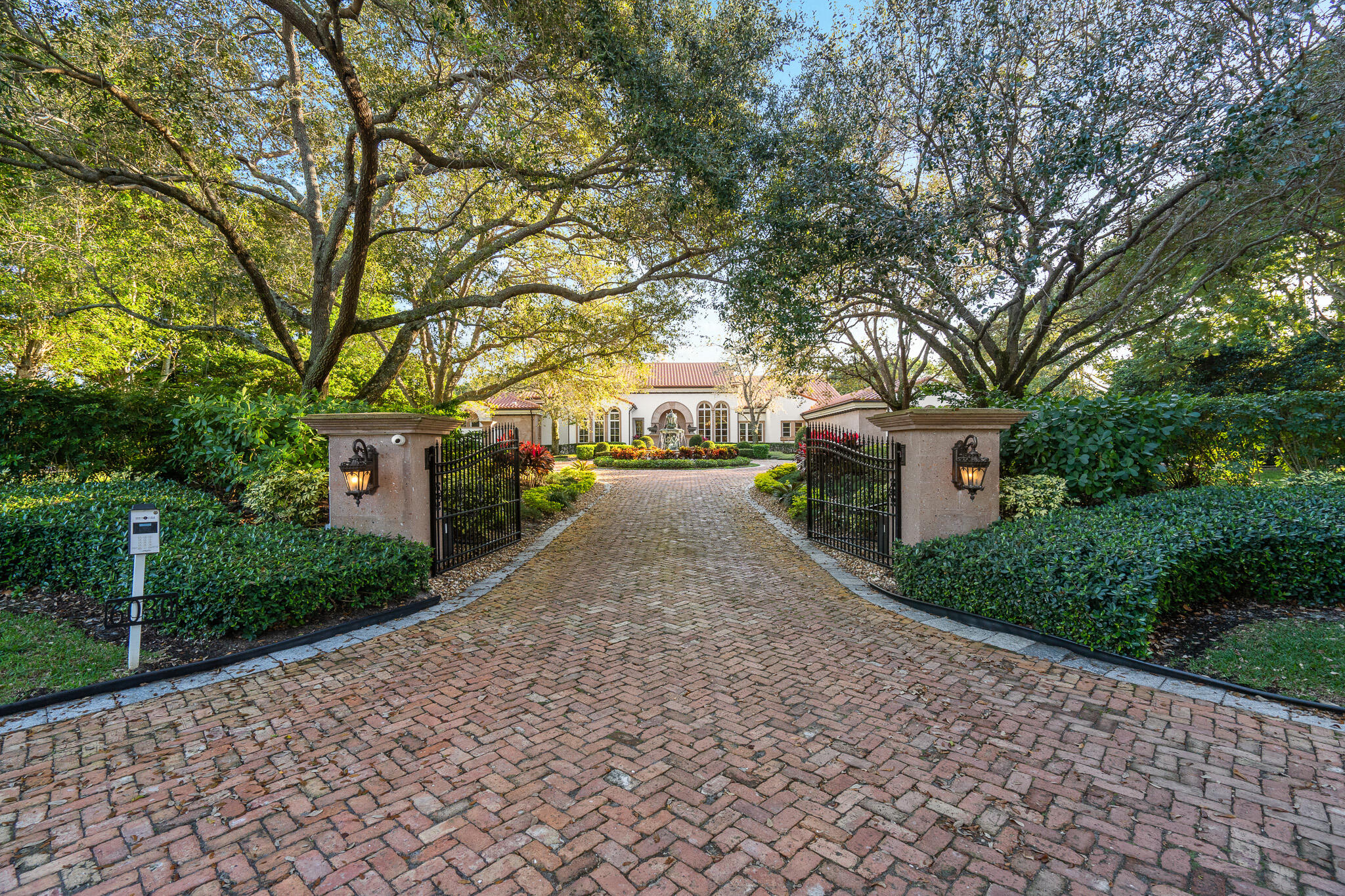 This one-story classic ''Montecito Style'' residence is located on 2.13 acres of meticulously manicured grounds within Boca Raton's most prestigious & intimate gated enclave of only 32 multi-acre estates. Designed by award winning architect Randall Stofft, this exquisite lakefront estate seamlessly blends an indoor/outdoor vibe with traditional elements, warmth & cohesiveness & features a stunning lushly landscaped gated entry with circular driveway & stone fountain. This home offers 5 bedrooms, 6.1 bathrooms, office/library, media room/den, playroom & side-load air conditioned 4 car garage. The luxurious & grand outdoor space is full of amenities & features designed for intimate family gatherings as well as elegant & sophisticated entertaining.