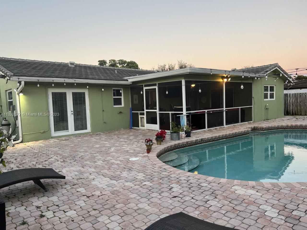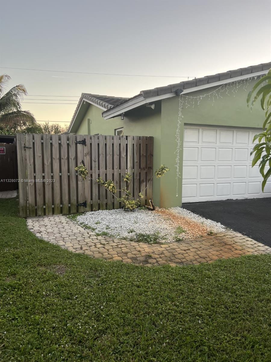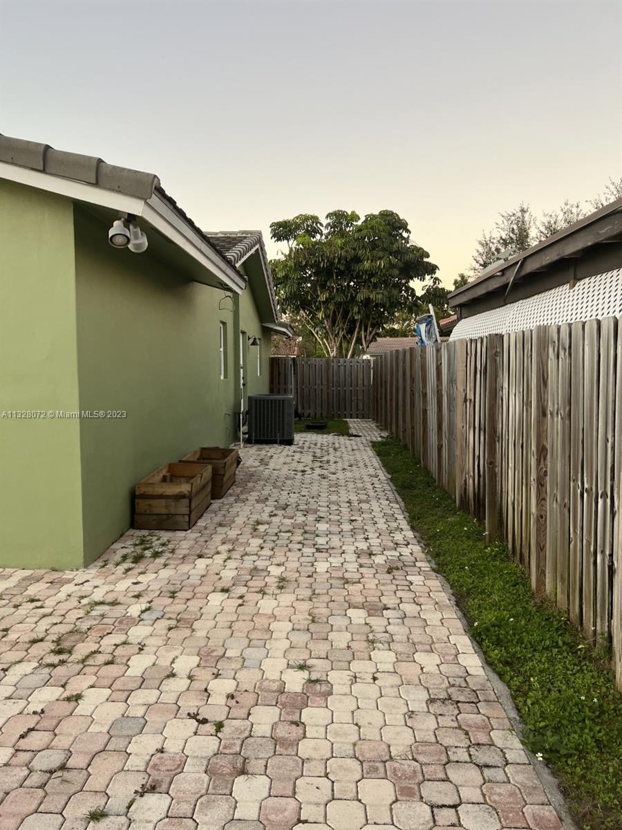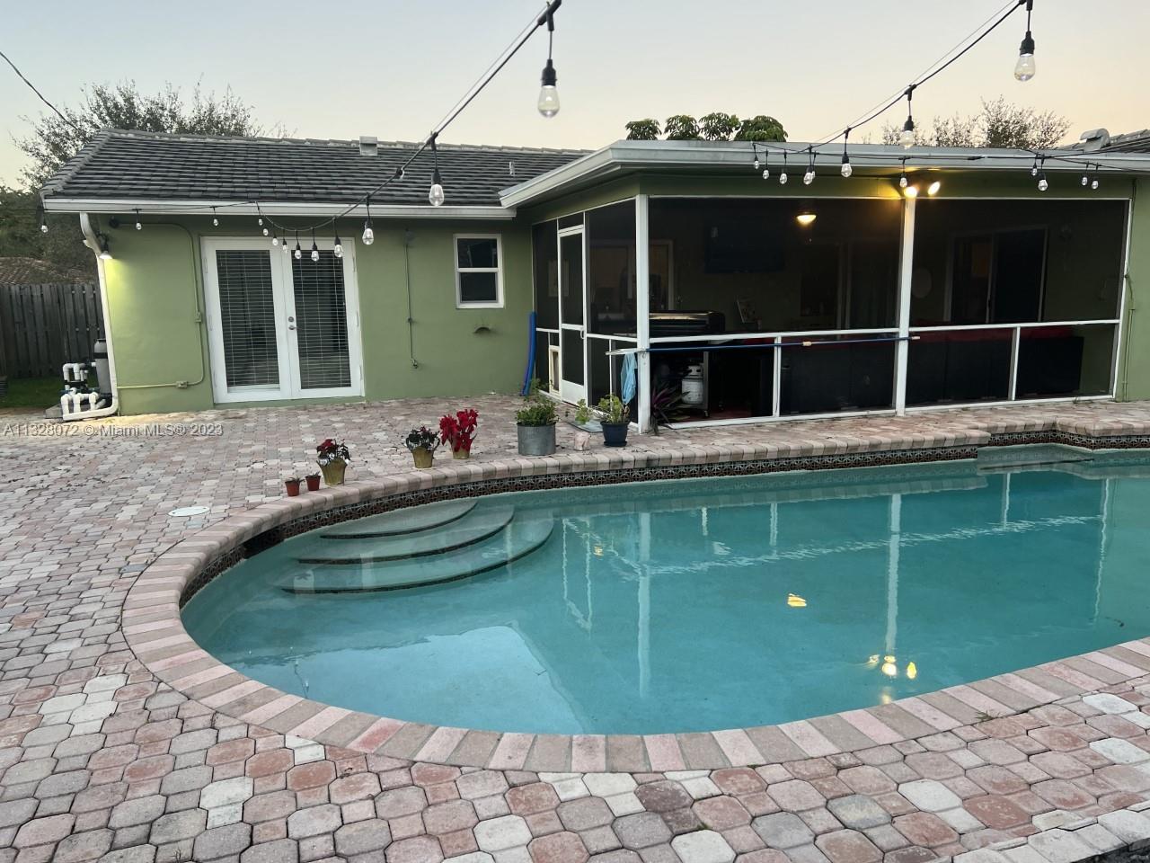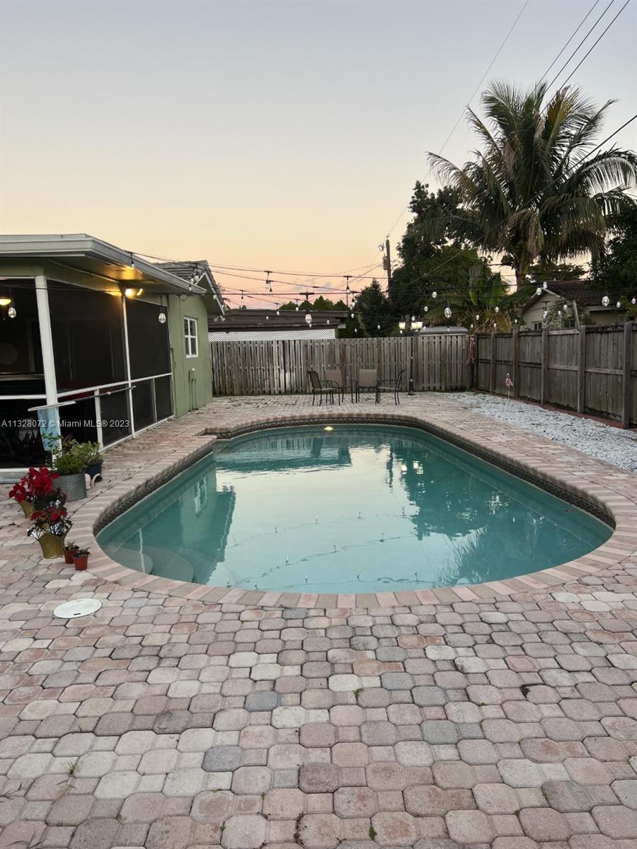 Beautiful home, with tile flooring throughout, impact windows, renovated kitchen with white cabinetry, farmers sink, stainless steel appliances including glass cooktop, wall microwave/oven, quartz countertops, glass backsplash, new garbage disposal, vertical and horizontal blinds in all windows and sliding doors, AC was replaced in 2021, tiled, covered, and screened patio, knock down ceilings, washer, dryer and, extra refrigerator in the garage, ceiling fans, huge yard with pool and brick pavers pool deck, wood fence installed in 2018, roof replaced in 2011, fully fenced backyard and side yards for extra privacy, newer sprinkler system, two car garage, recent resealed driveway, Ring door bell, Nest AC thermostat, no HOA. The property is been offered for sale AS-IS with right of inspection.