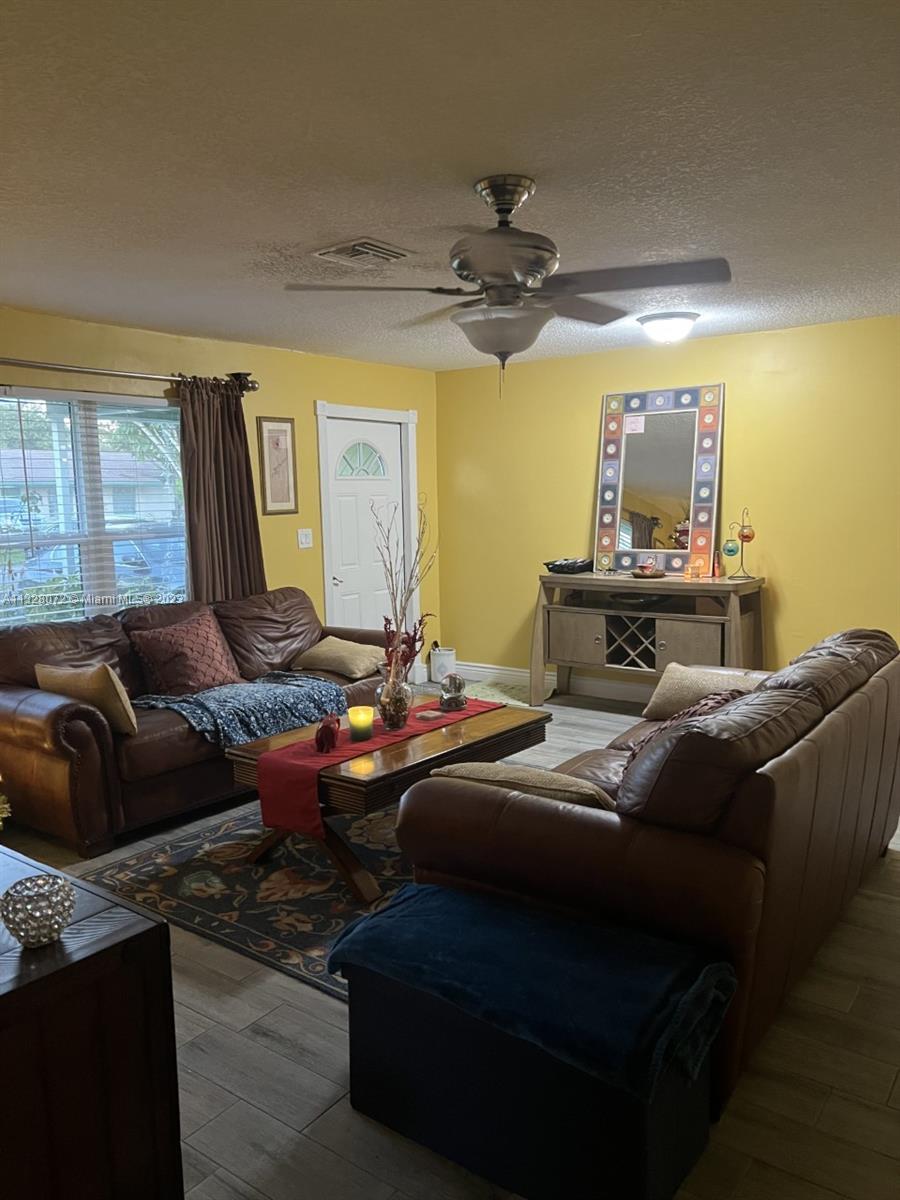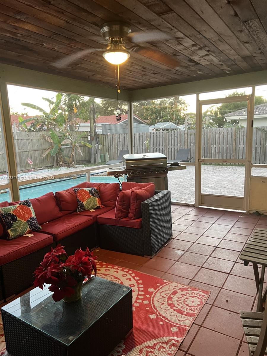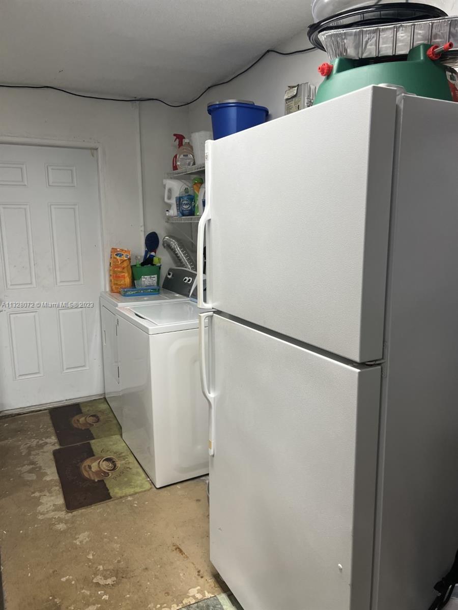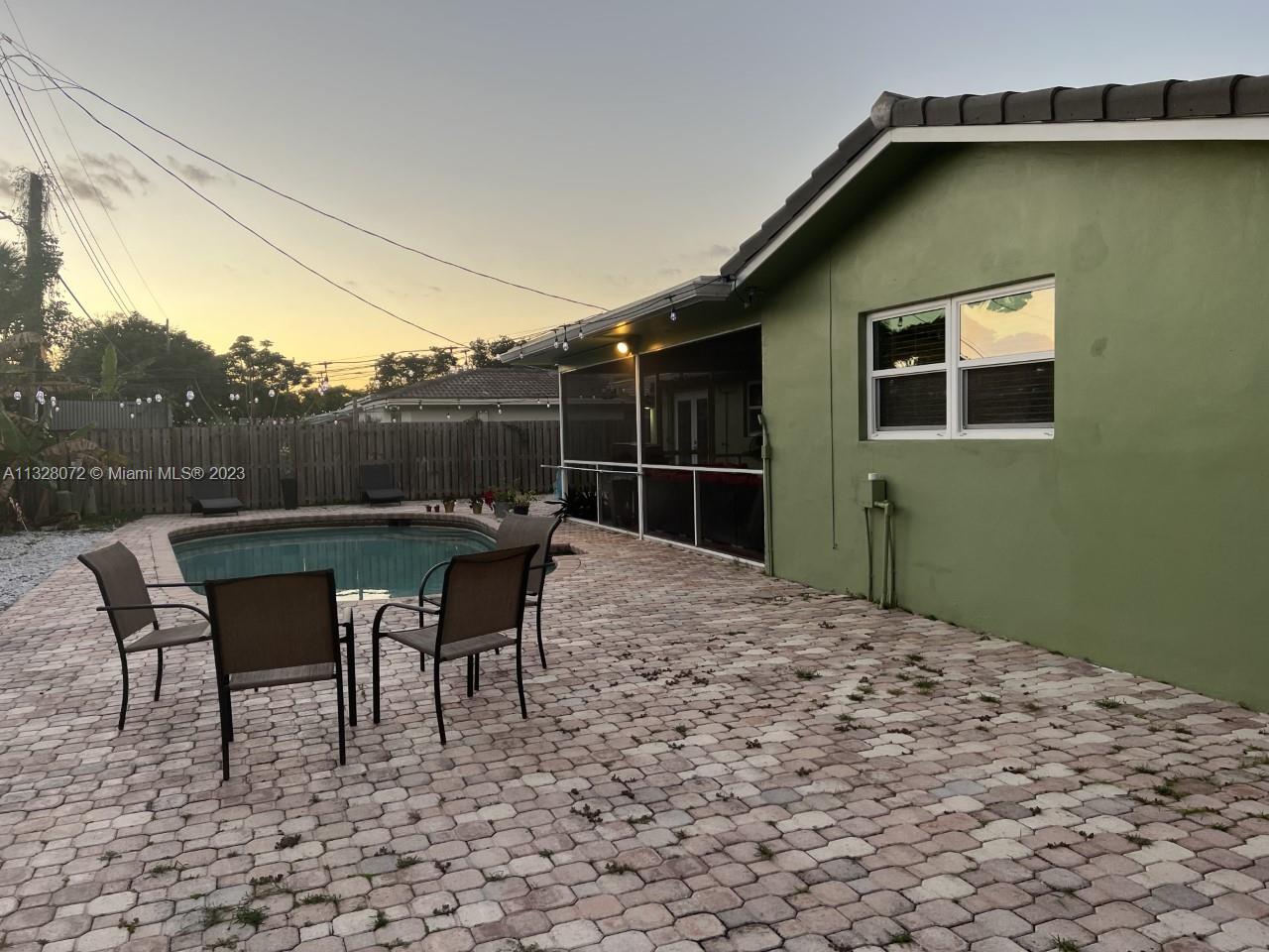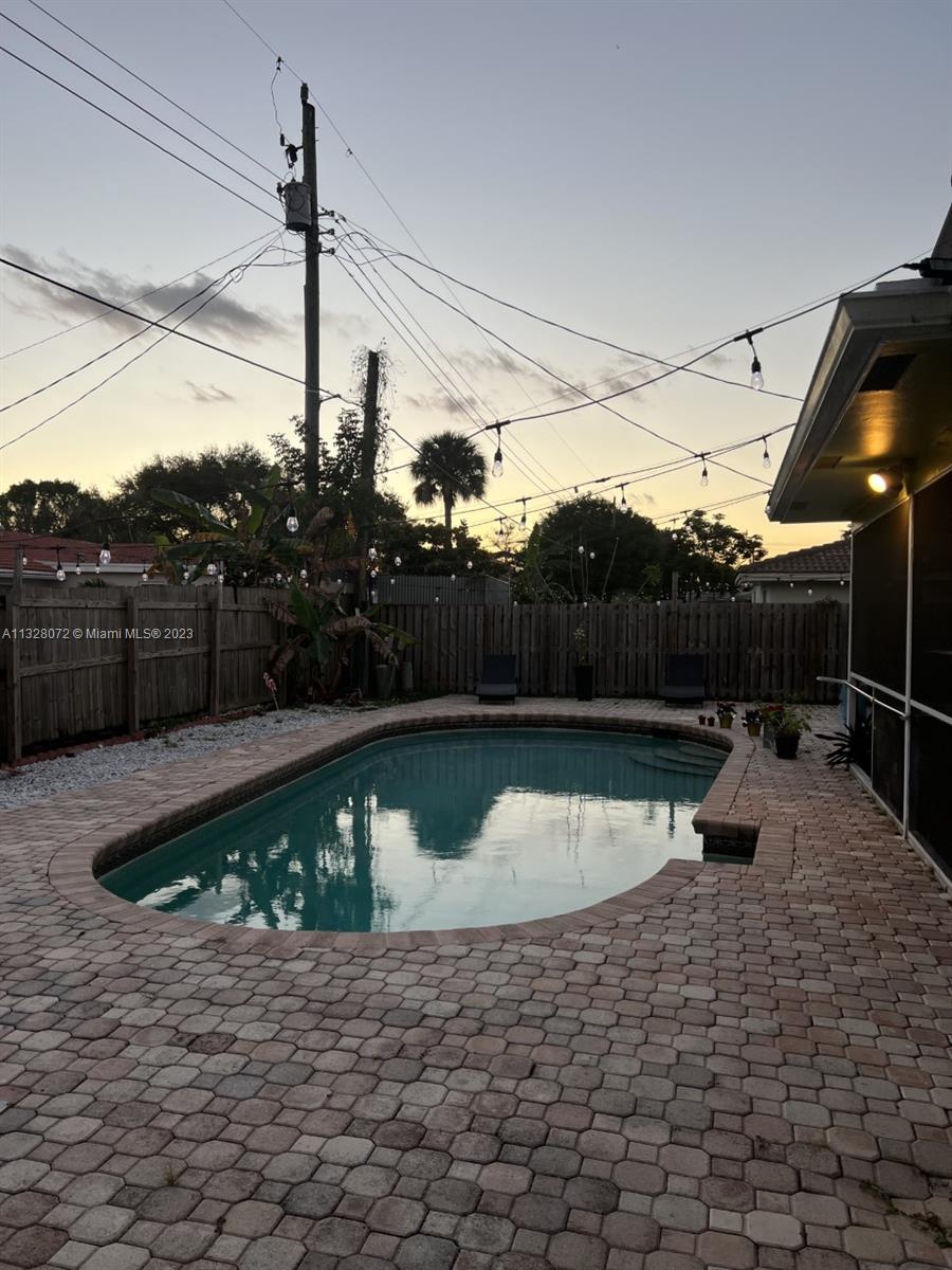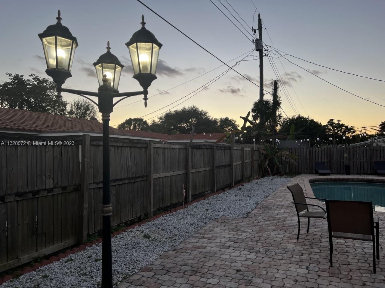 Beautiful home, with tile flooring throughout, impact windows, renovated kitchen with white cabinetry, farmers sink, stainless steel appliances including glass cooktop, wall microwave/oven, quartz countertops, glass backsplash, new garbage disposal, vertical and horizontal blinds in all windows and sliding doors, AC was replaced in 2021, tiled, covered, and screened patio, knock down ceilings, washer, dryer and, extra refrigerator in the garage, ceiling fans, huge yard with pool and brick pavers pool deck, wood fence installed in 2018, roof replaced in 2011, fully fenced backyard and side yards for extra privacy, newer sprinkler system, two car garage, recent resealed driveway, Ring door bell, Nest AC thermostat, no HOA. The property is been offered for sale AS-IS with right of inspection.